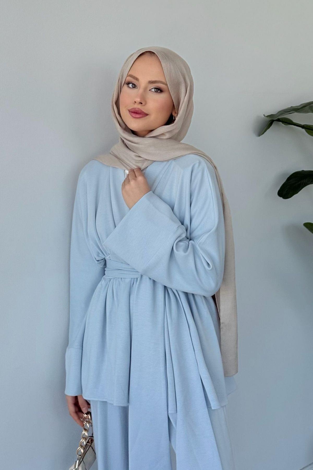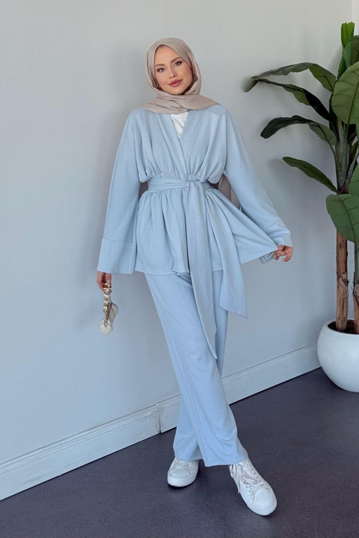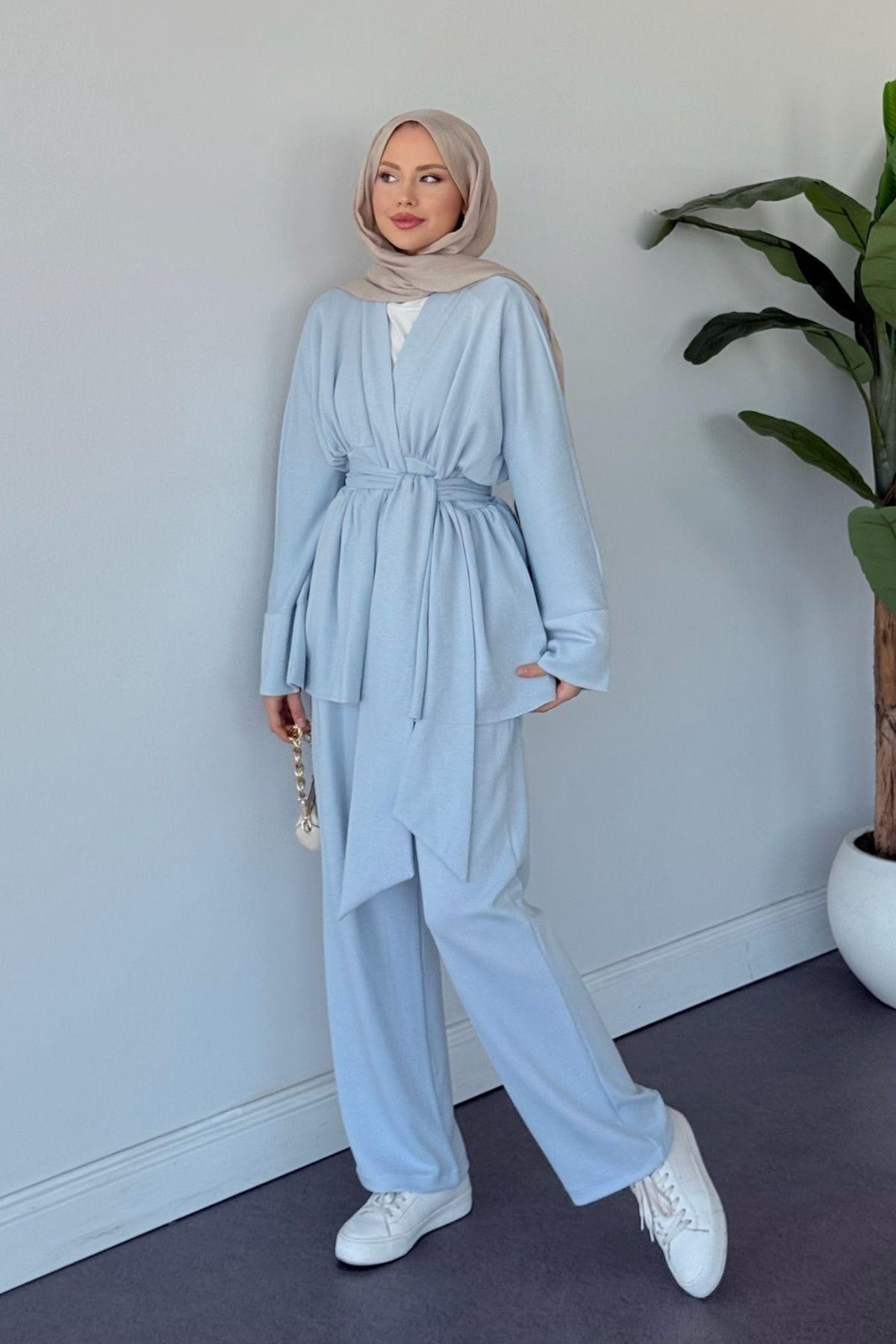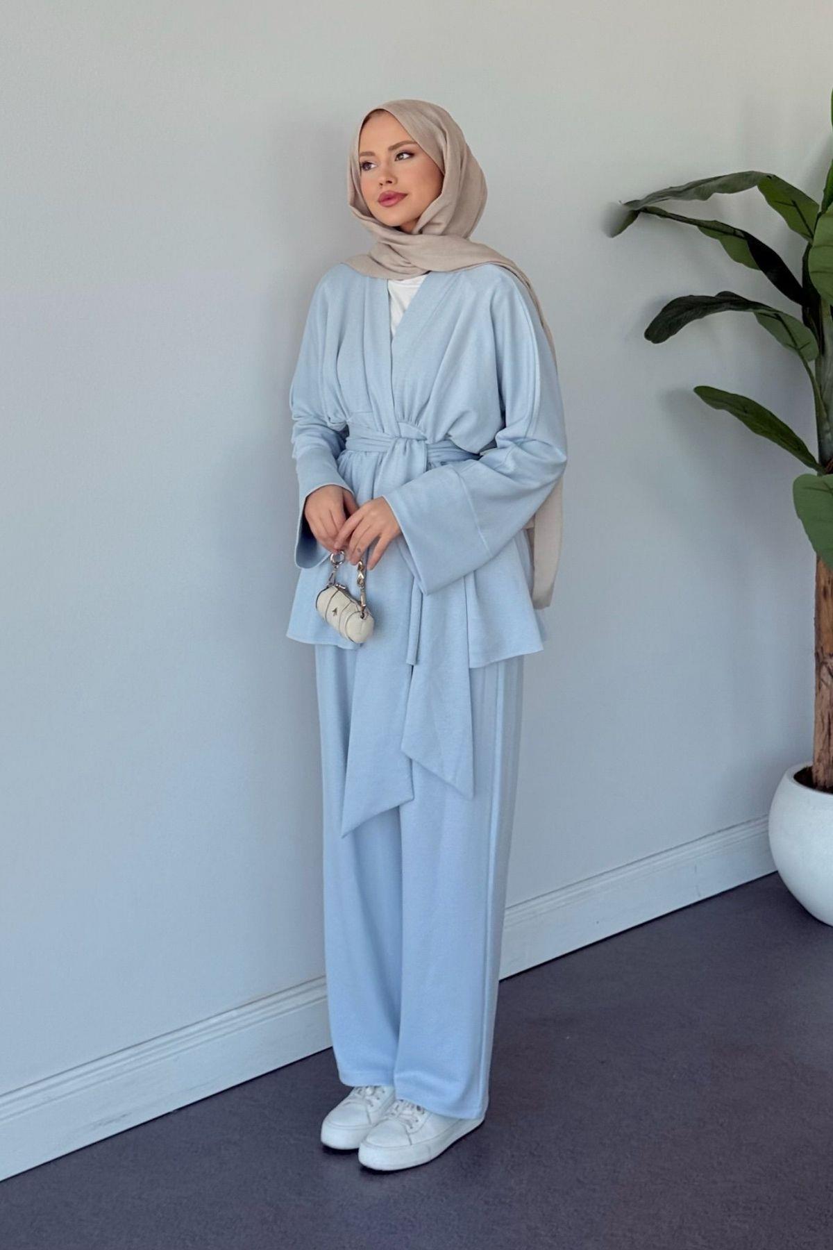 Akide İkili Modal Takım, günlük kullanım için ideal bir seçimdir. Modal kumaşın doğal yumuşaklığı ve nefes alabilirliği sayesinde tüm gün konfor sunar. Pratik set formu sayesinde kombin yapma derdi olmadan şık bir görünüm elde edebilirsiniz. Kendinden kuşaklı tasarımı hem rahatlık hem de stil sunarak günlük hayatınıza pratiklik katacaktır.