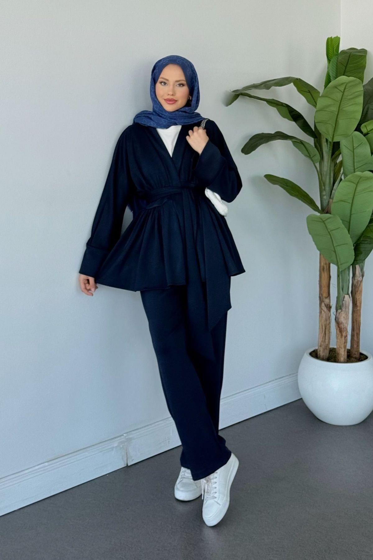 • Üst bluz: Modal kumaştan üretilmiş, kendinden kuşak detaylı bluz