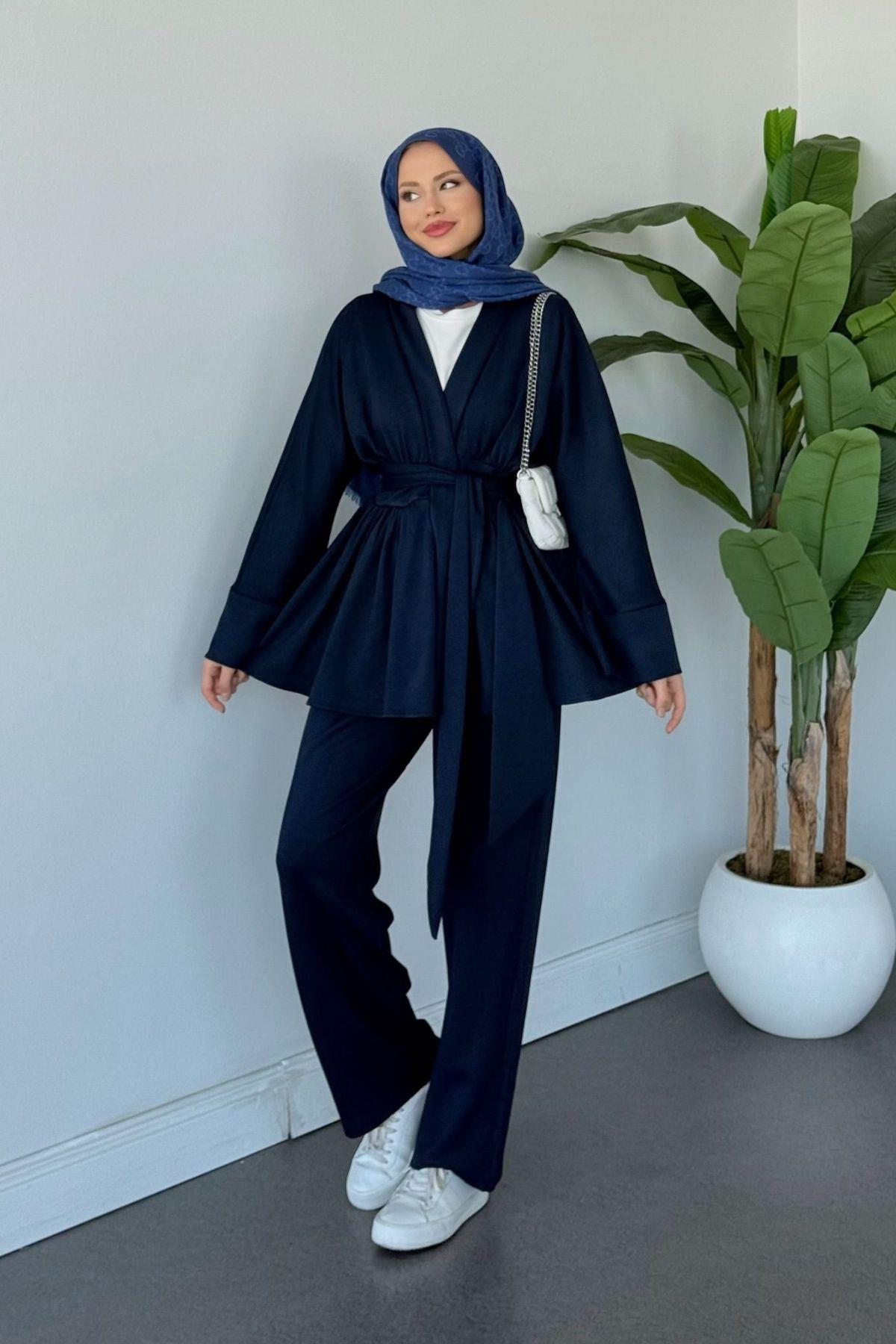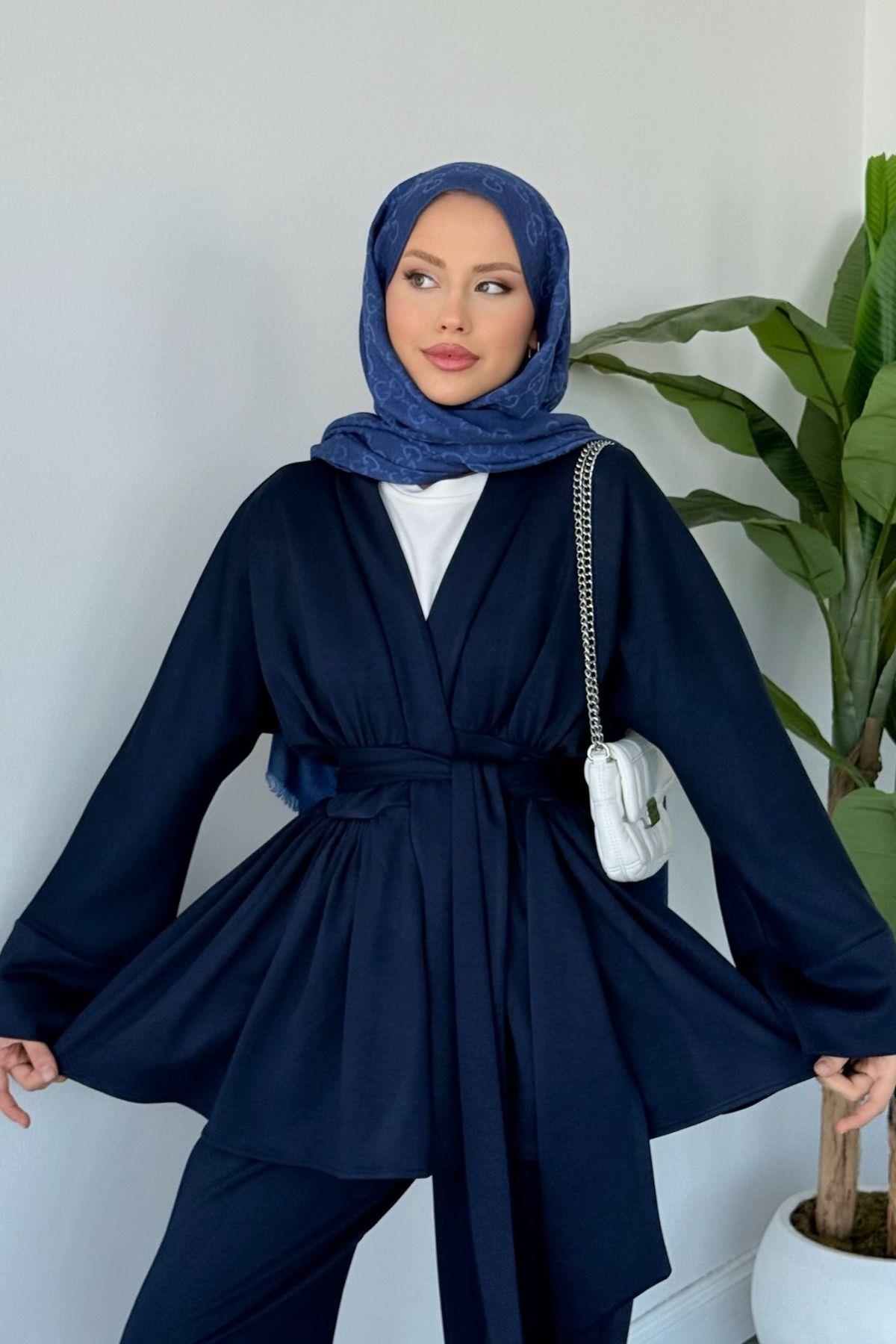 Akide İkili Modal Takım, günlük kullanım için ideal bir seçimdir. Modal kumaşın doğal yumuşaklığı ve nefes alabilirliği sayesinde tüm gün konfor sunar. Pratik set formu sayesinde kombin yapma derdi olmadan şık bir görünüm elde edebilirsiniz. Kendinden kuşaklı tasarımı hem rahatlık hem de stil sunarak günlük hayatınıza pratiklik katacaktır.