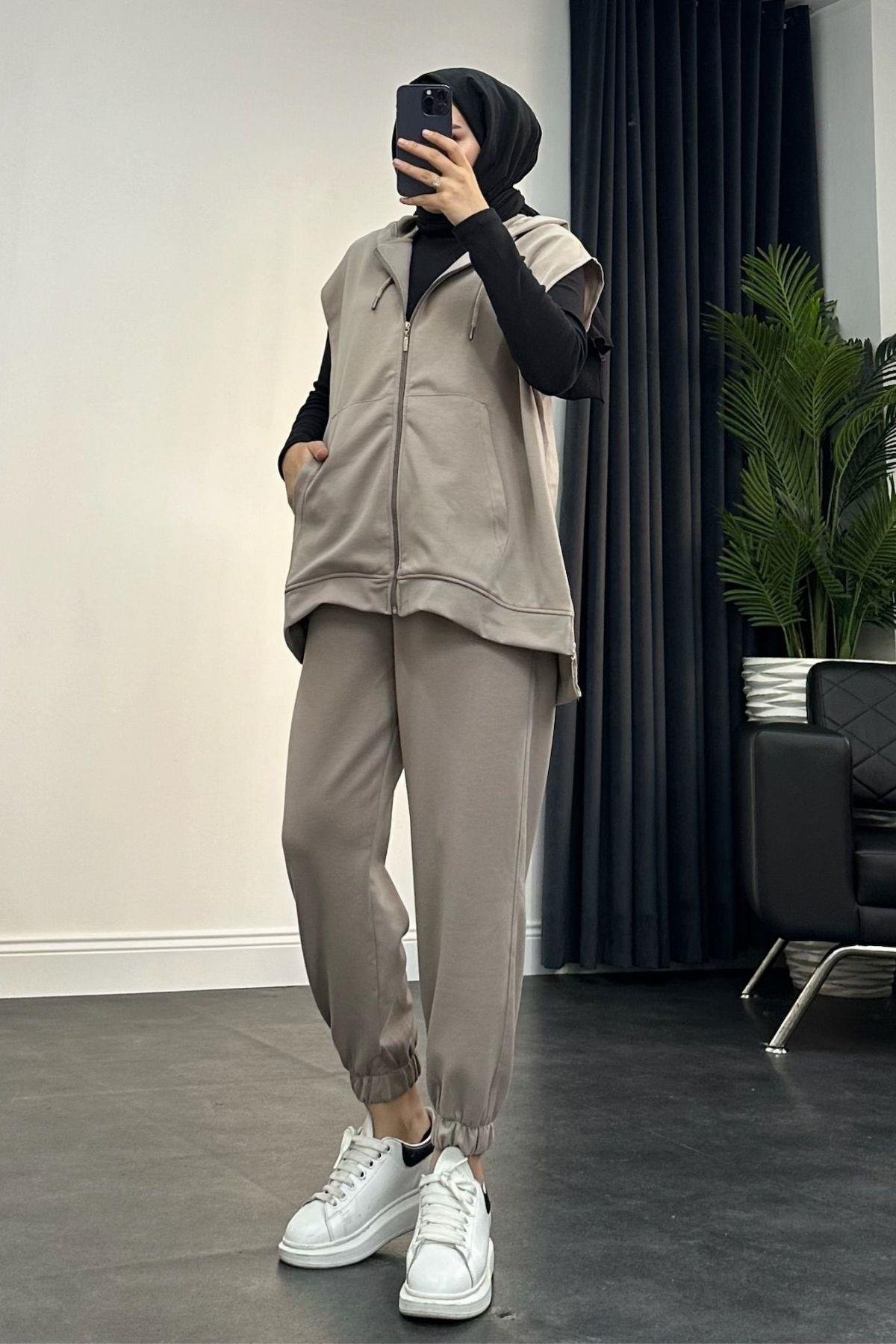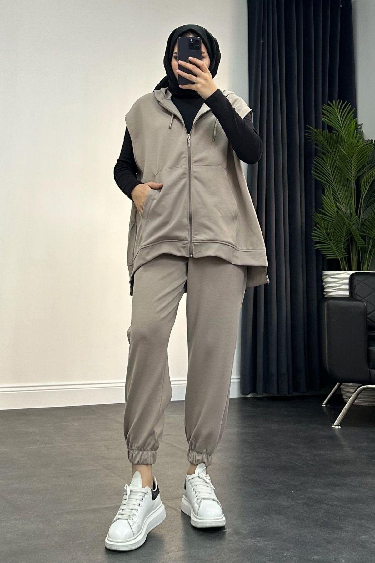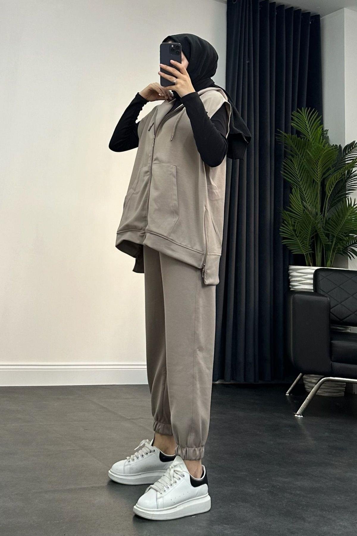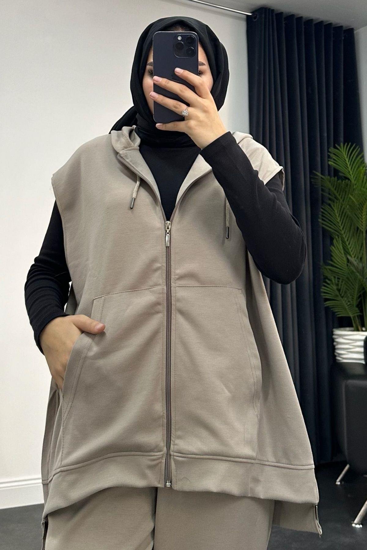 تحتوي السترة على جيبين في الأمام وسحاب وتفاصيل إغلاق على الجوانب