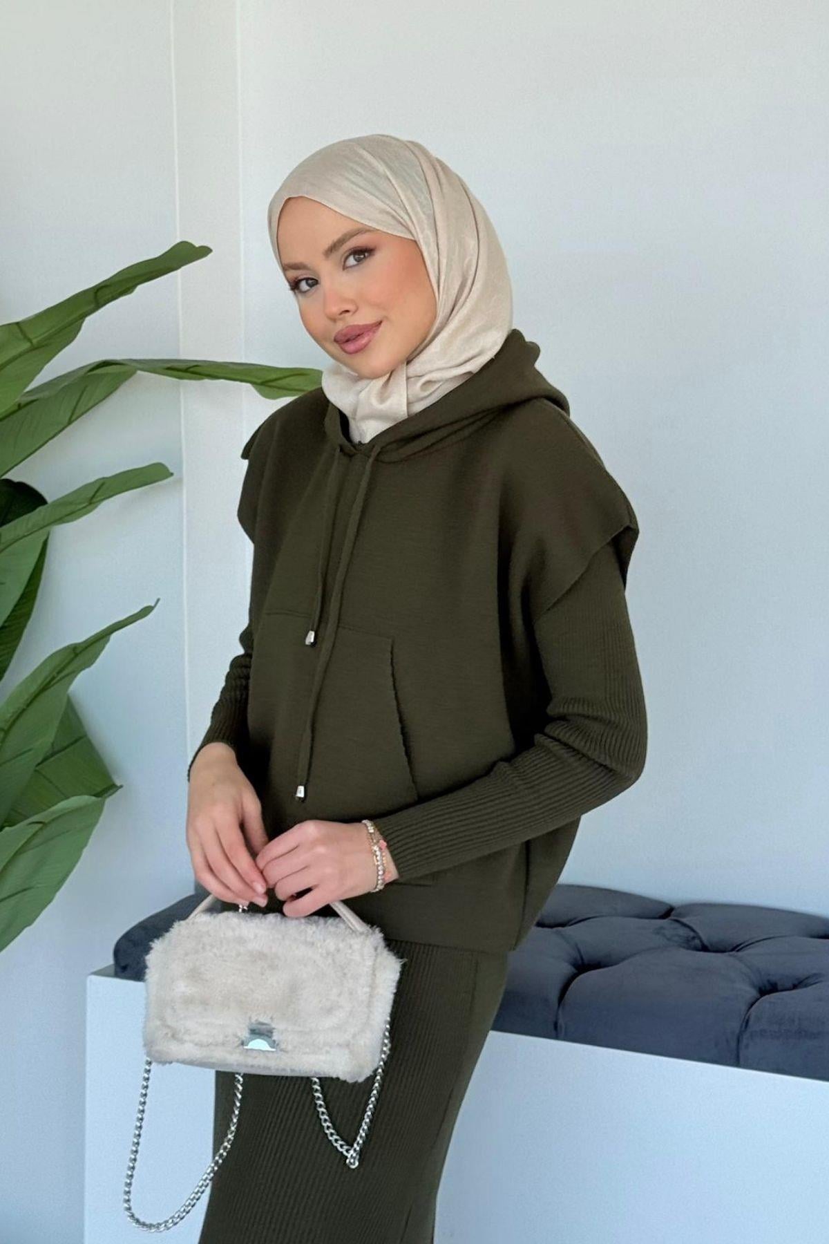 Elf Croplu Elbise, iki parçalı yapısı ve kapüşonlu üst detayıyla hem sportif hem de modern bir stil sunar. Tiftiklenme yapmayan triko kumaşı ve diz izi bırakmayan yapısıyla gün boyu rahatlık sağlar.