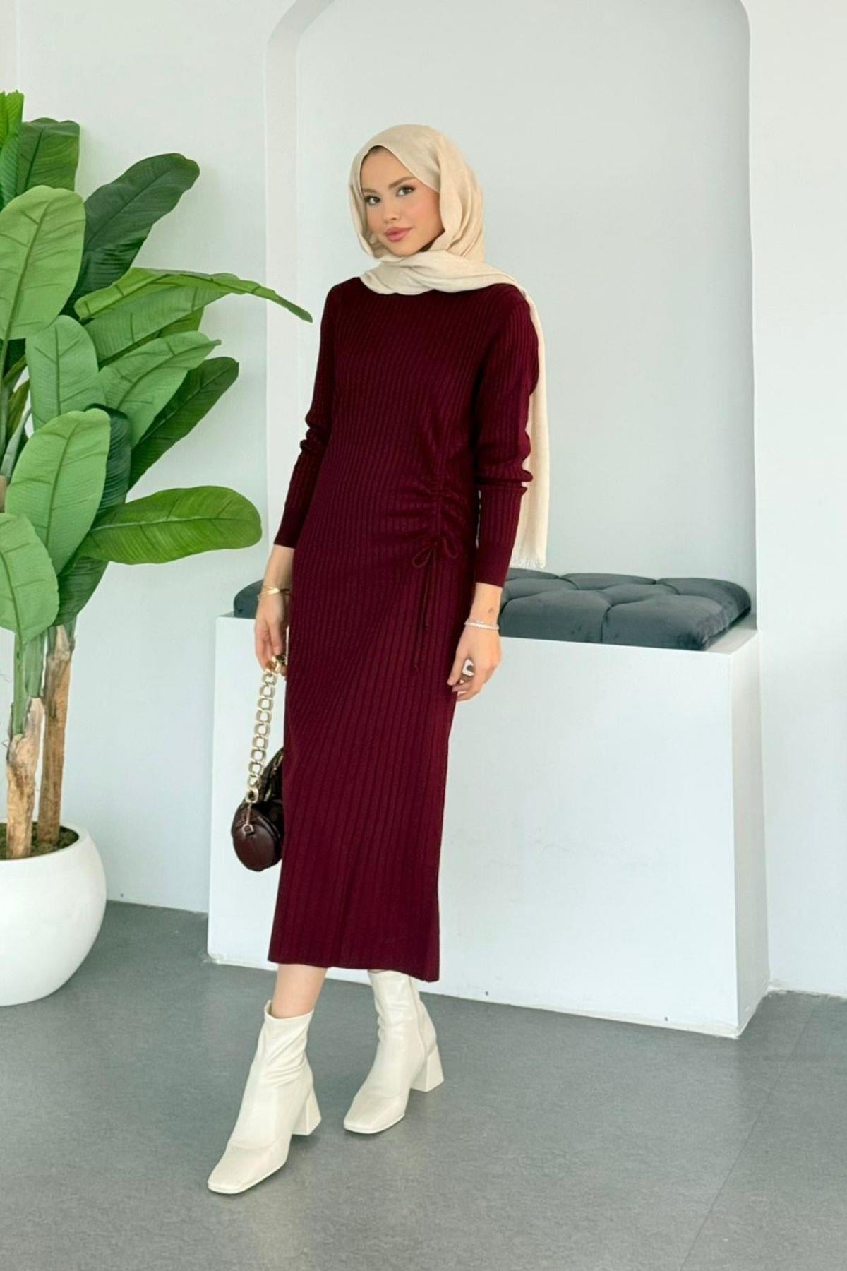 Fi Triko Elbise Bordo (24870)