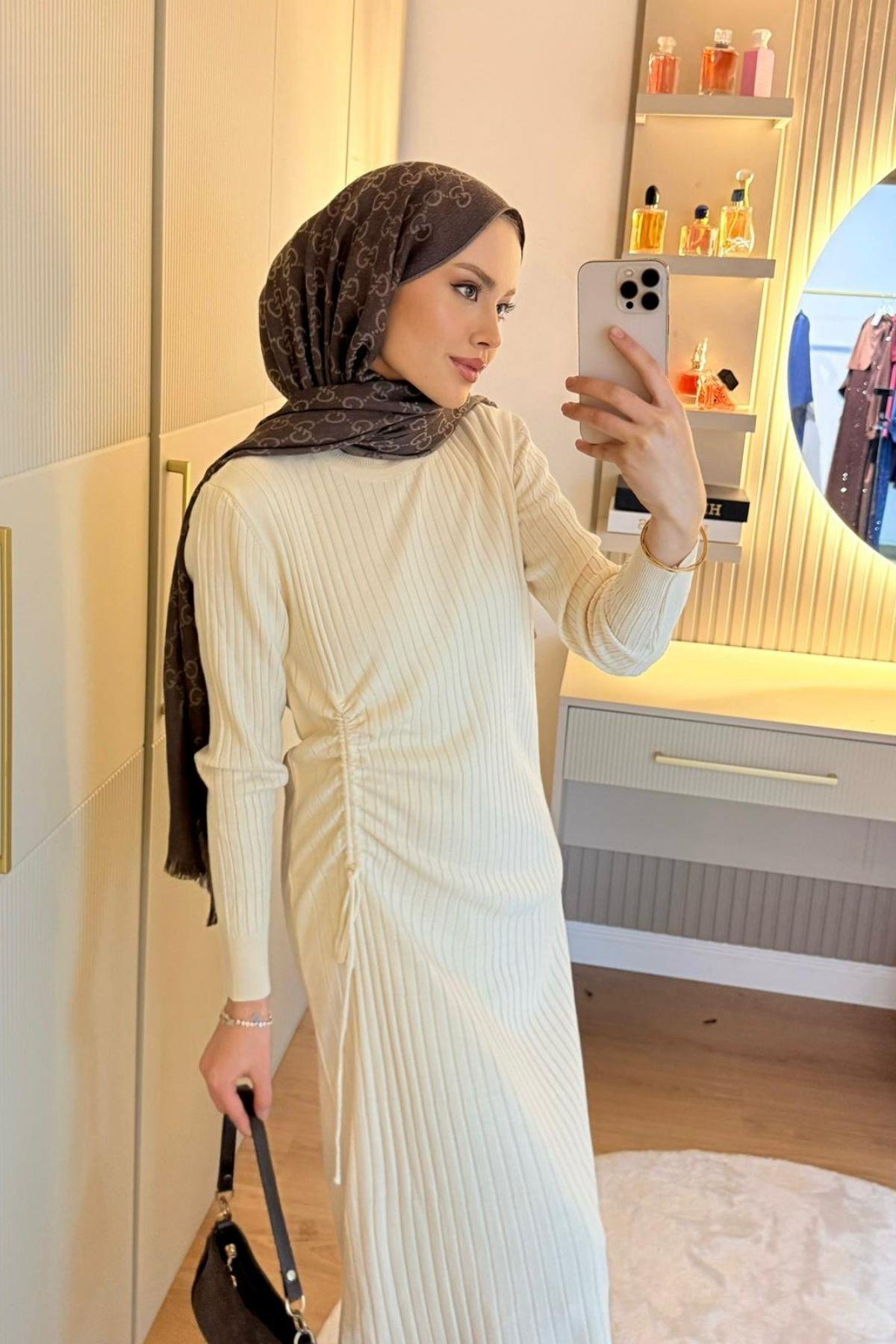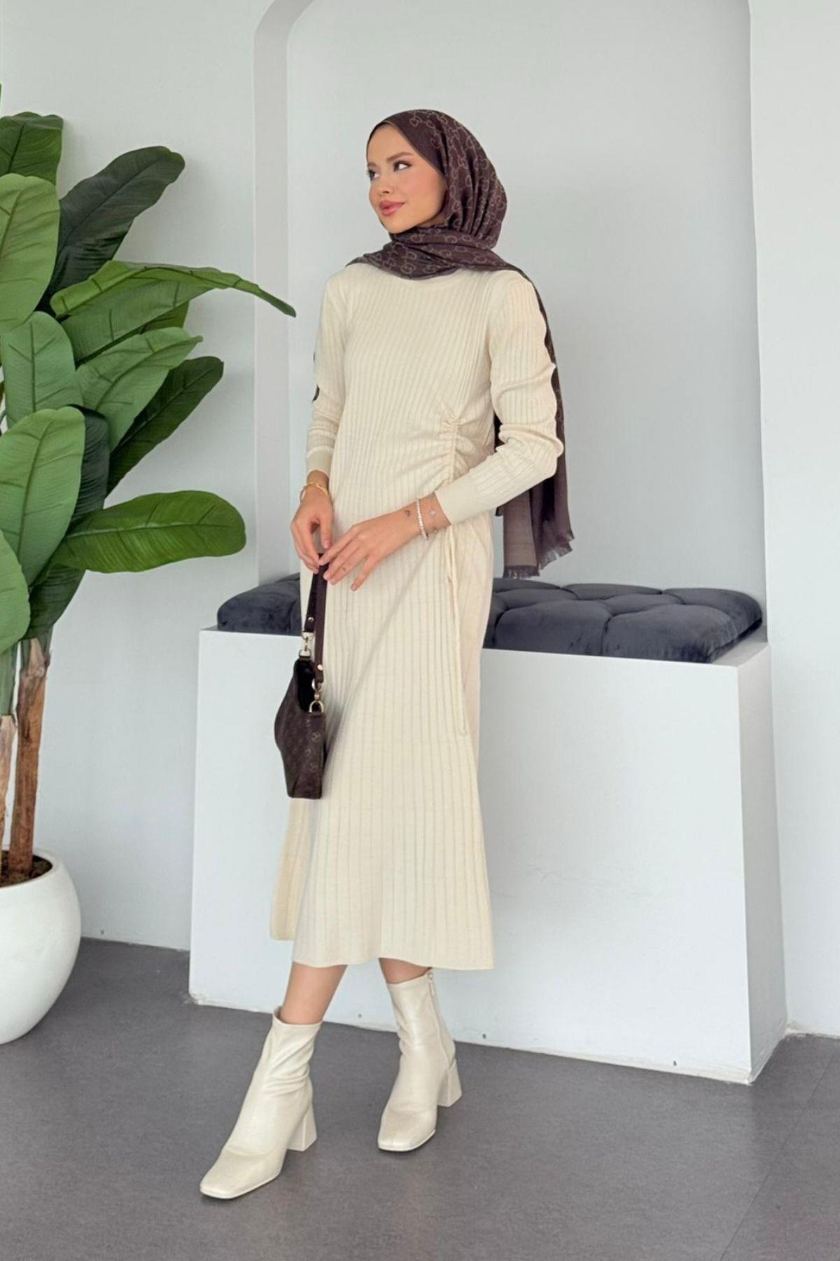 Fi Triko Elbise, modern büzgü detayları ve rahat triko kumaşı ile günlük kullanımdan özel anlara kadar her durumda şıklığınızı tamamlar. Standart beden yapısıyla geniş bir kullanıcı kitlesine hitap eder.