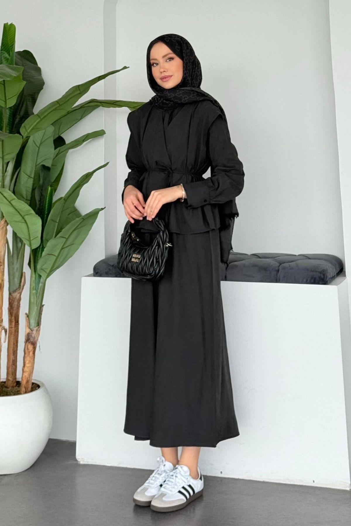 Ürün cupra modal kumaştır iki parçan oluşmuşmaktadır iç elbisesi ve üst yeleklidir.