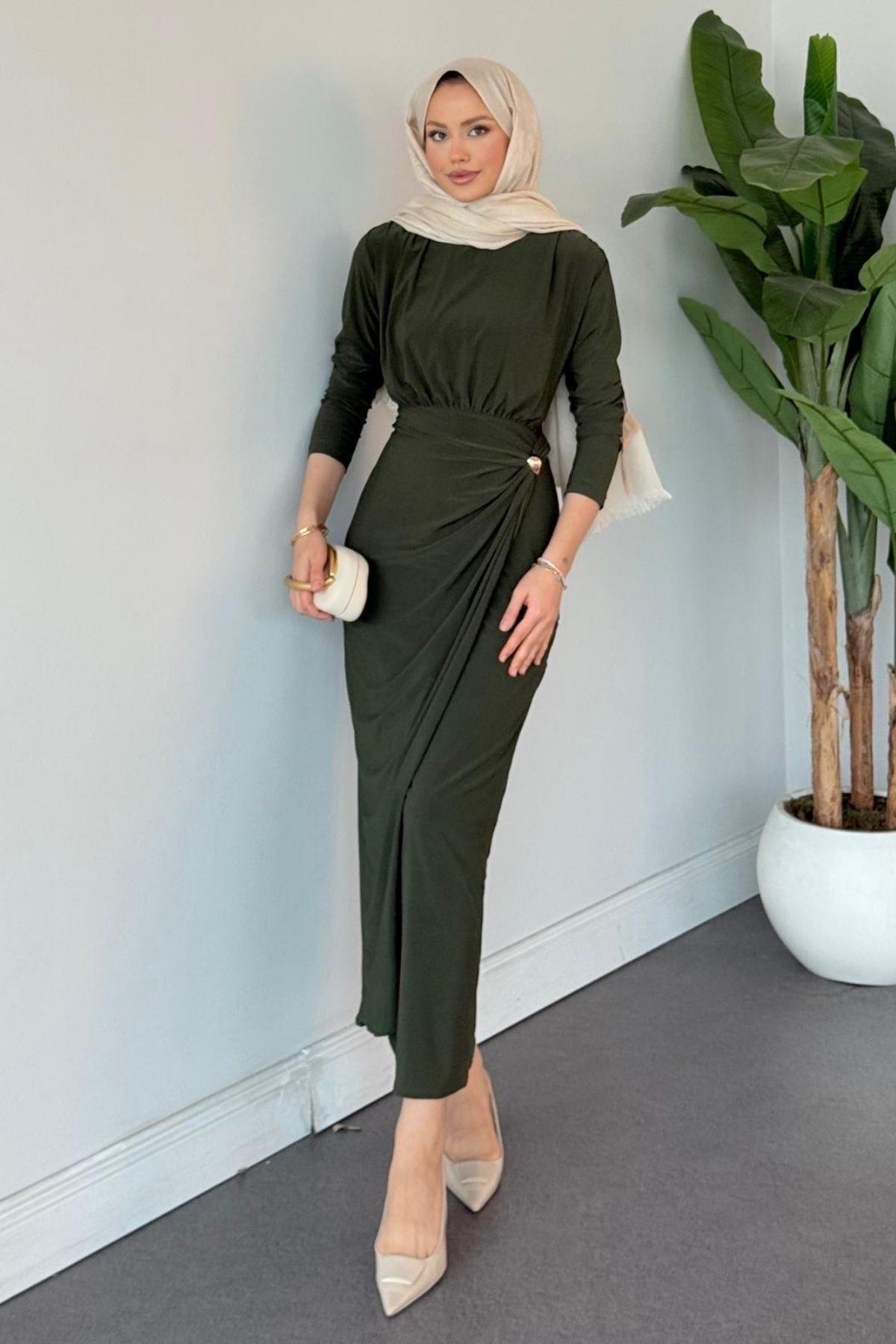Endam Tokalı Elbise, pamuklu modal kumaşı ile gün boyu konfor ve nefes alabilirlik sunarken, ön formundaki zarif broş detayı ile şıklığınızı tamamlıyor. Tam kalıp tasarımı sayesinde mükemmel bir oturma sağlayan bu elbise, günlük kullanımdan özel günlere kadar geniş bir yelpazede tercih edilebiliyor. Sade ve zarif çizgileri ile gardırobunuzun vazgeçilmez parçalarından biri olmaya aday.