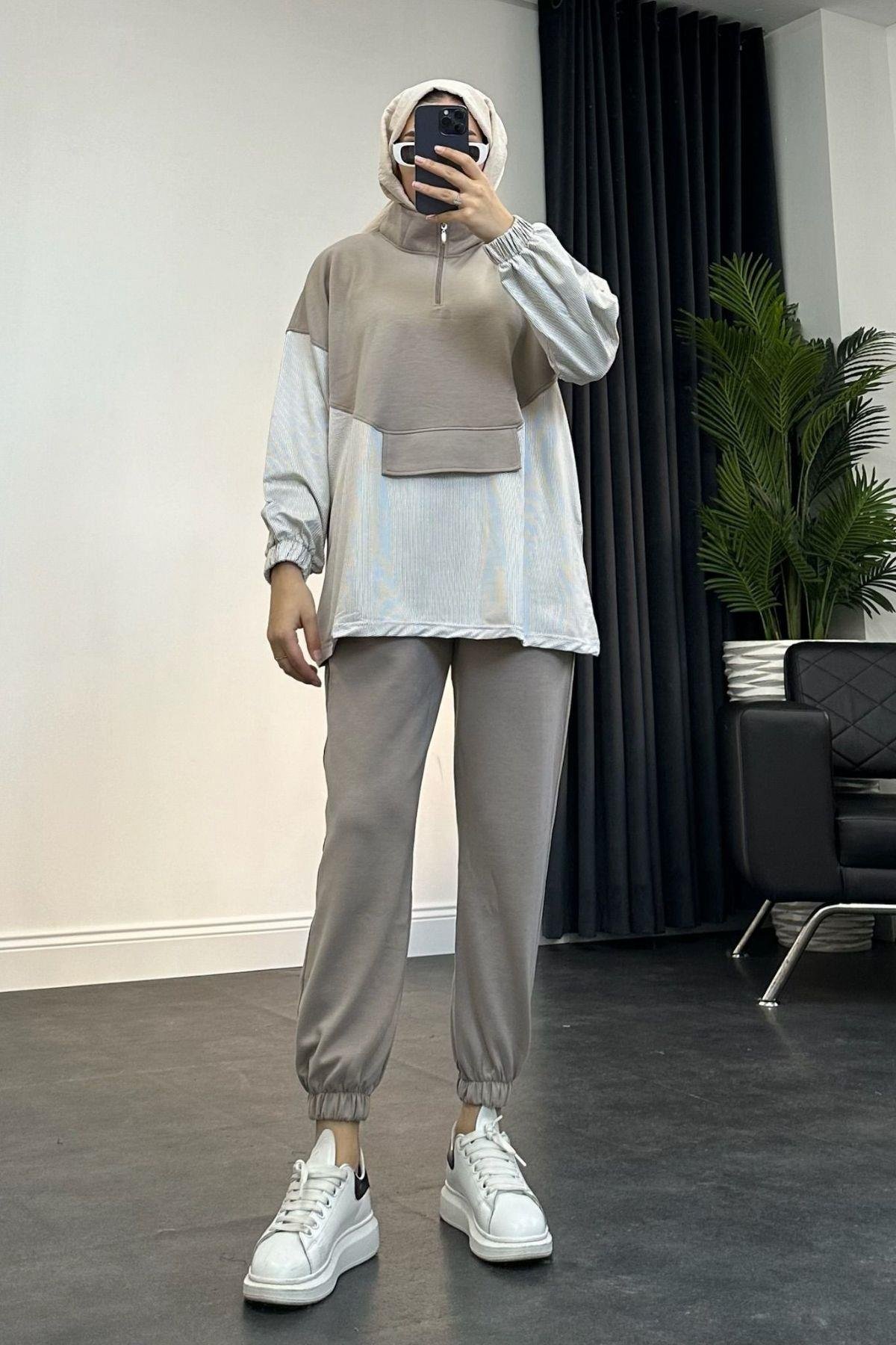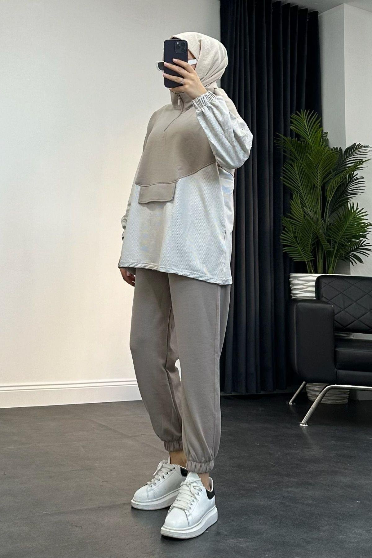 ميزات المنتج اسم المنتج جوليا تاكيم أويشو هو القماش الجزء العلوي 70 سم الجزء العلوي من الحلق به سحاب جزء المعصم من الذراع مرن طول البنطلون 93 سم خصر وساق البنطلون مرنان البنطلون به جيوب إنه حجم قياسي