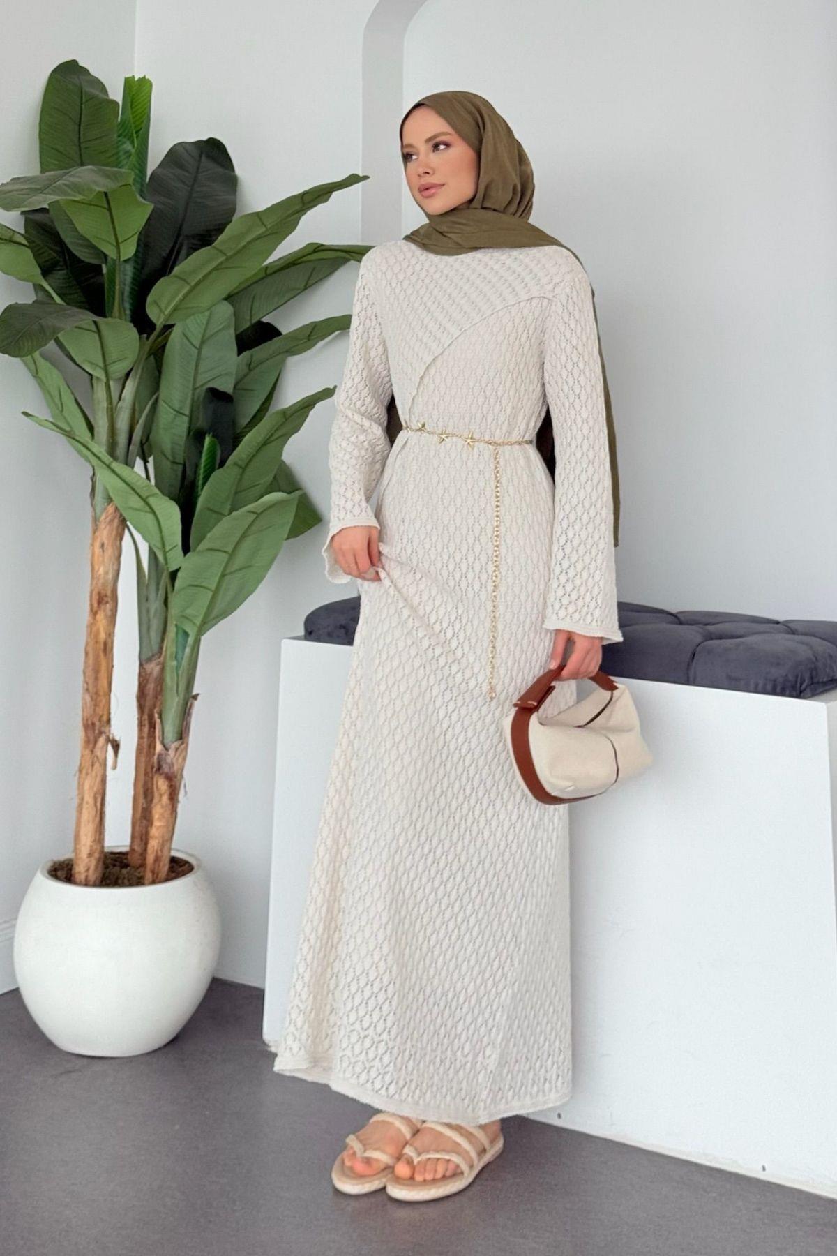 Ürün Adı: KENN Örme Elbise Ürün Kodu: bekliyorum Kumaş: Ajurlu örgü elbise Kalıp: Normal Ürün boy: 138 cm Beden aralığı-1/2