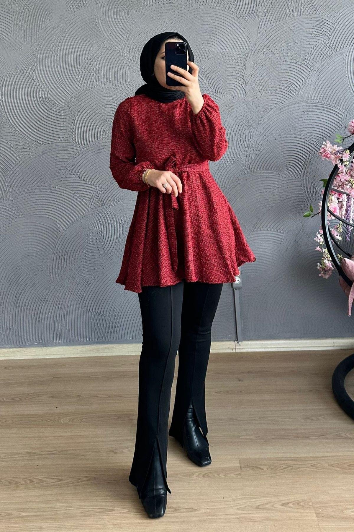 طول المنتج 85 سم إنه قماش التويد مناسب للاستخدام الموسمي بها حزام متحرك وهو عبارة عن قصة مولانا وخصر مطاطي