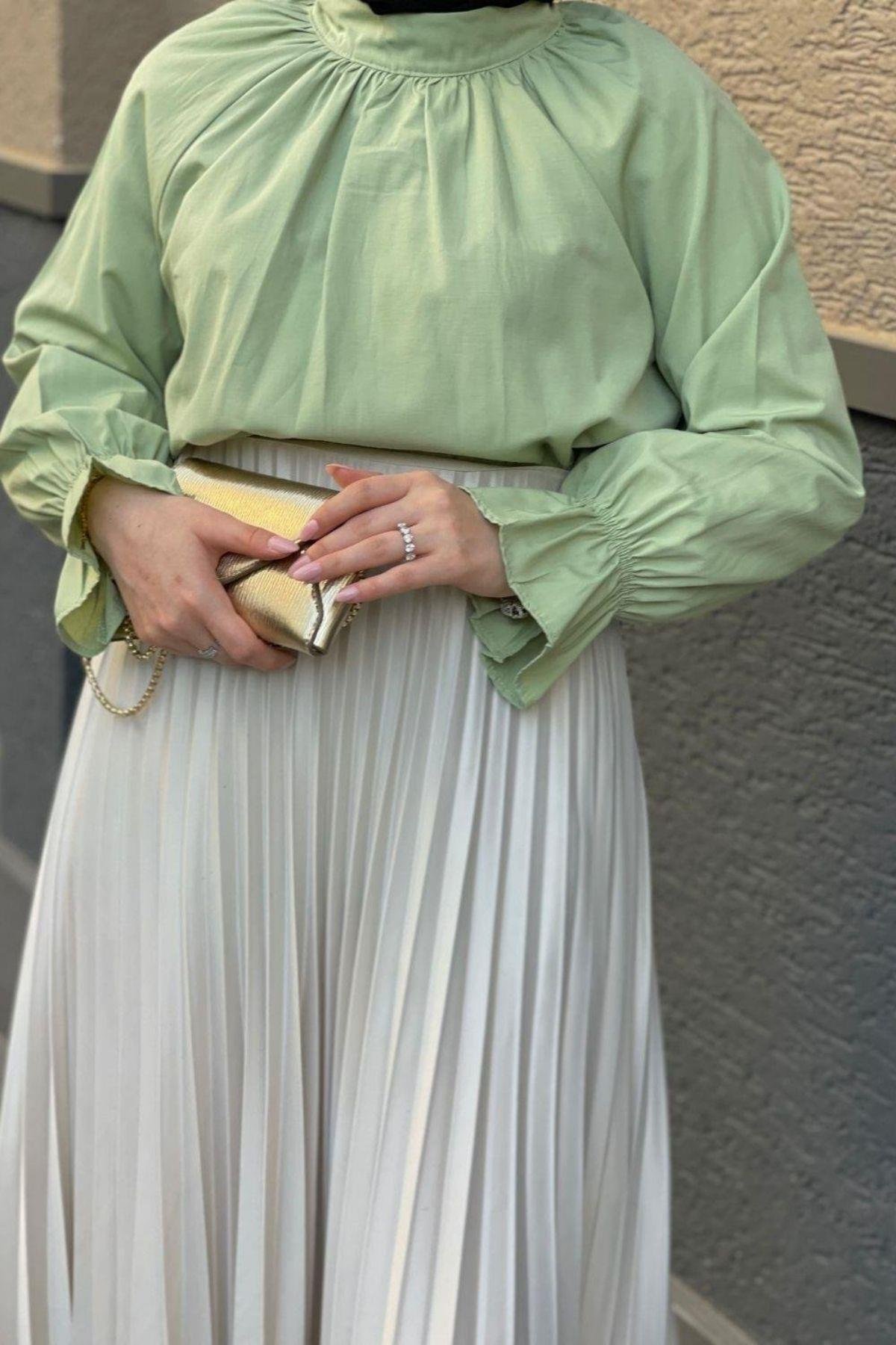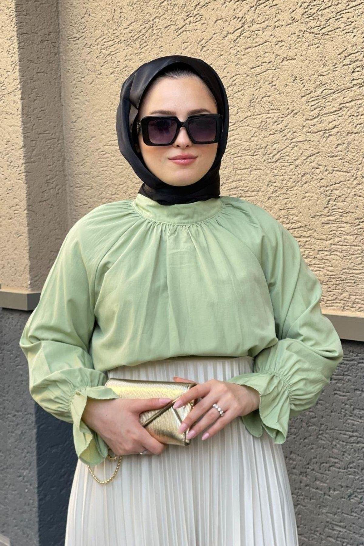 تونيك حجاب من البوبلين بأكمام مطاطية نعناعي (8582)