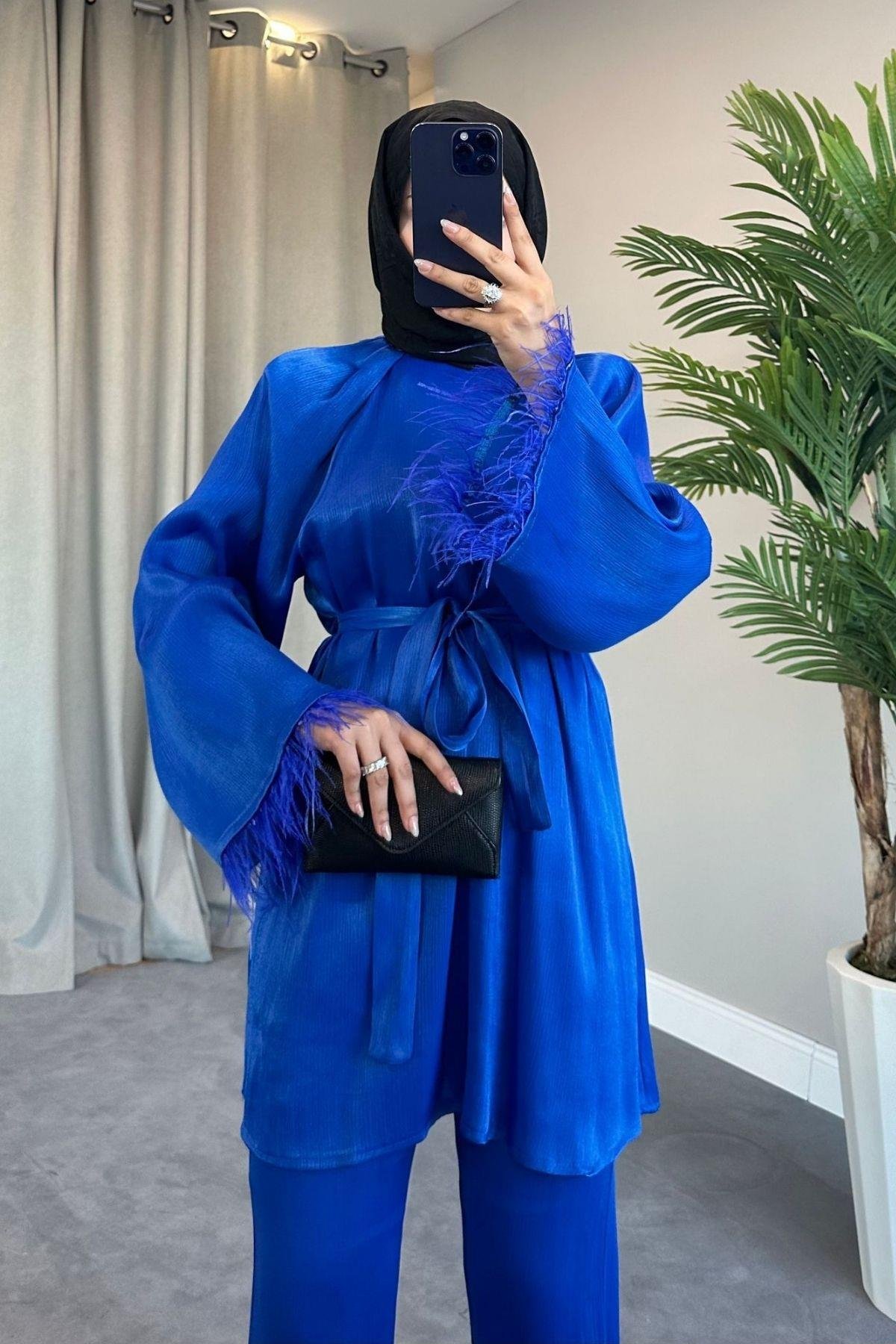 بدلة ماريا ذات الريش باللون الأسود طقم ريش ماريا بني ماريا بدلة ريشة بيج ماريا ريشة بدلة ليلك ماريا ريشة البدلة ساكس ماريا ريشة البدلة الخضراء