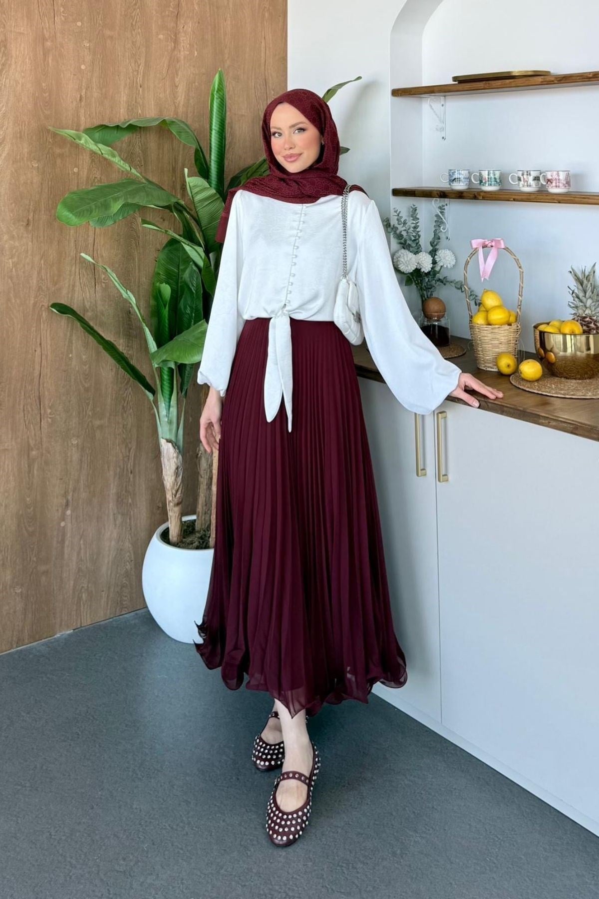Piliseli Şifon Etek Bordo (3669)