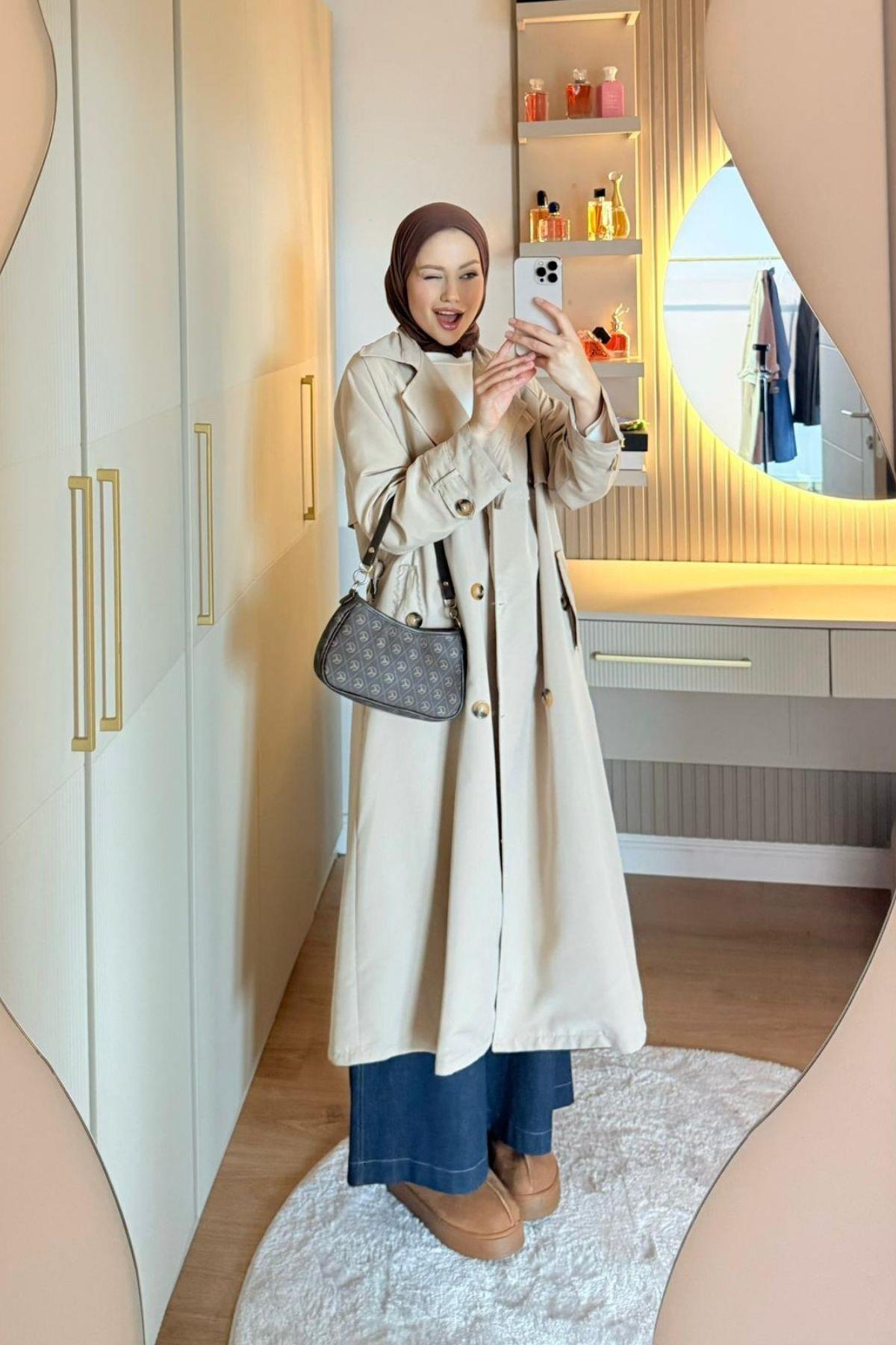 Ürün adı-Quup düğmeli trenç Ürün kodu-30202 Ürün ebat- 123 Beden aralığı-standart Ürün tam kalıptır kollarında kuşakları mevcuttur bir adet seyyar şağıda mevcuttur ön formunda pelerin detayı mevcuttur düğme detaylıdır arka kısmında aynı şekilde düğme mevcuttur .