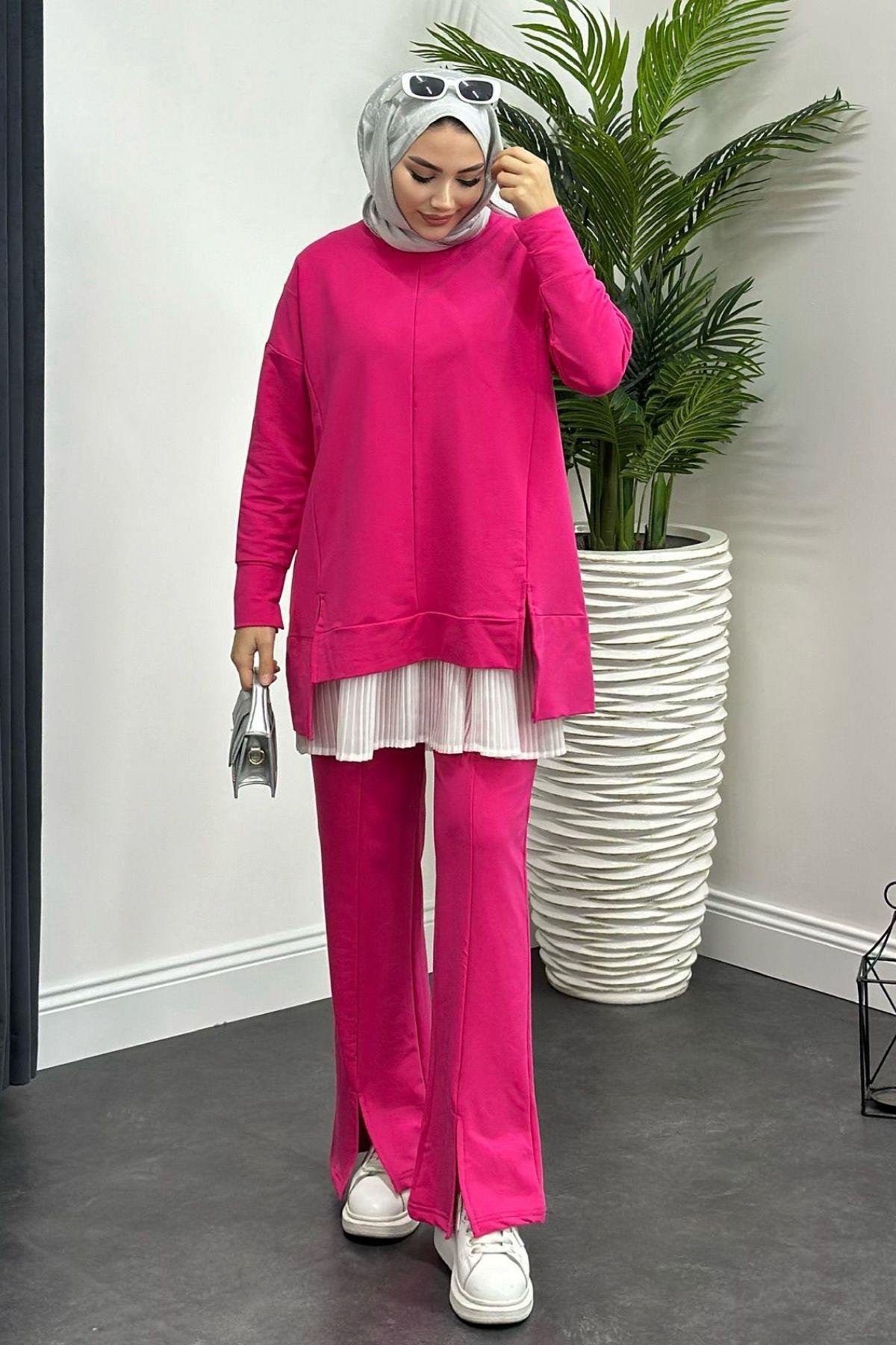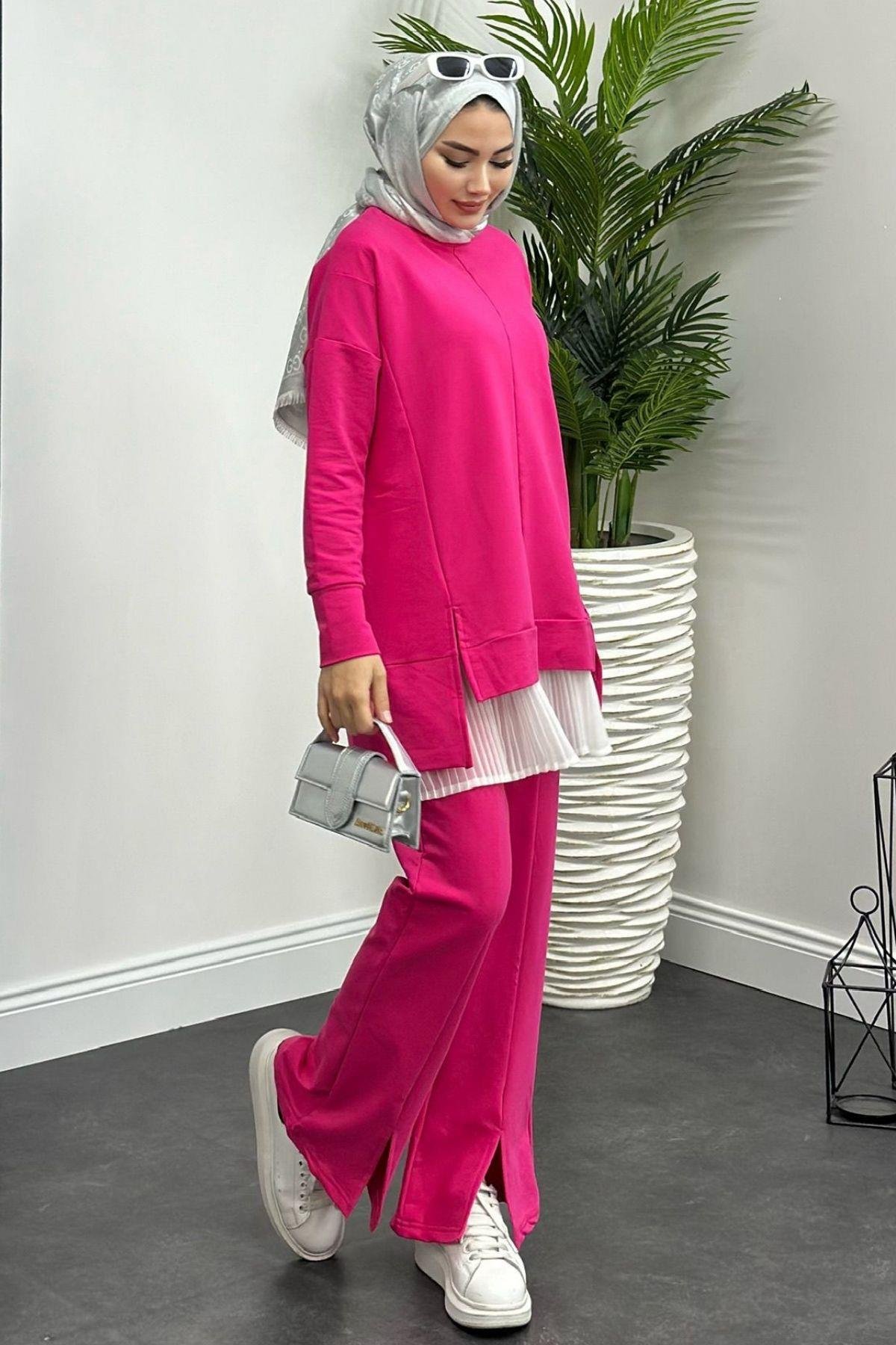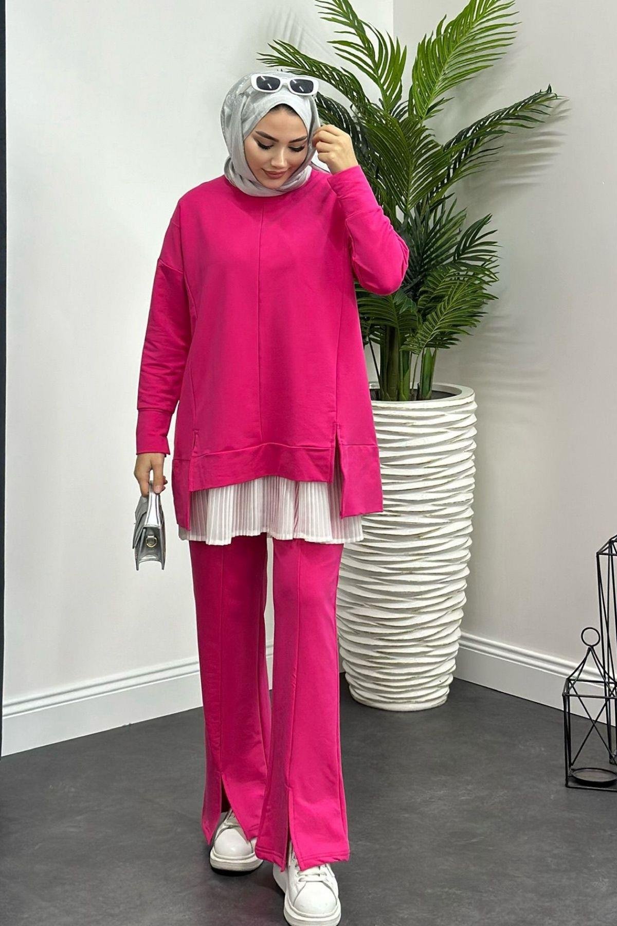 طقم رياضي كاجوال باللون الفوشيا (8591)