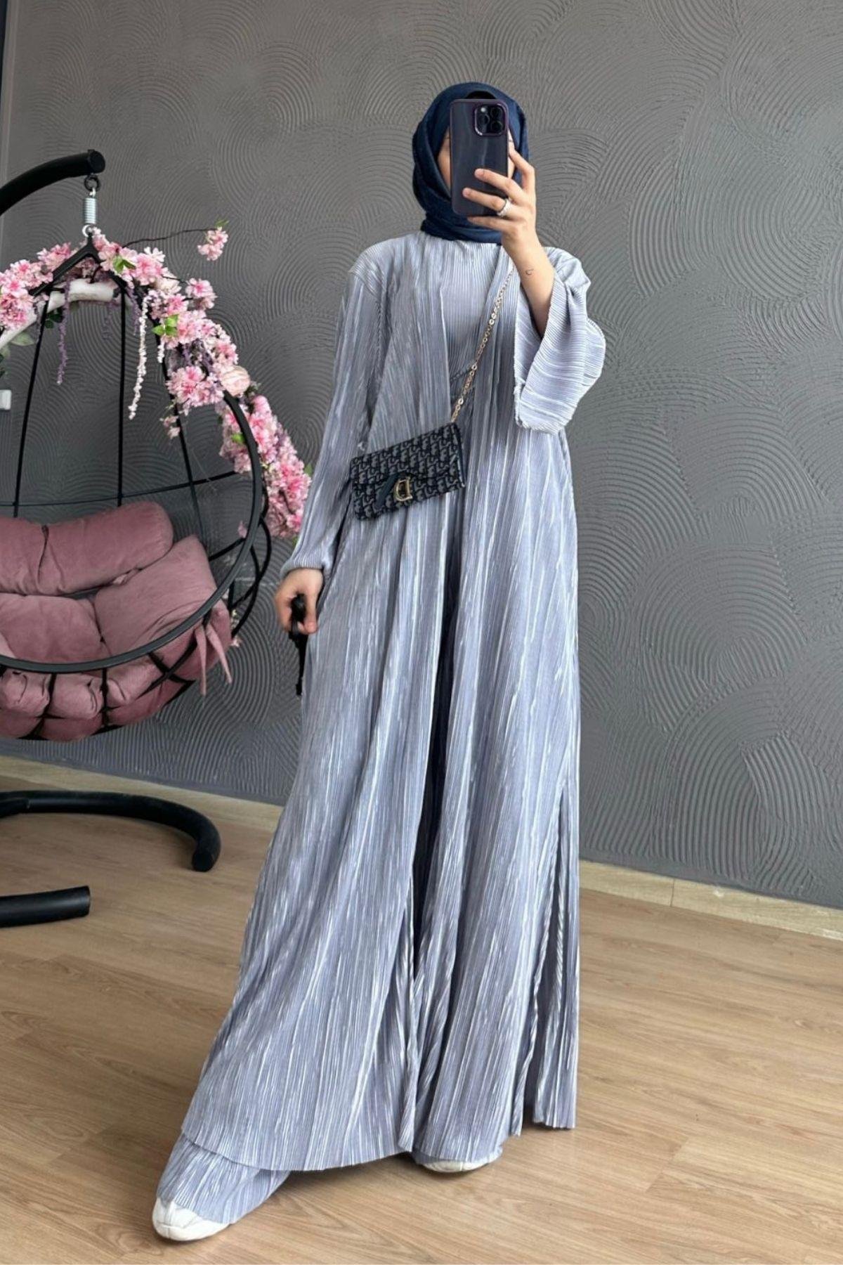 Üçlü Piliseli Takım Saks Üçlü Piliseli Takım Füme Üçlü Piliseli Takım Açık Gri Üçlü Piliseli Takım Siyah Üçlü Piliseli Takım Zümrüt Üçlü Piliseli Takım Fuşya