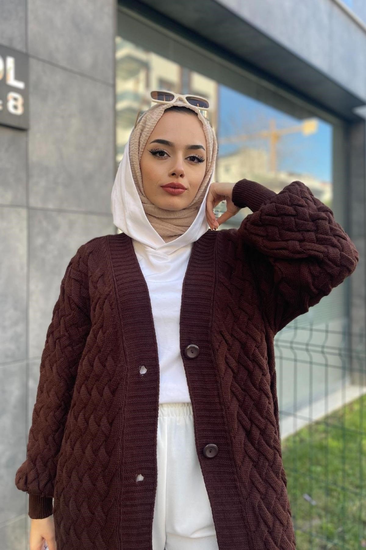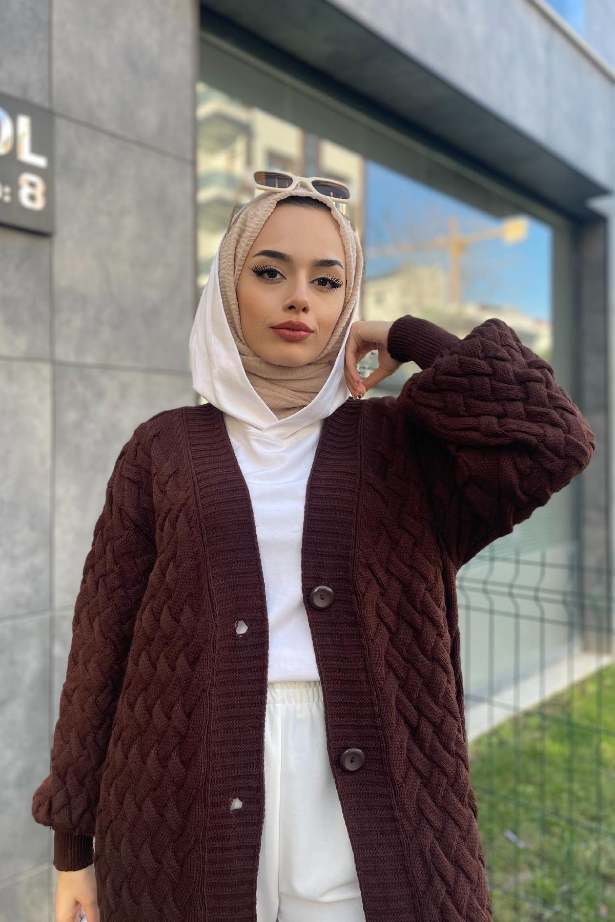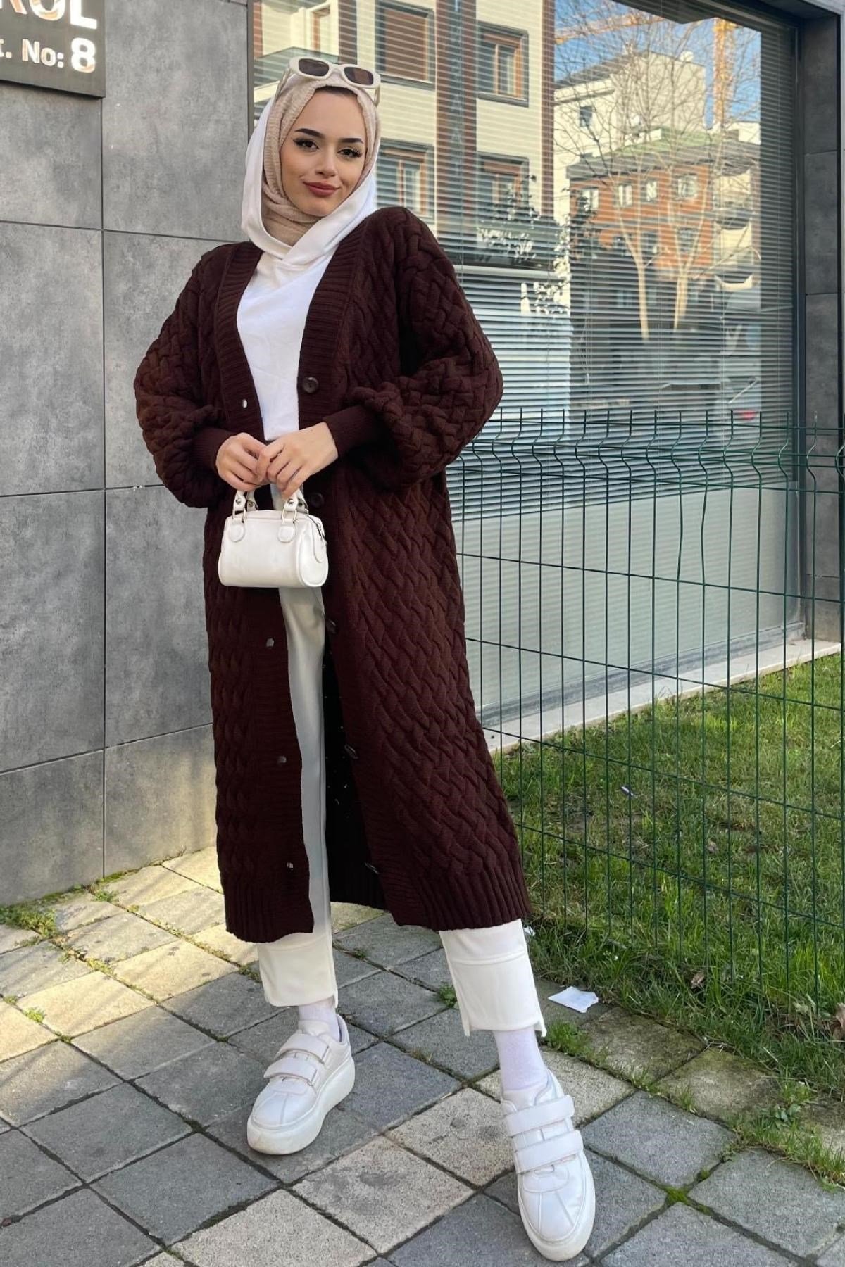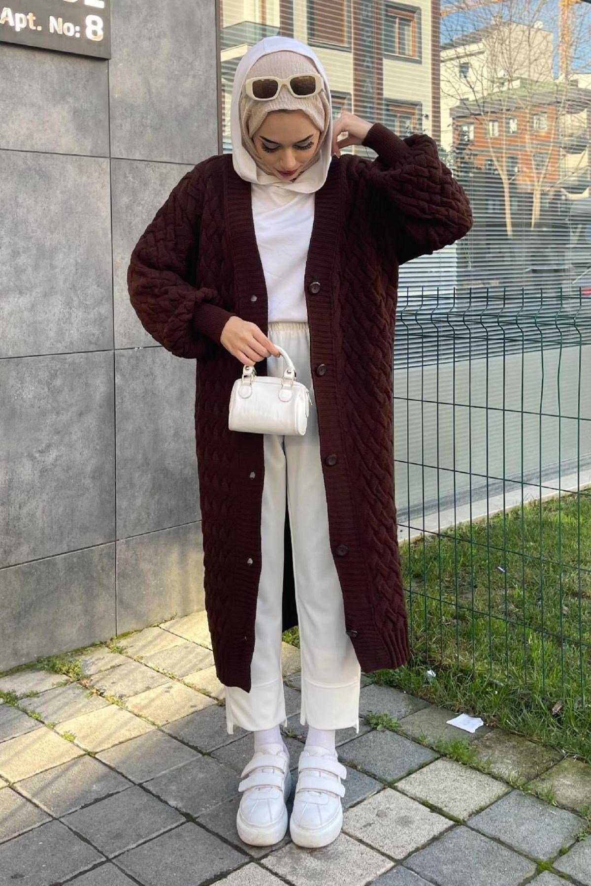 كارديجان طويل محبوك بني (8249)