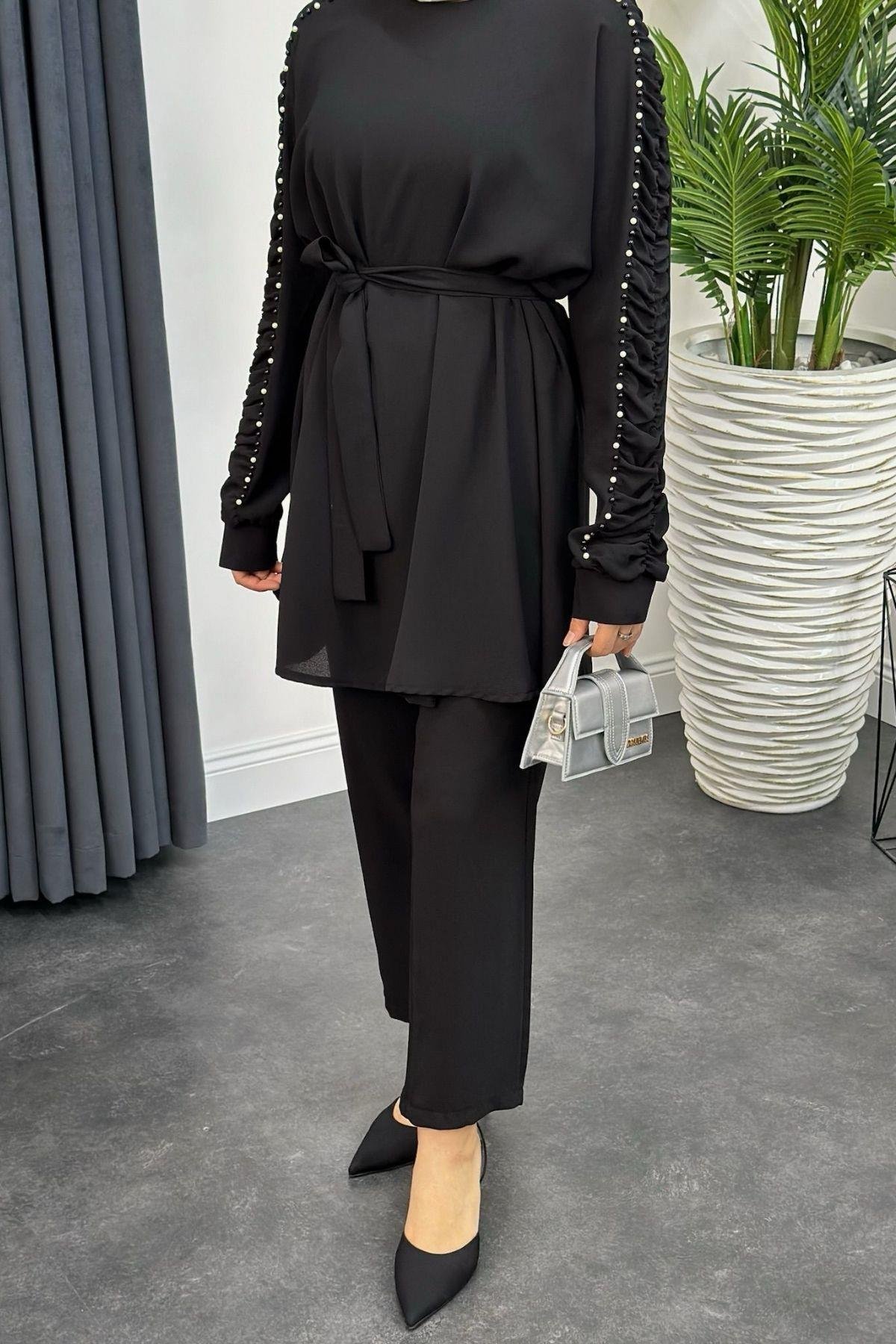 • تفاصيل أكمام الكتف عبارة عن تفاصيل خرز مجمعة