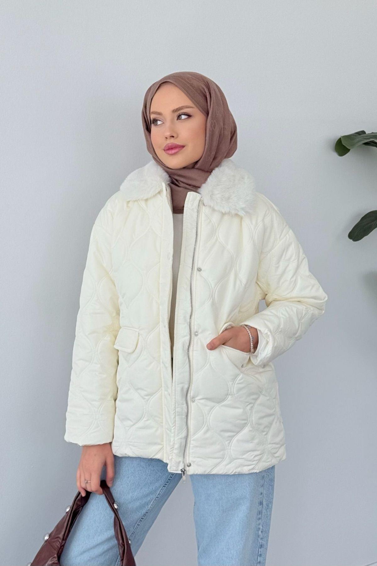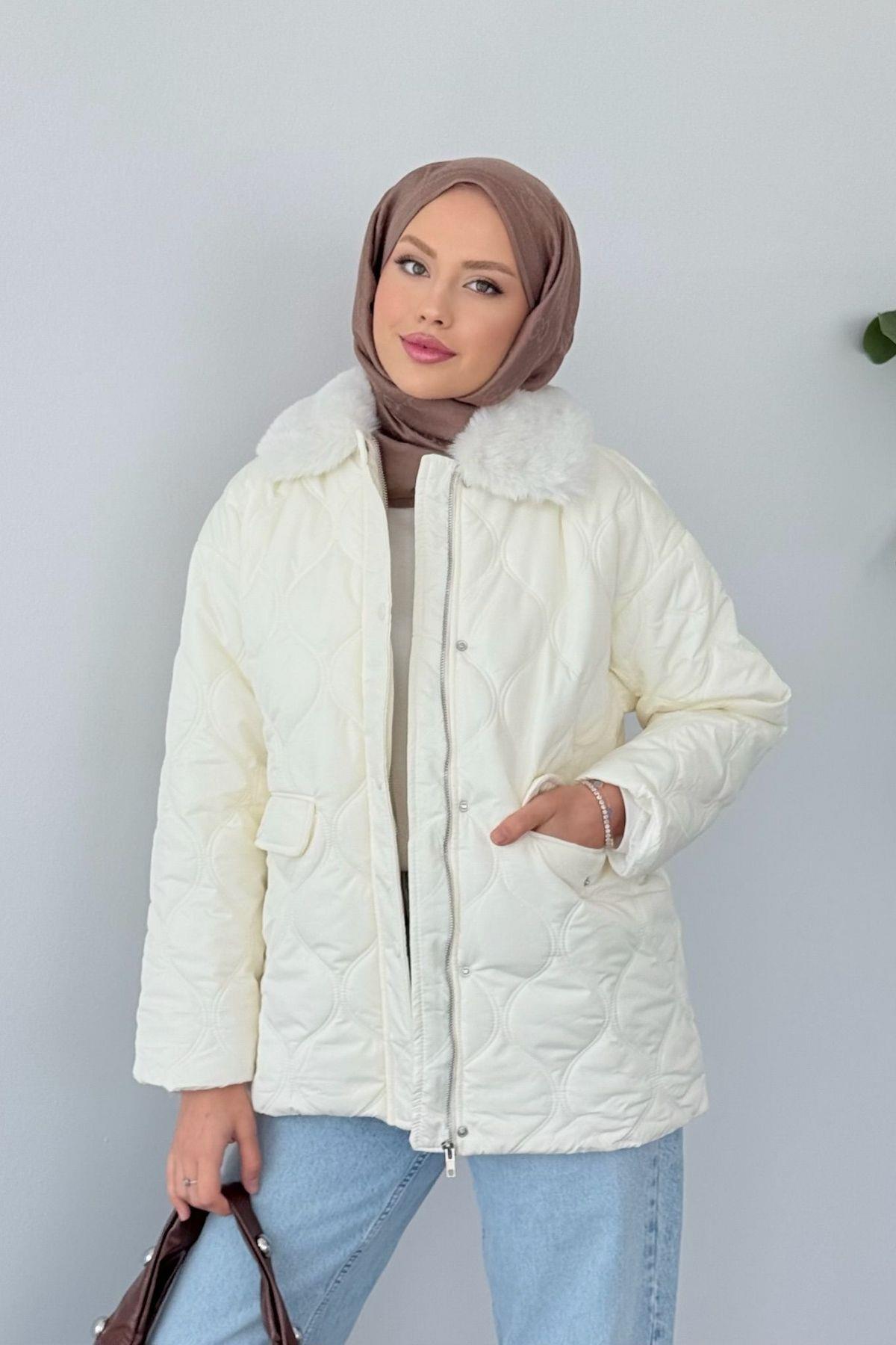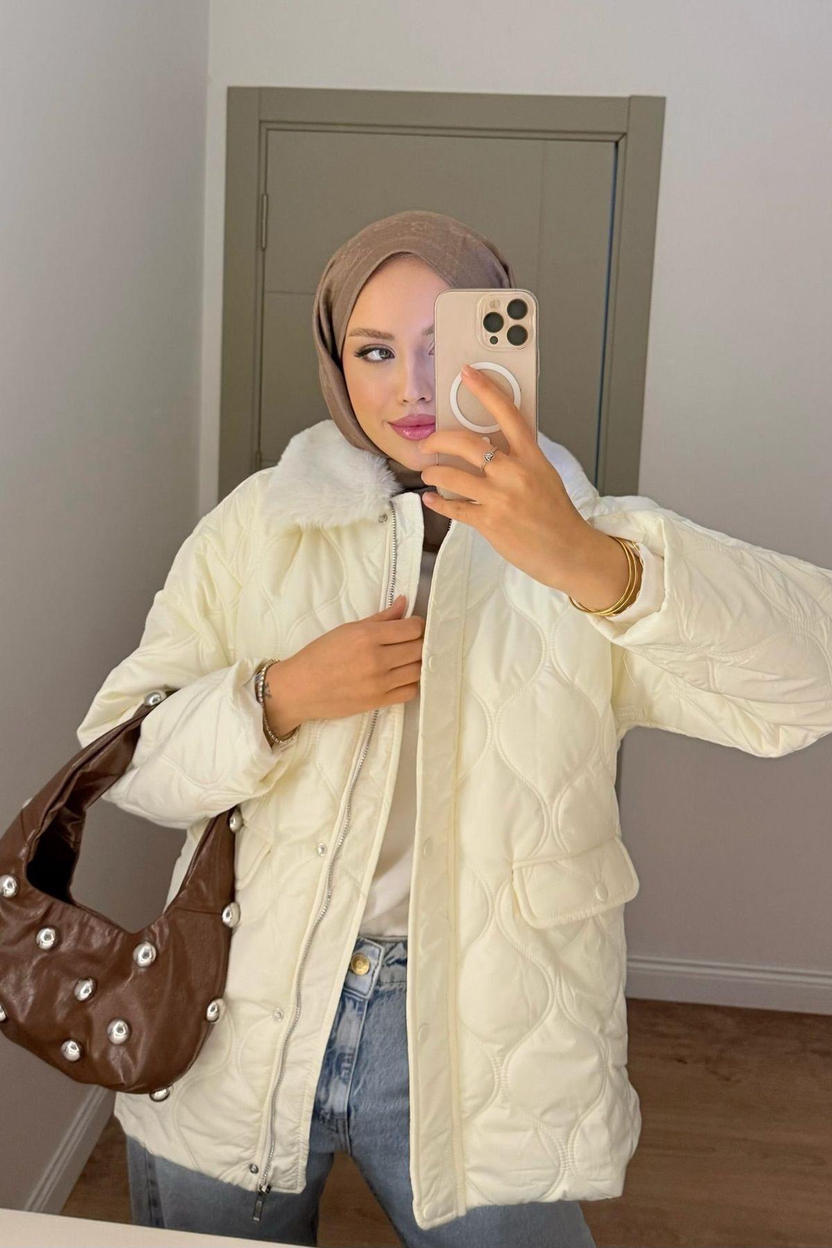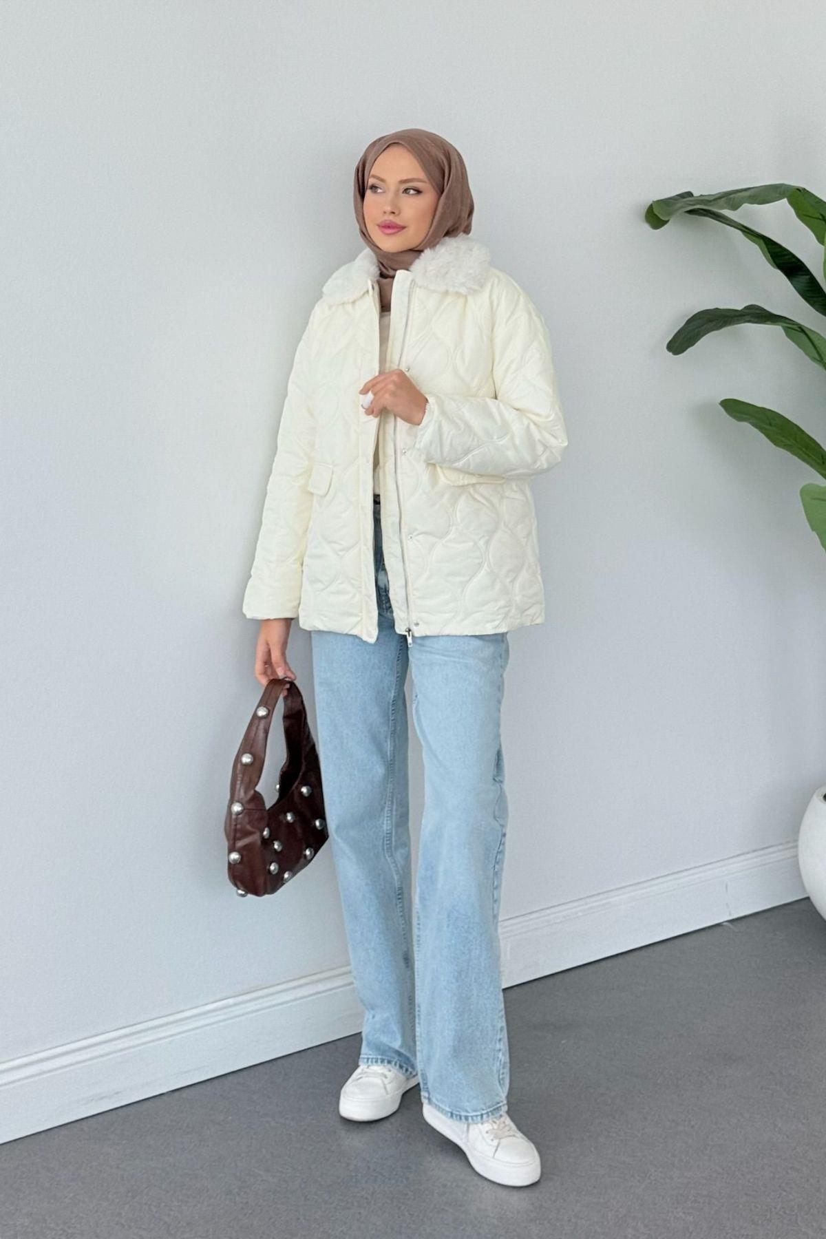 Azem Kürk Detaylı Mont Ekru (5904)