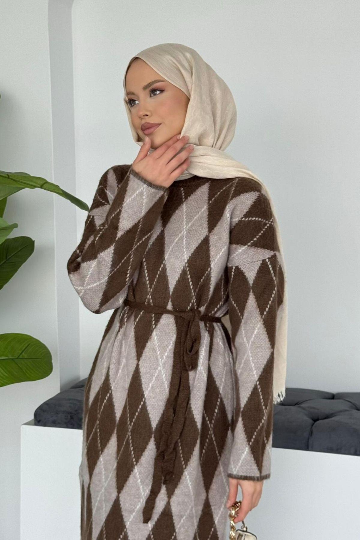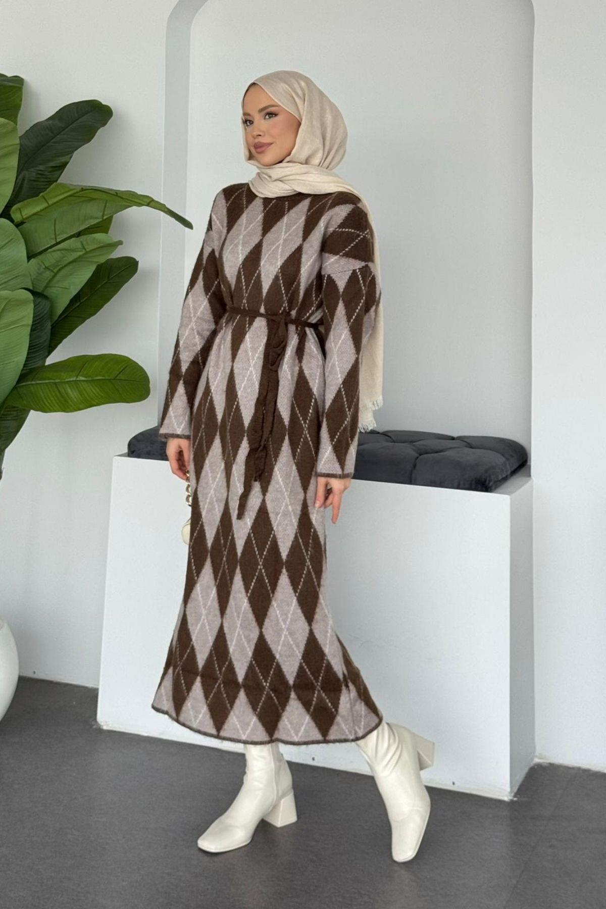 ÜRÜN ADI: Baklava Desenli Triko Elbise