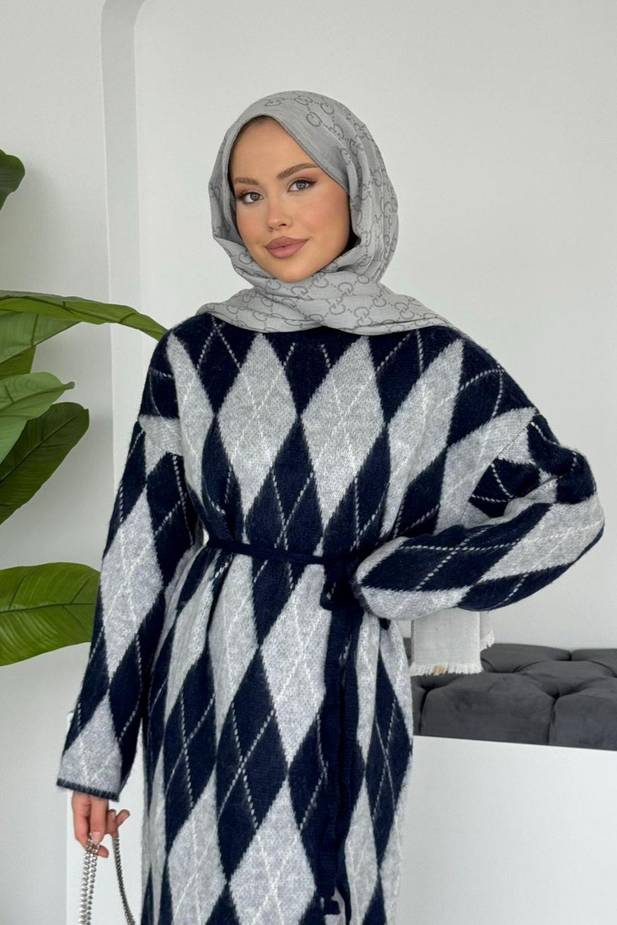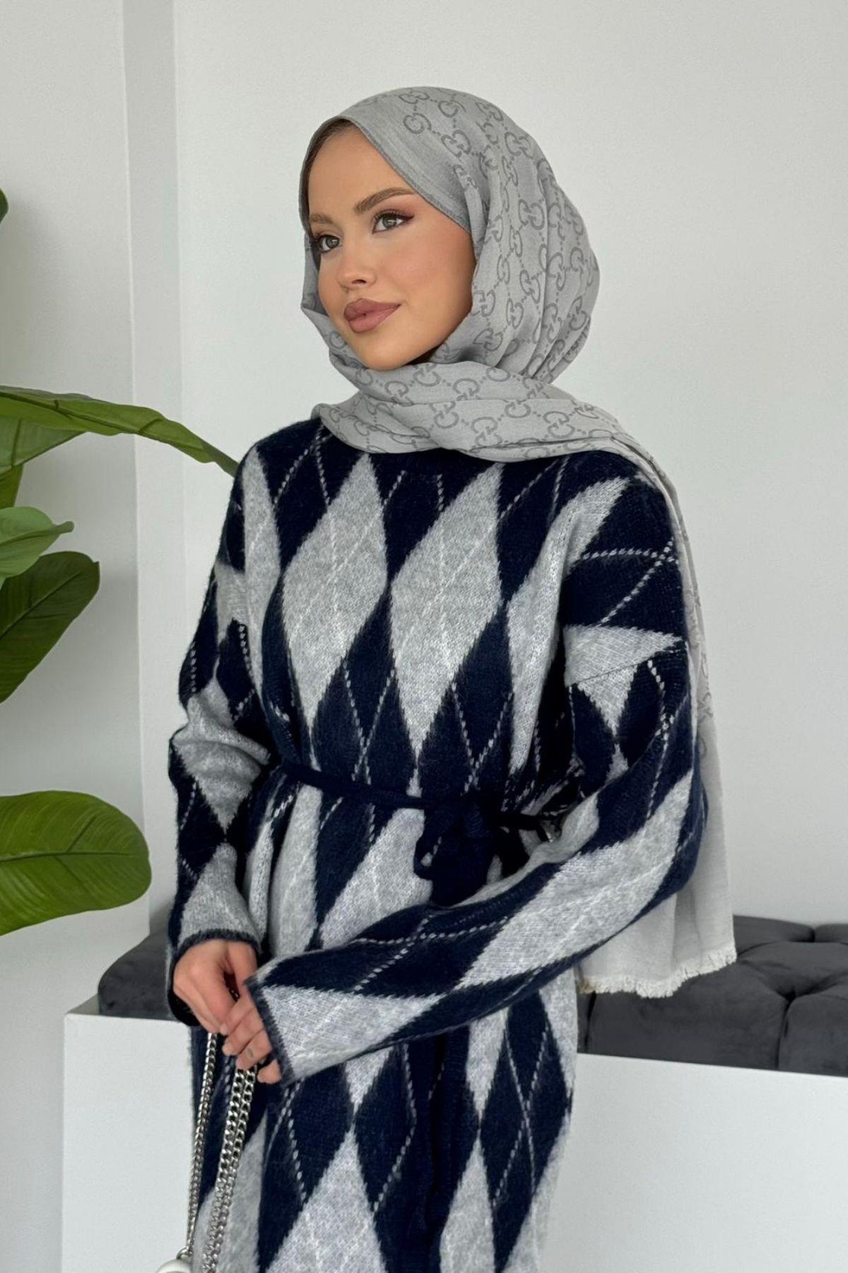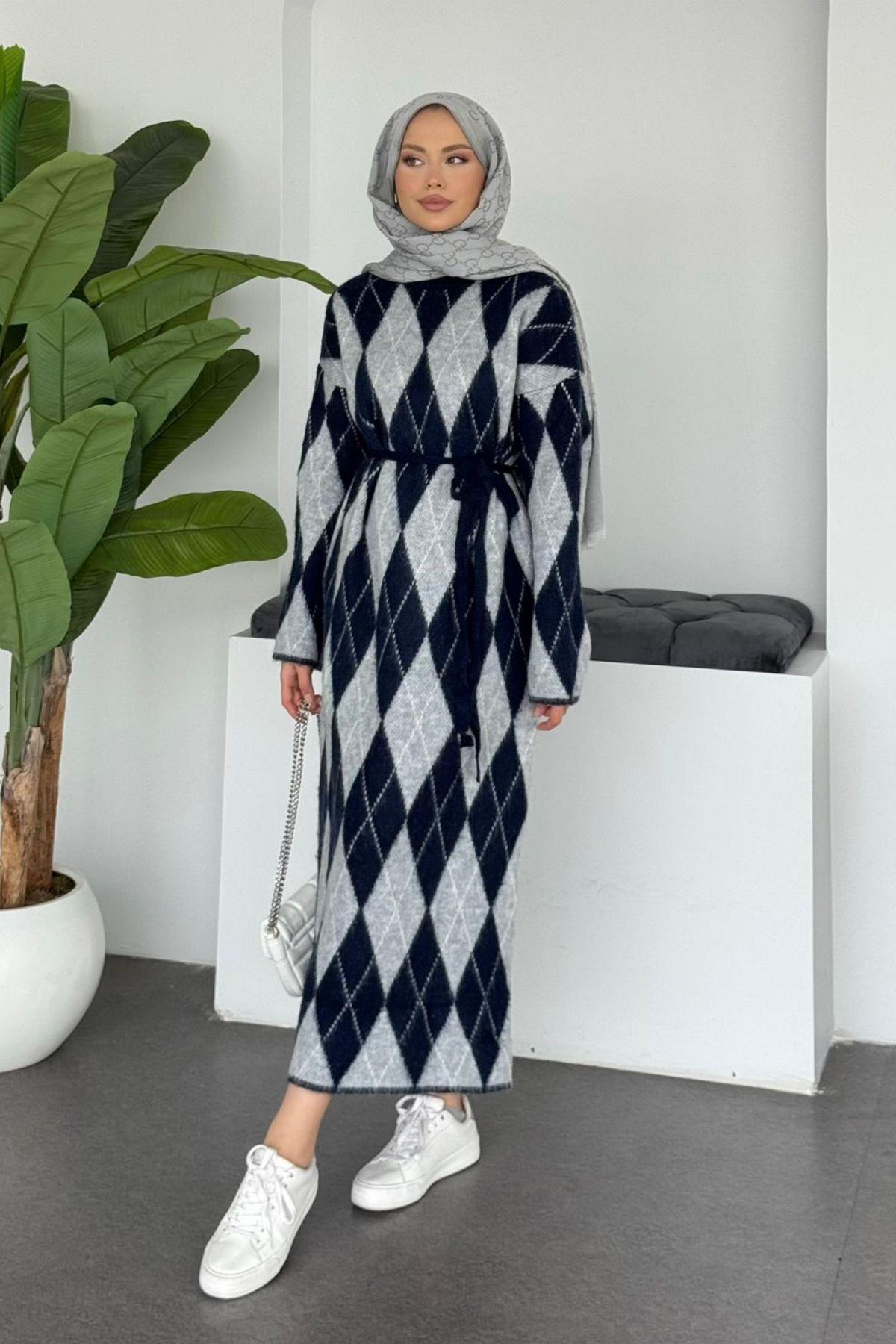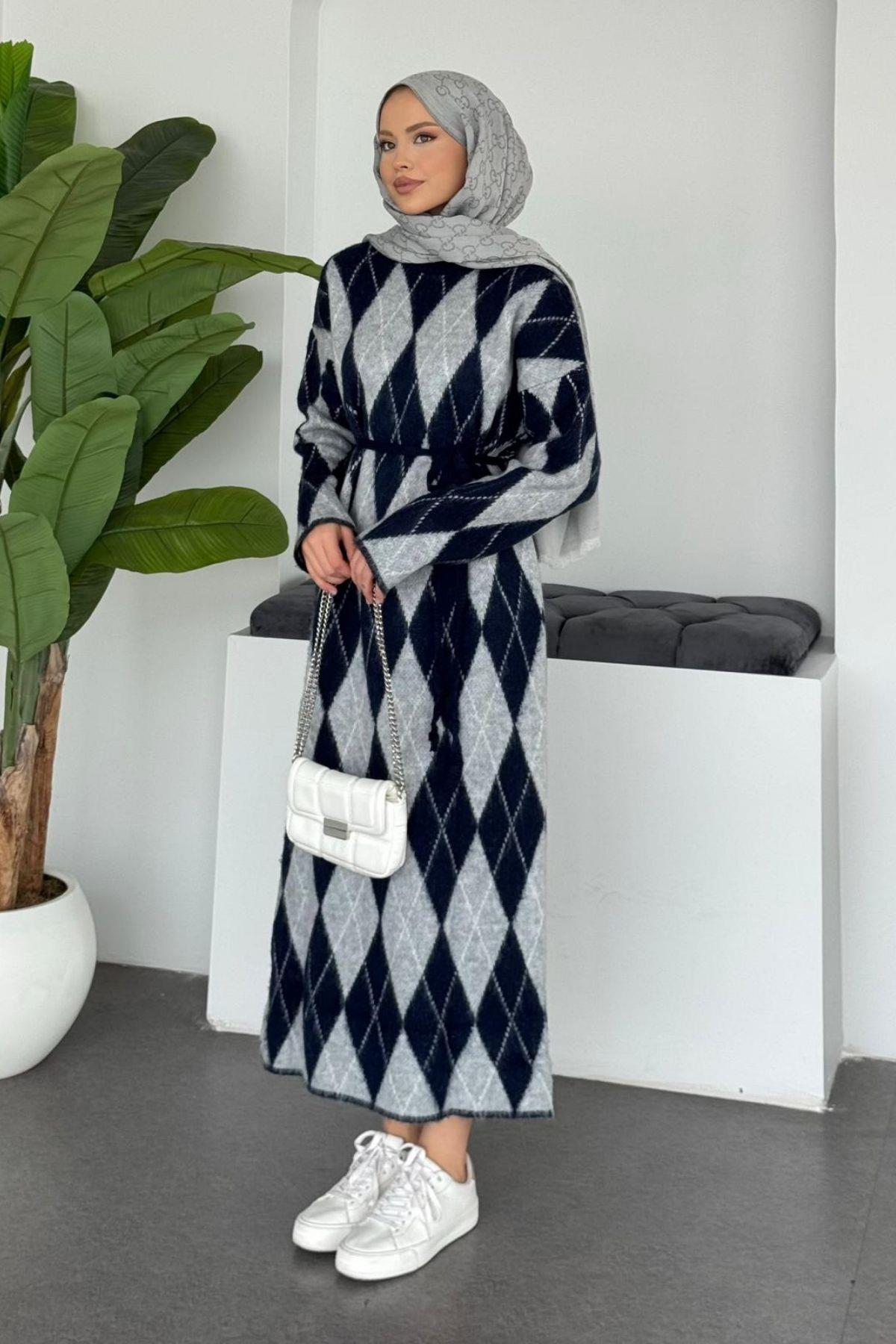 Baklava Desenli Triko Elbise, günlük şıklığınızı tamamlayacak, yumuşak triko kumaşı ve seyyar kemeri ile rahat ve zarif bir seçenektir. Esnek yapısı sayesinde konforlu bir kullanım sunar ve her vücut tipine uyum sağlar.