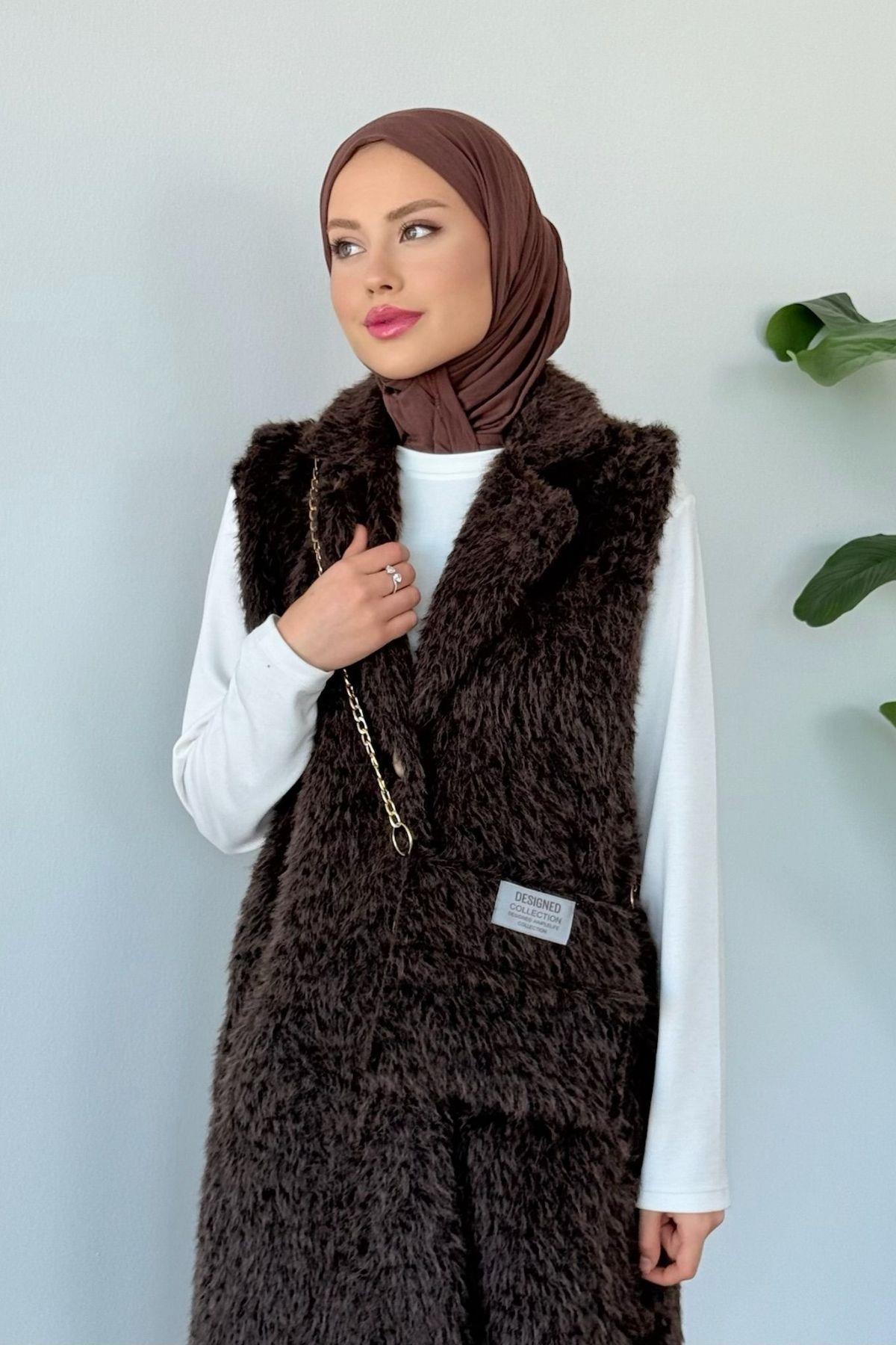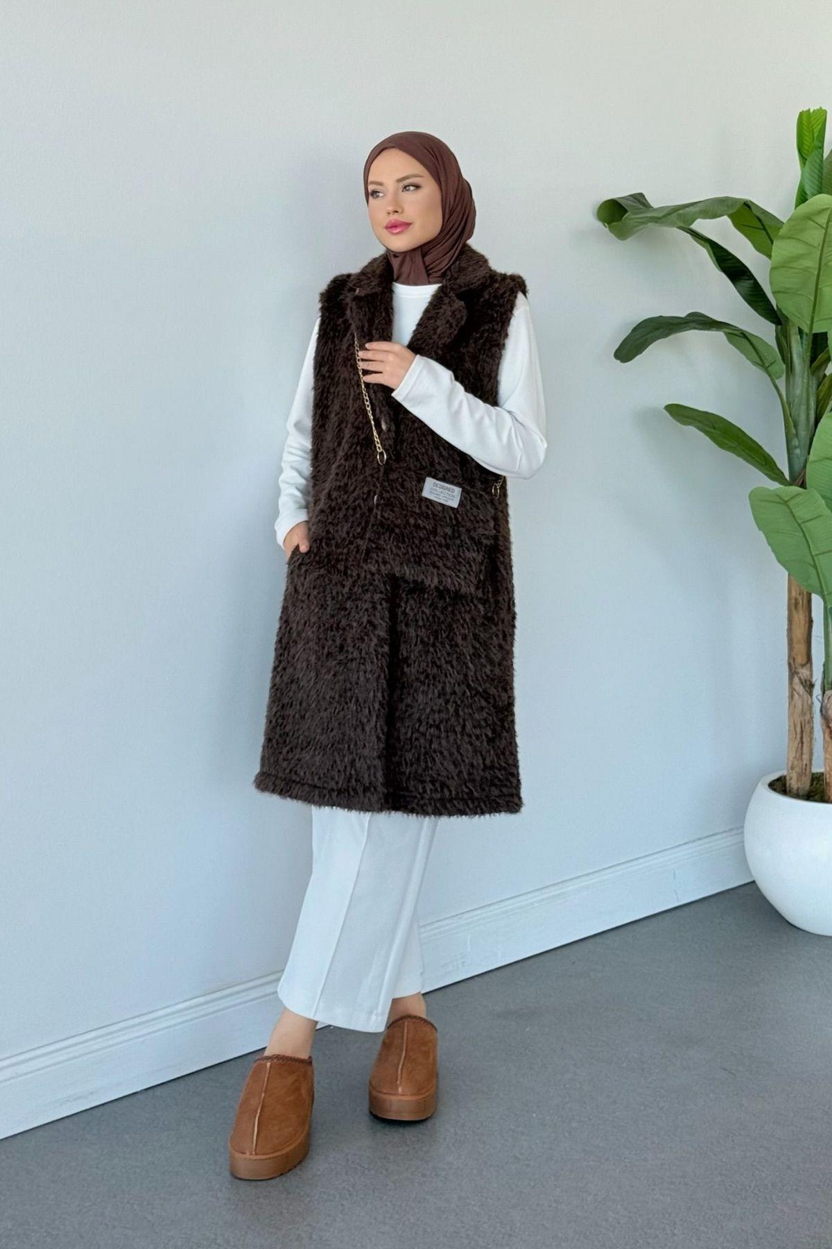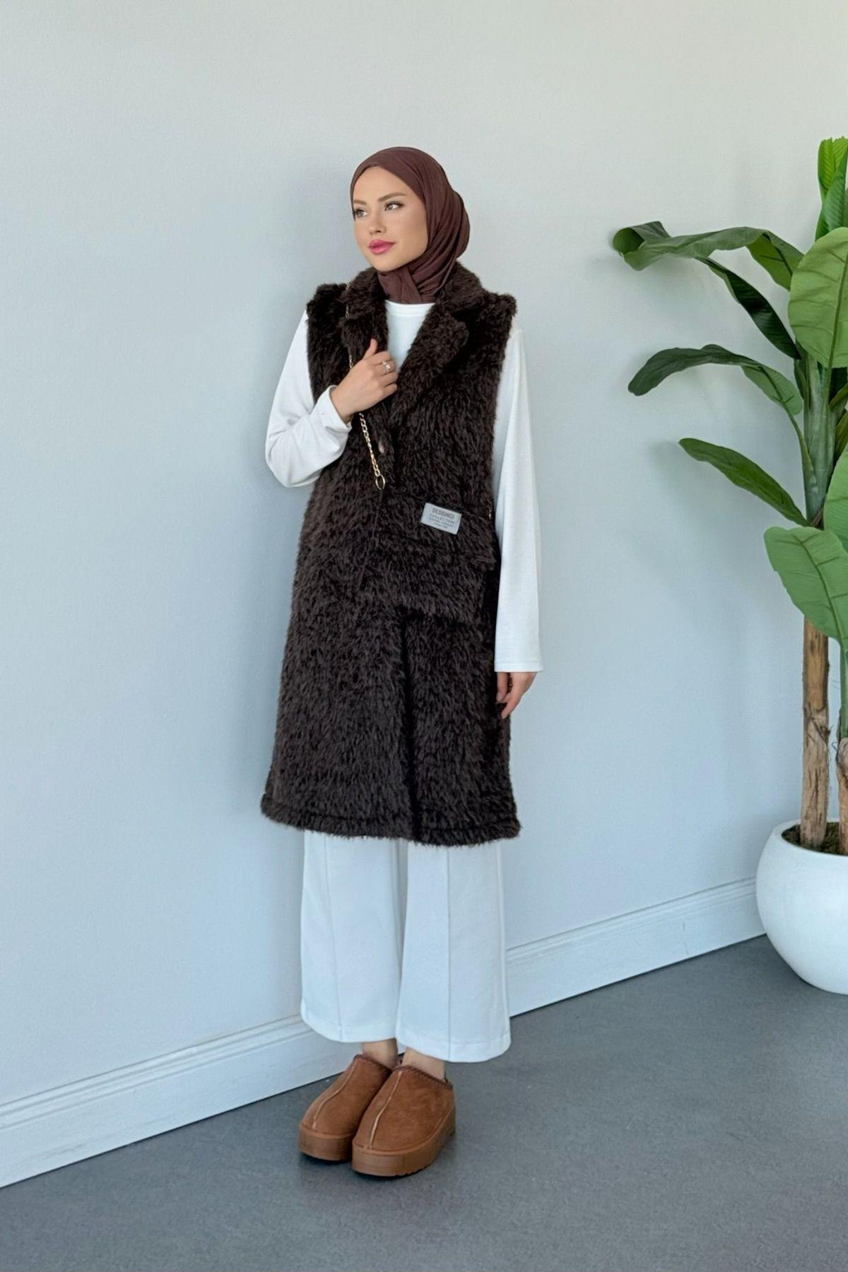 Çantalı Kürklü Yelek Acıkahve (6036)