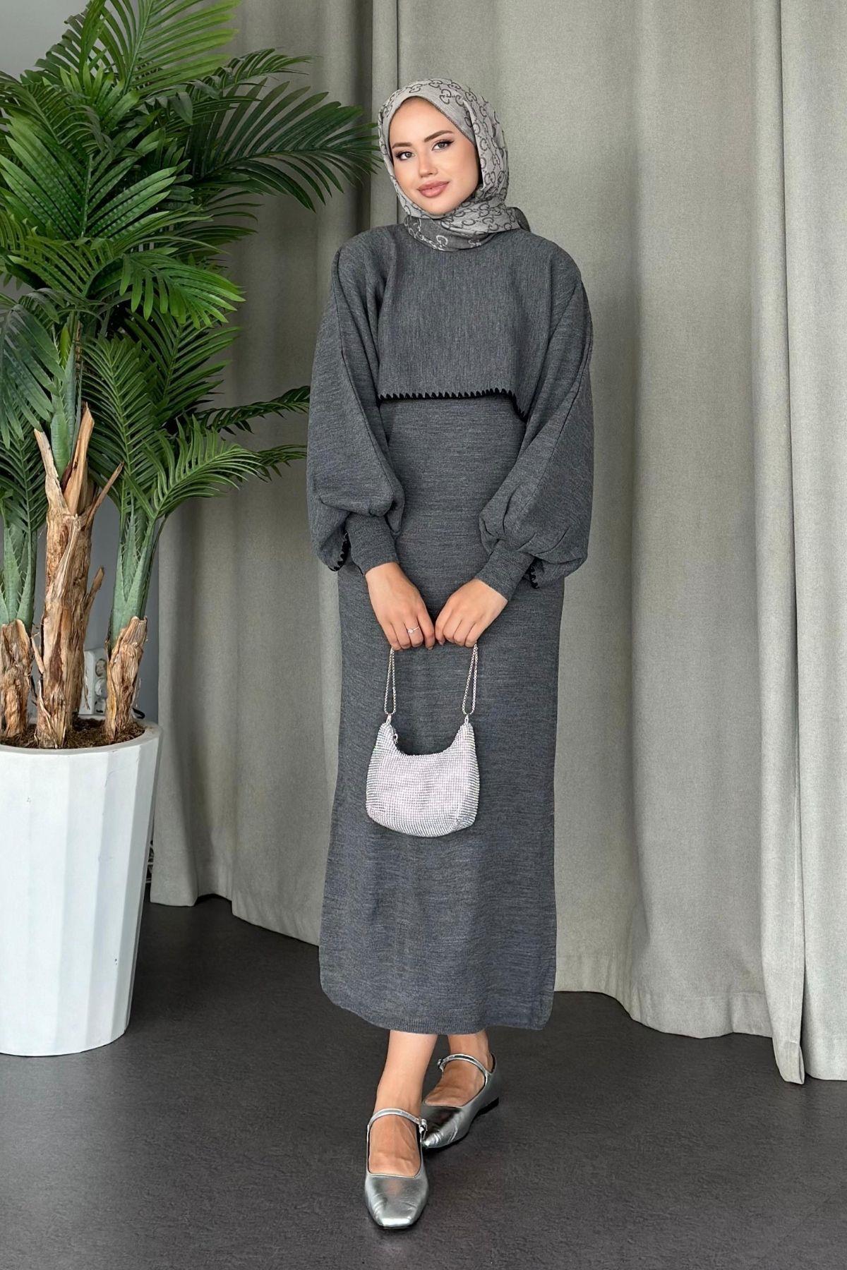 ÜRÜN ADI: Crop Görünümlü Triko Elbise Acıkahve