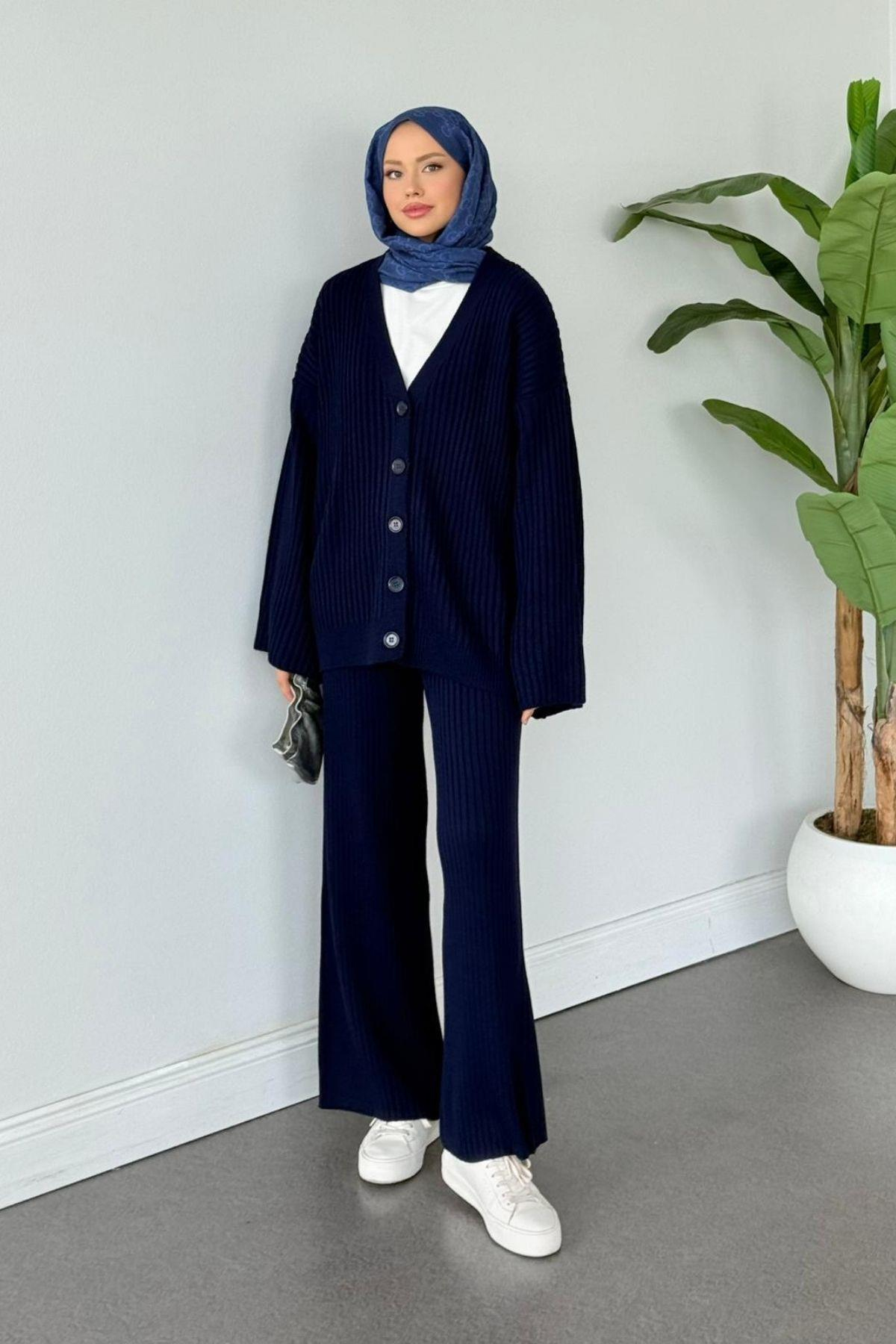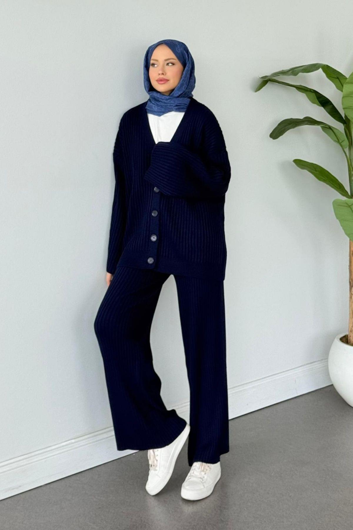 Eda İkili Triko Takım, günlük kullanımda rahatlık ve şıklığı bir arada sunan pratik bir seçenektir. Triko kumaşın esnek yapısı hareket özgürlüğü sağlarken, düğme detayı ve biyeli lastik bel tasarımı farklı vücut tiplerine mükemmel uyum sağlar. İş günlerinden hafta sonu kaçamaklarına kadar geniş bir yelpazede rahatlıkla kombinleyebileceğiniz bu set, gardırobunuzun vazgeçilmez parçalarından biri olacak.
