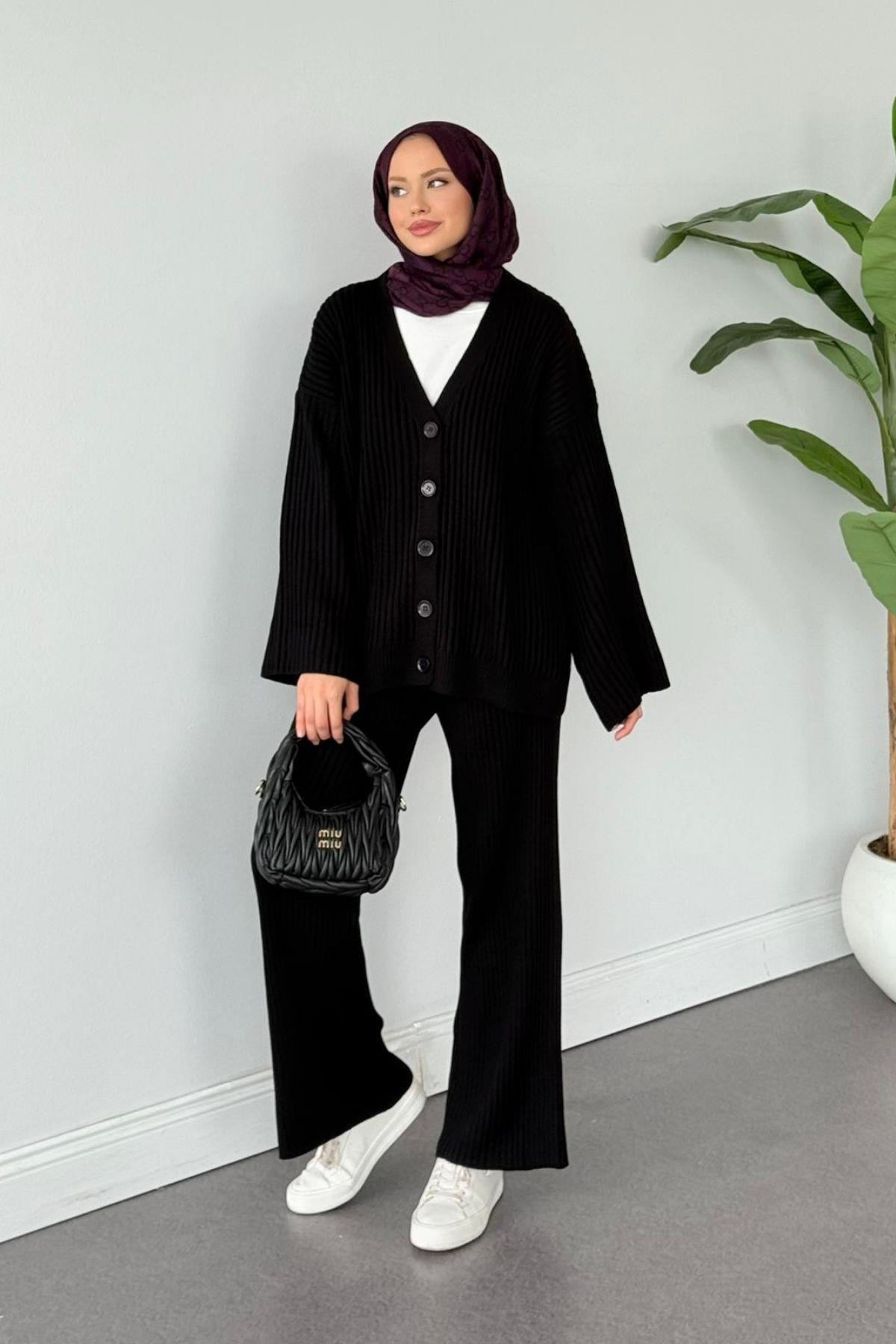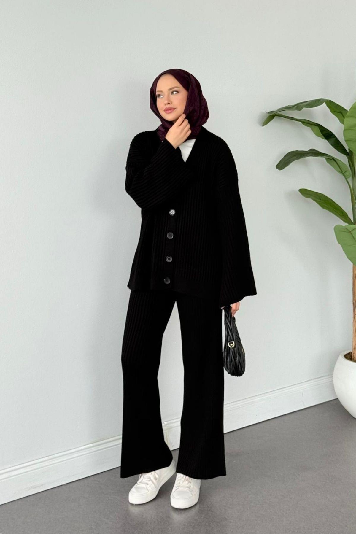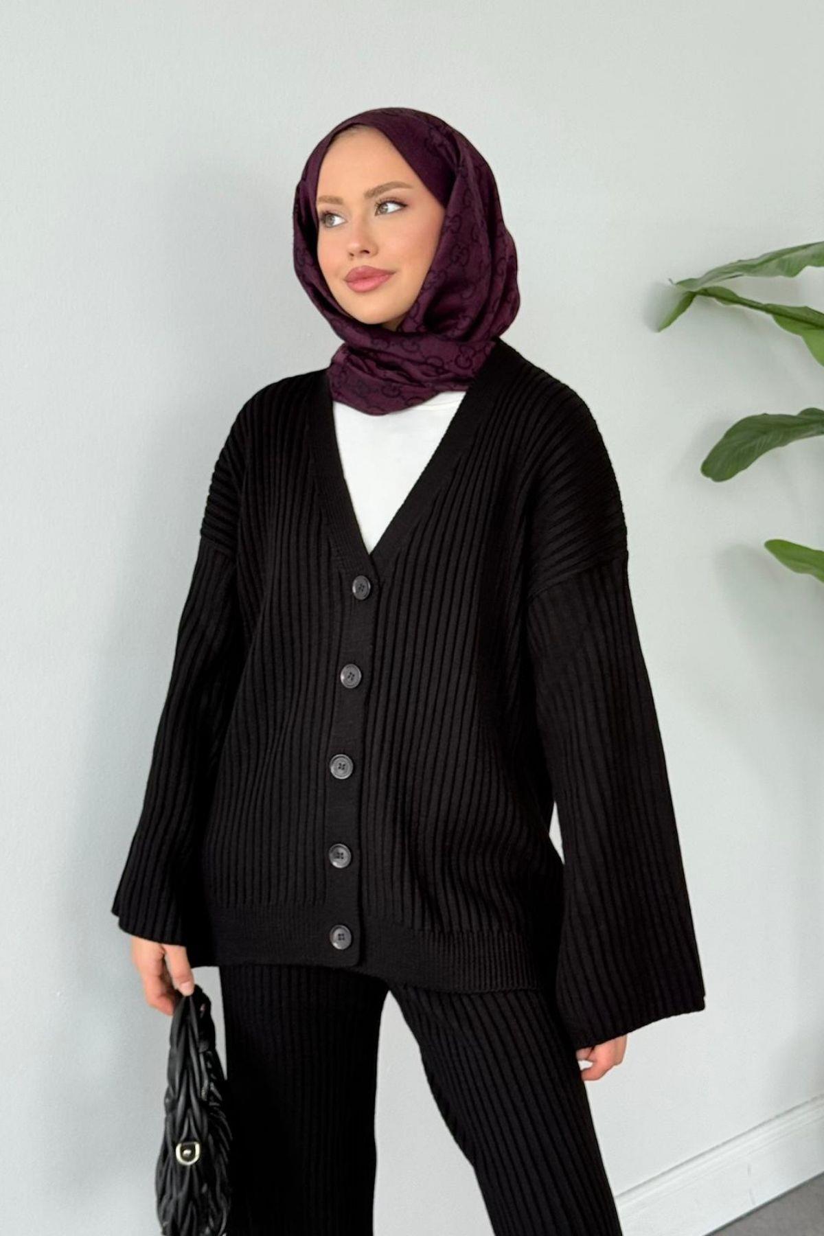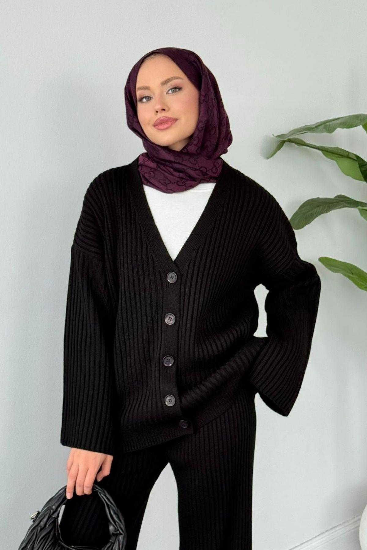Eda İkili Triko Takım, günlük kullanımda rahatlık ve şıklığı bir arada sunan pratik bir seçenektir. Triko kumaşın esnek yapısı hareket özgürlüğü sağlarken, düğme detayı ve biyeli lastik bel tasarımı farklı vücut tiplerine mükemmel uyum sağlar. İş günlerinden hafta sonu kaçamaklarına kadar geniş bir yelpazede rahatlıkla kombinleyebileceğiniz bu set, gardırobunuzun vazgeçilmez parçalarından biri olacak.