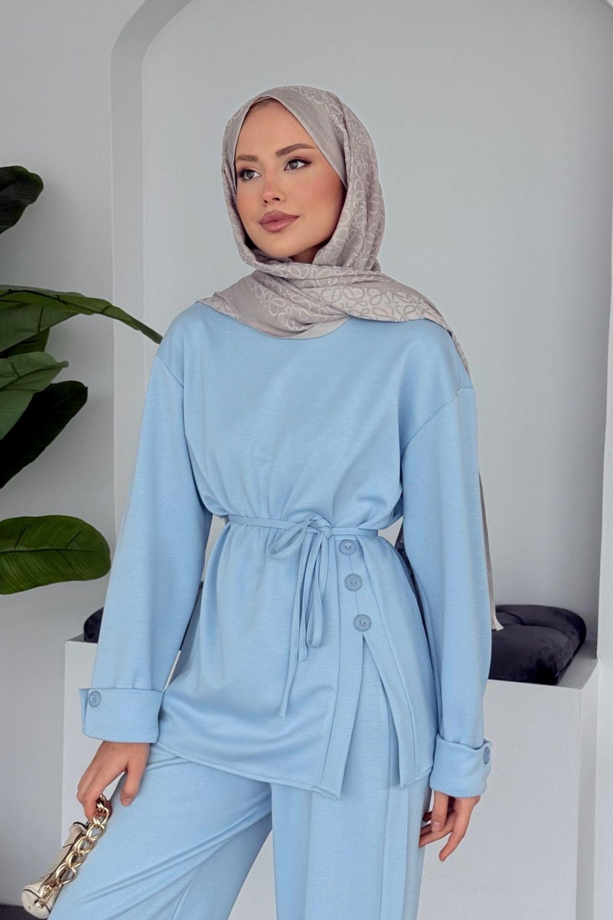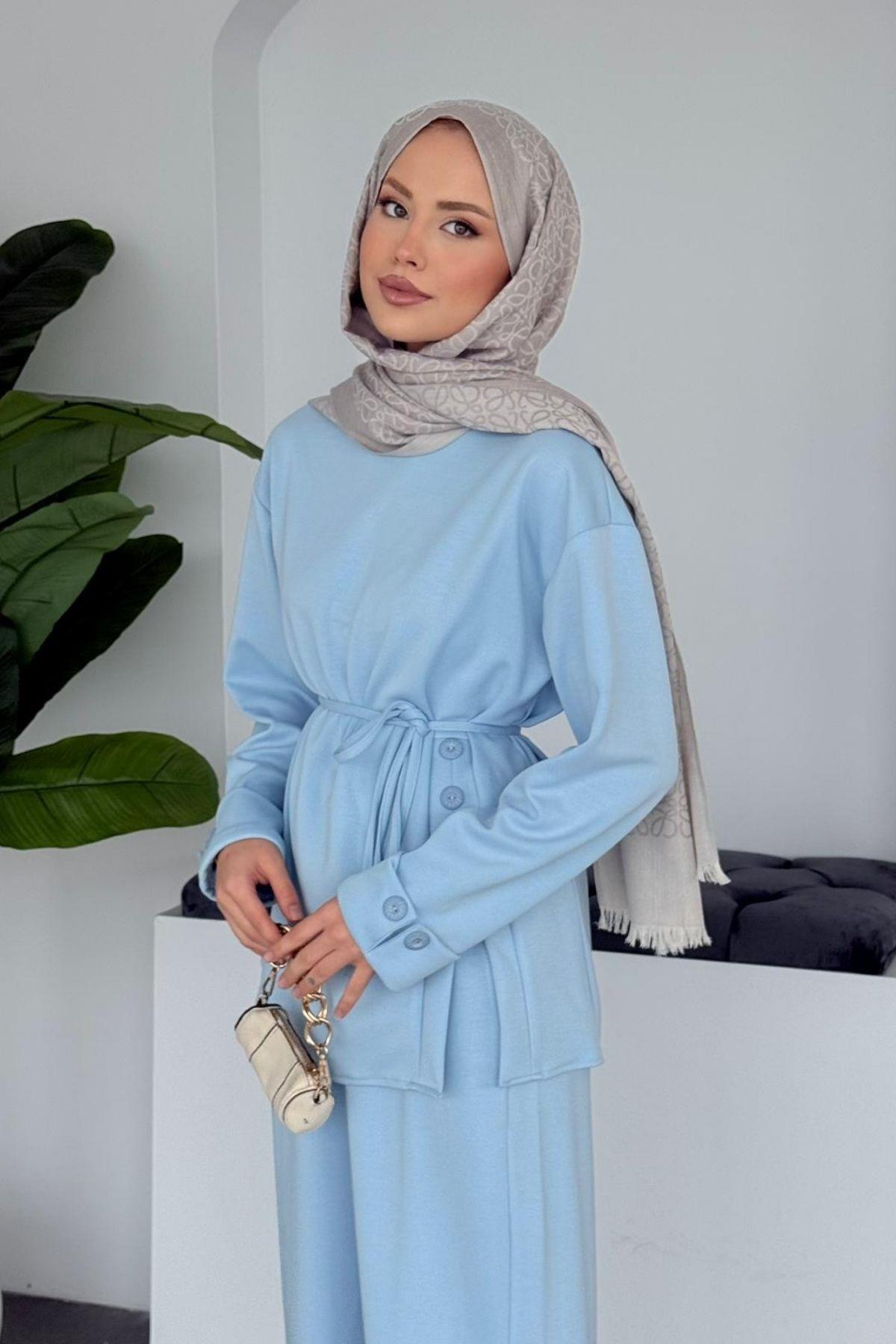 Büşra Düğmeli Modal Takım Bebemavi (20223)