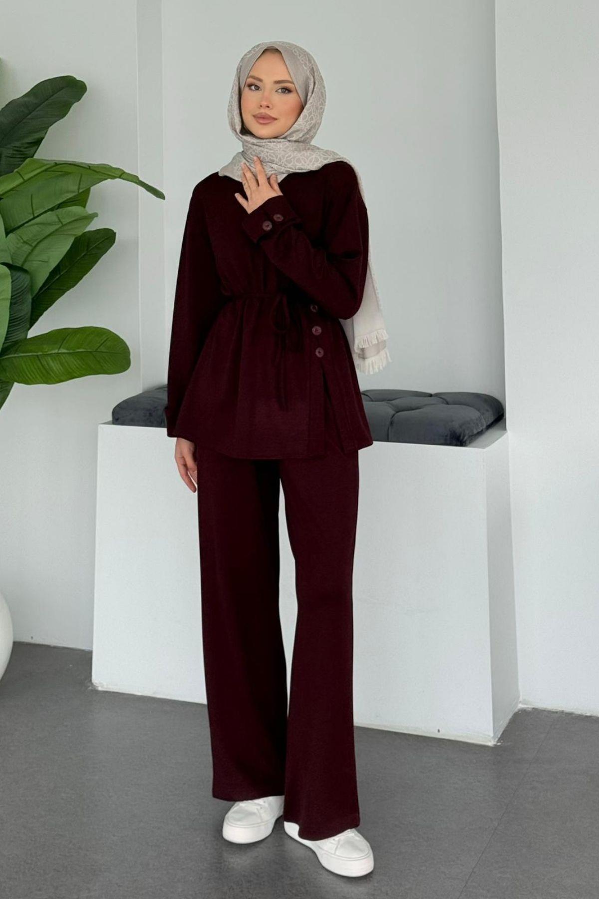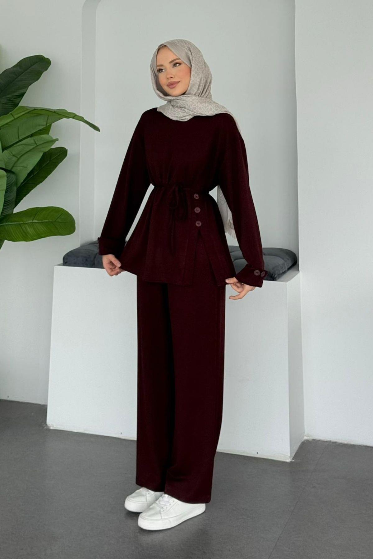 Büşra Düğmeli Modal Takım Bordo (20223)