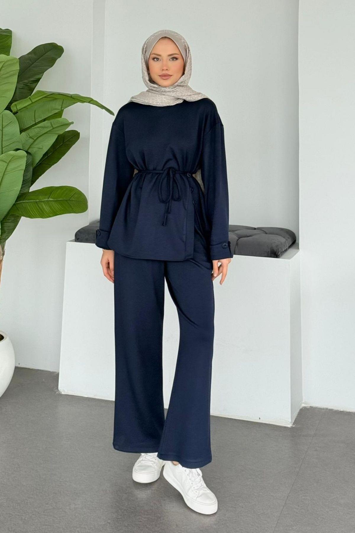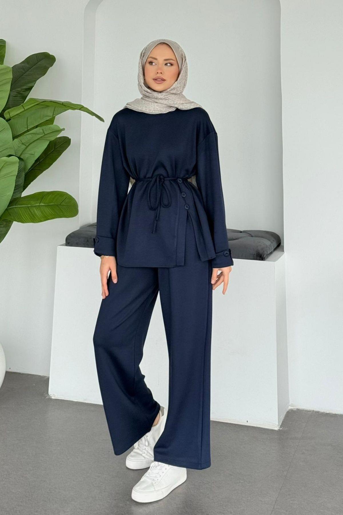 Büşra Düğmeli Modal Takım Lacivert (20223)