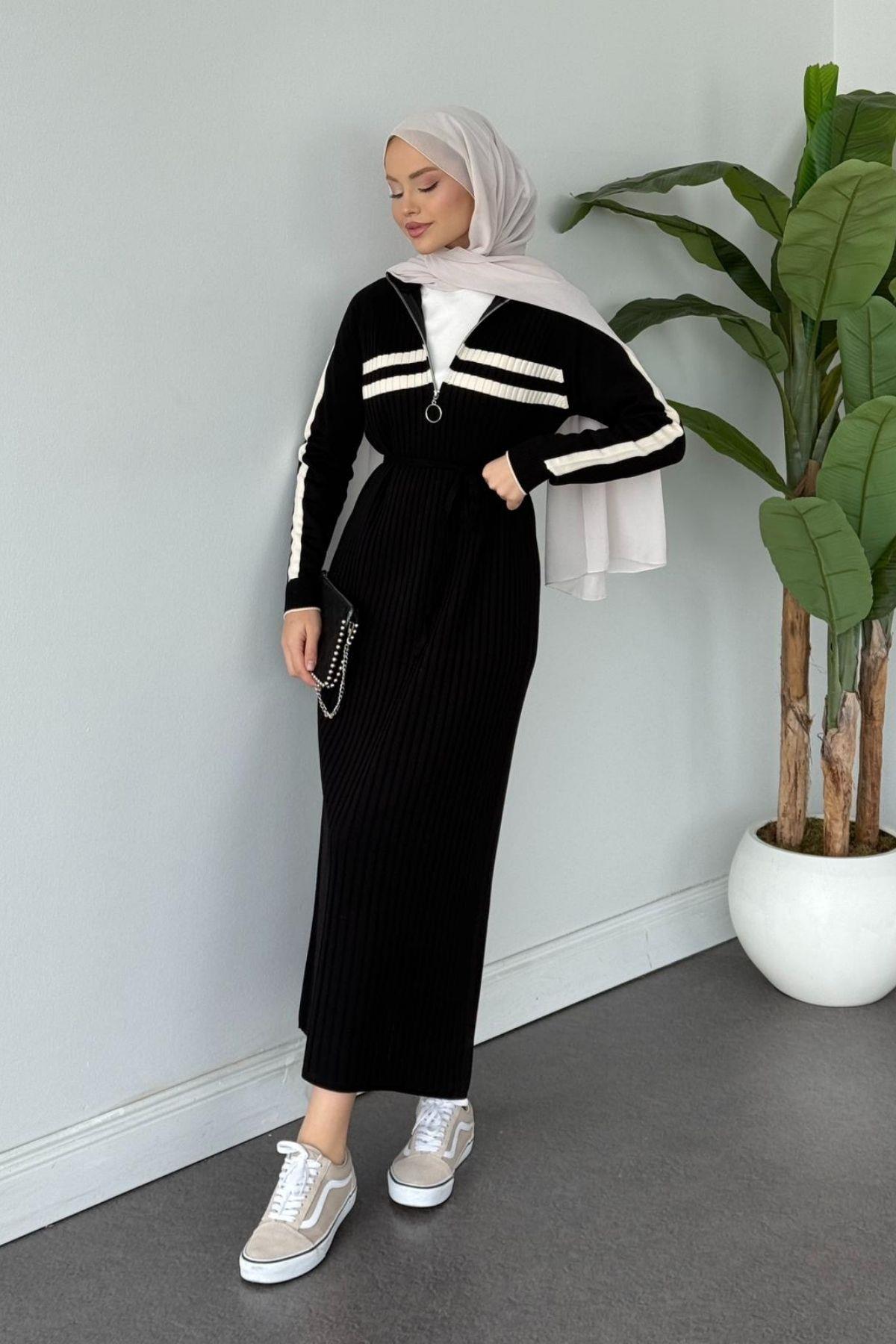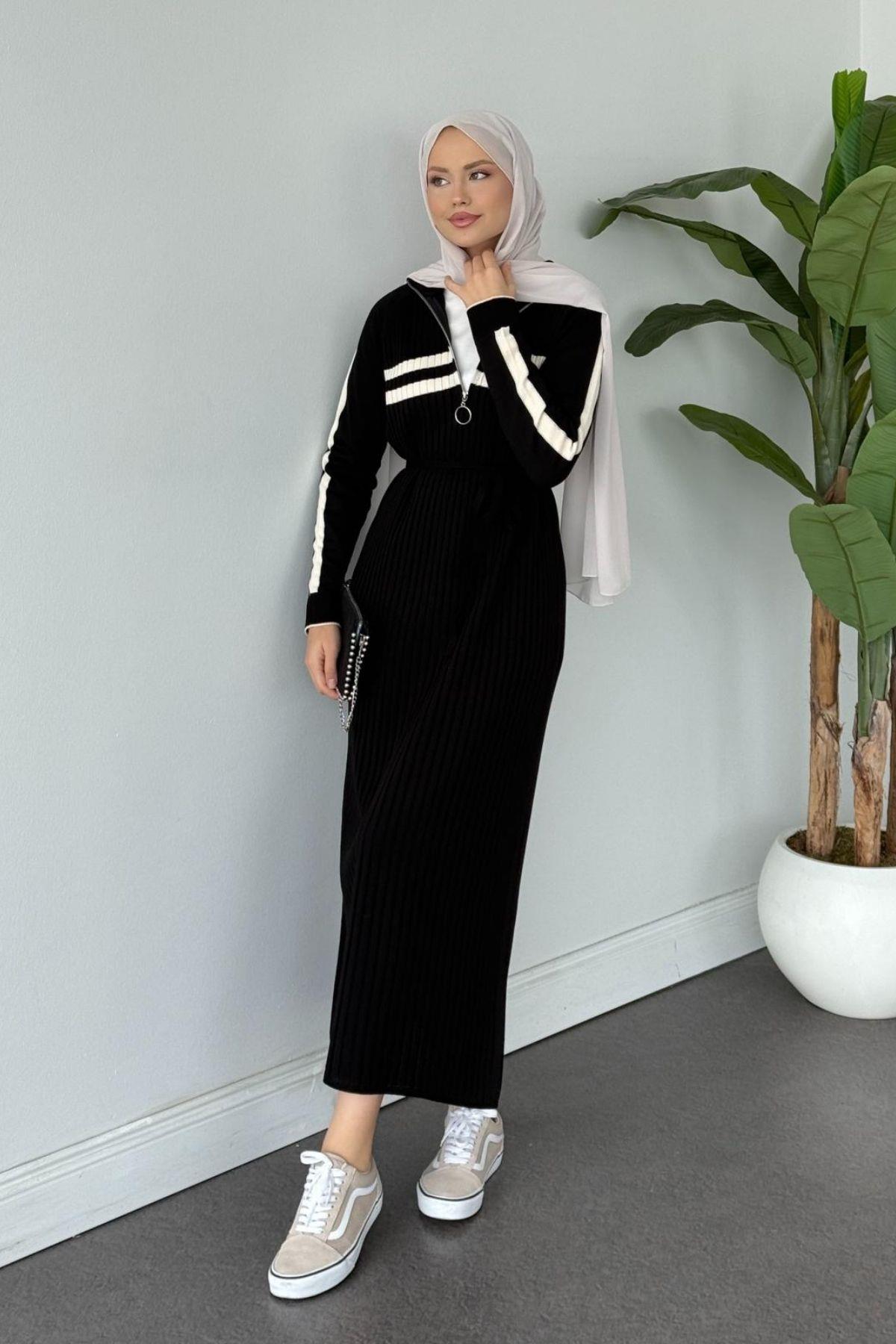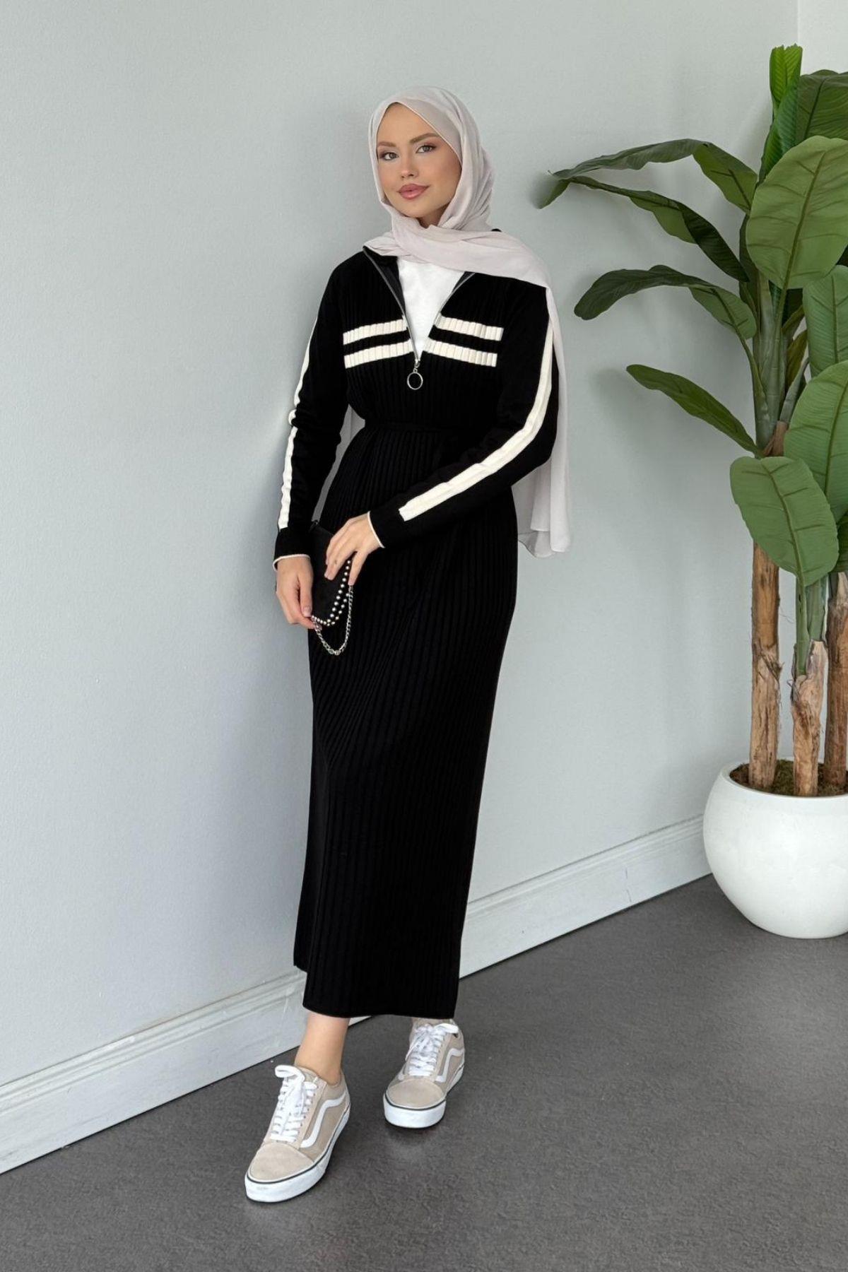 Çizgili Fitili Spor Elbise Siyah (2590)