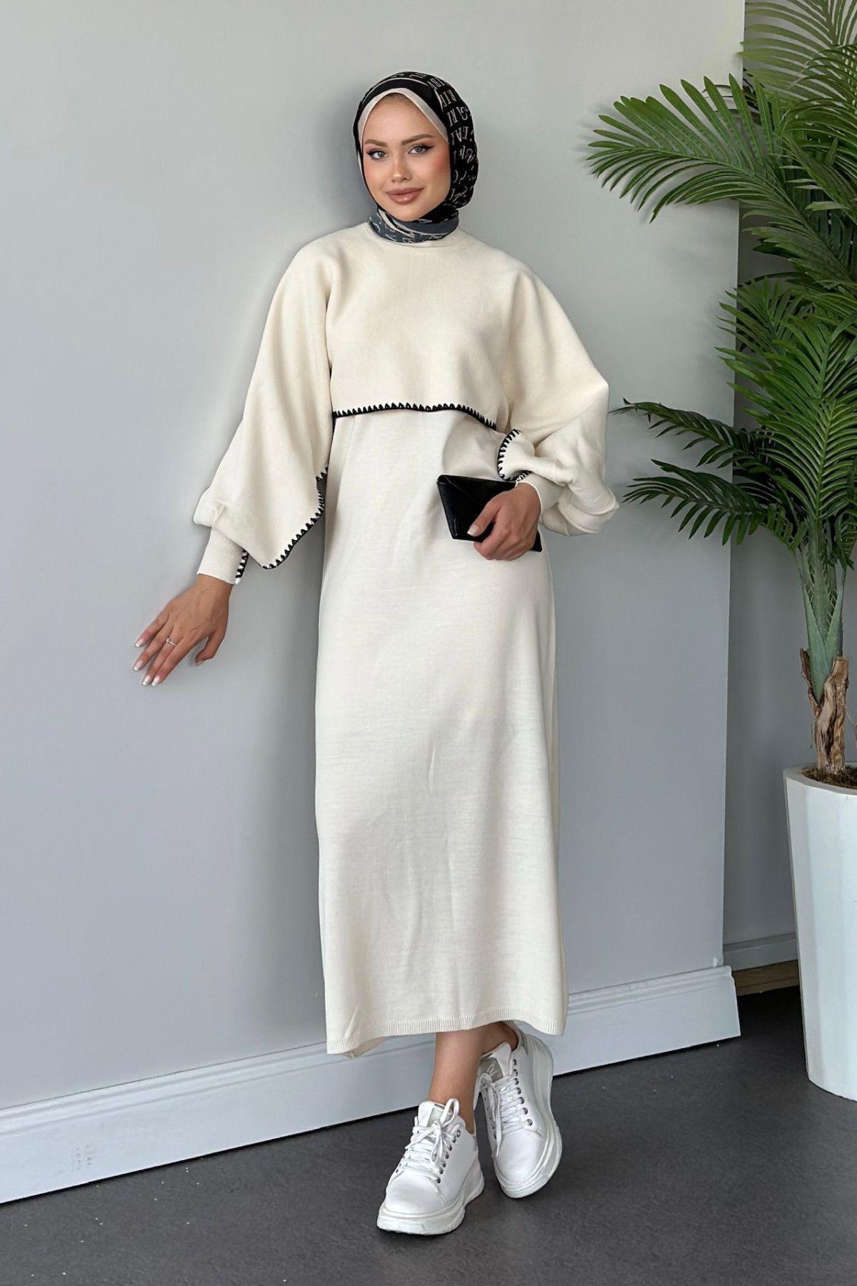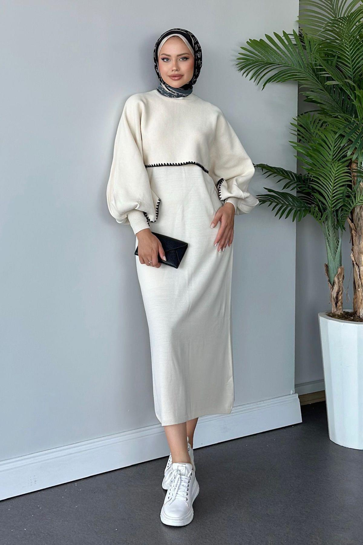 Crop Görünümlü Triko Elbise Ekru (24680)