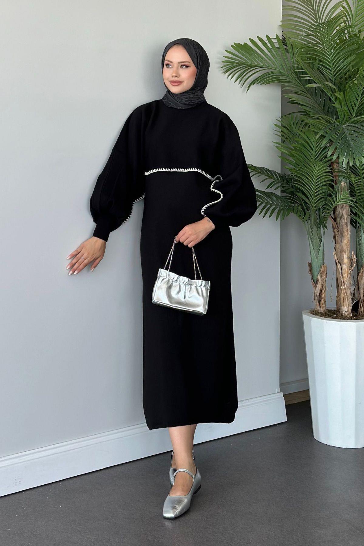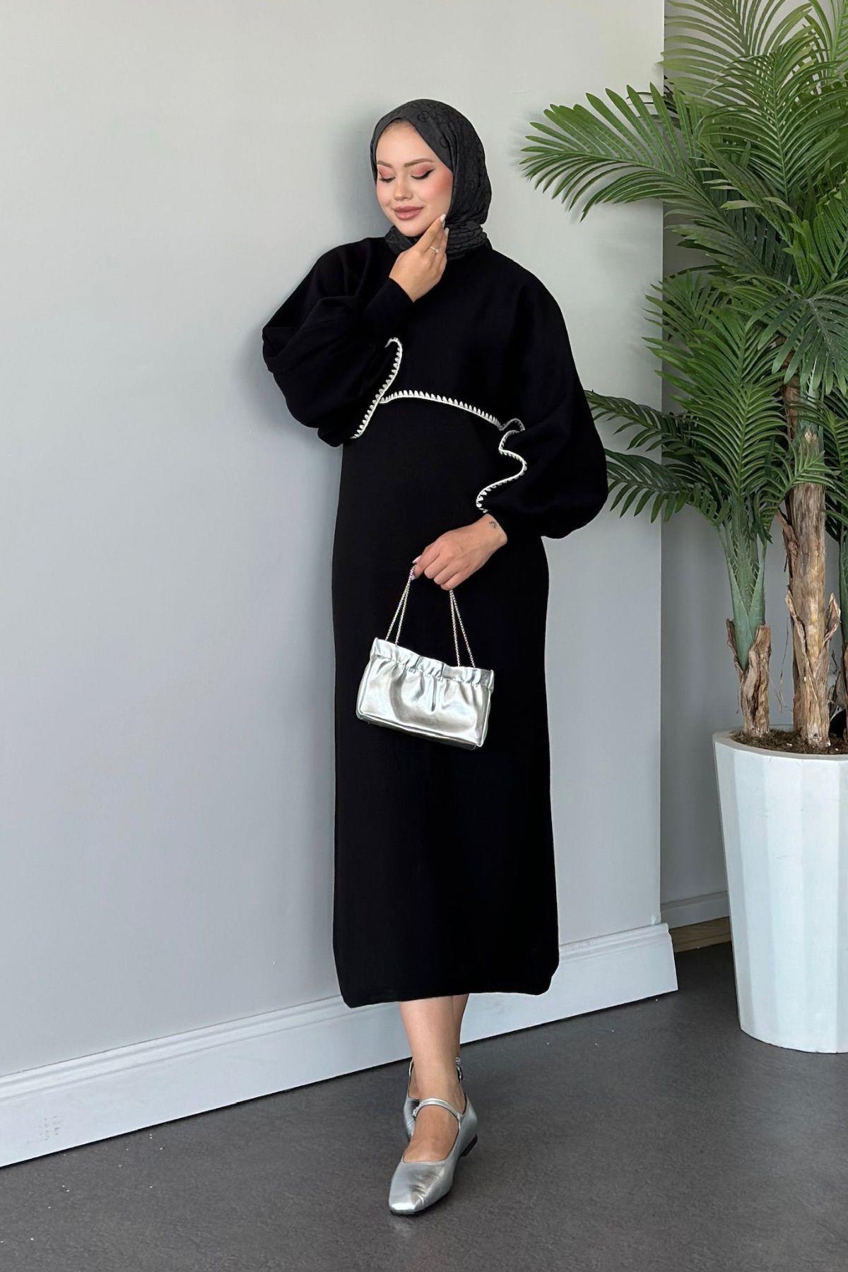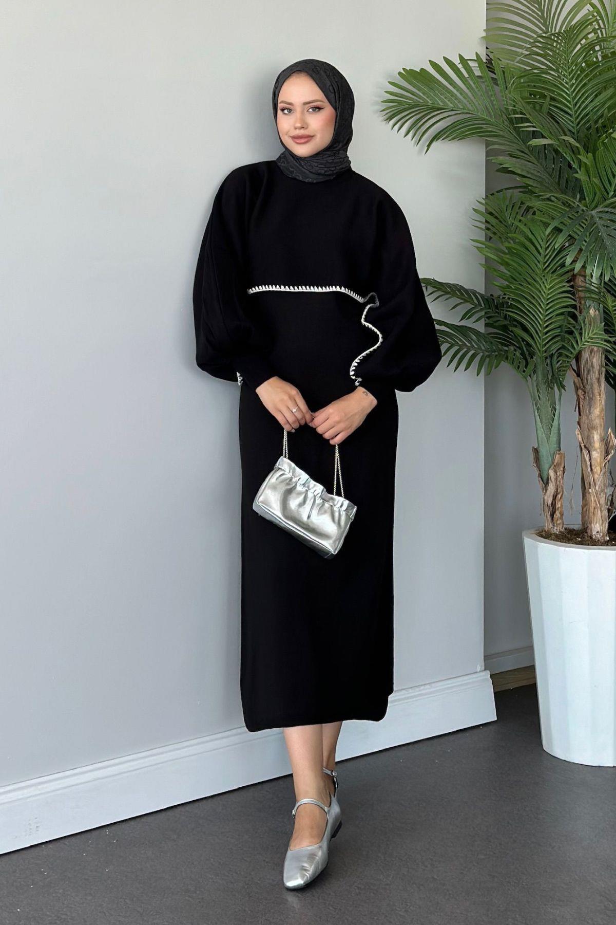 Crop Görünümlü Triko Elbise Siyah (24680)