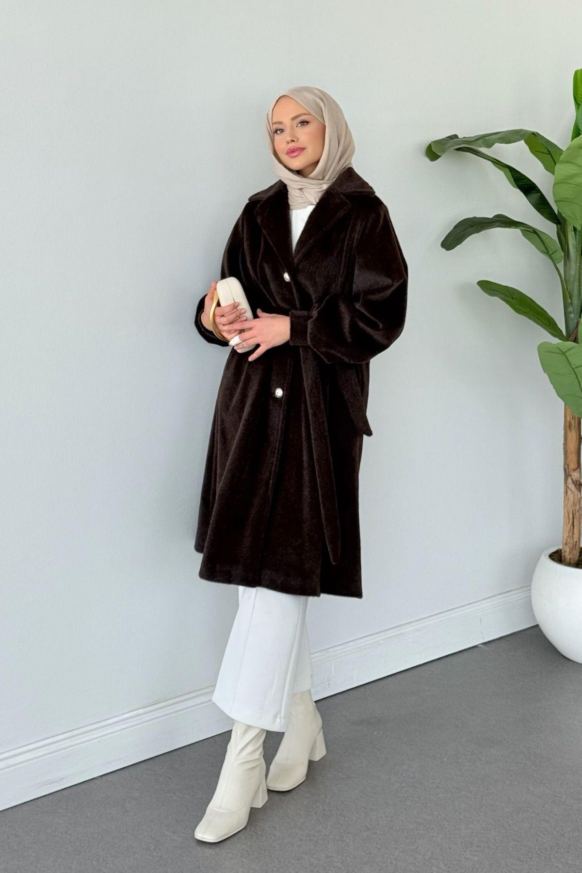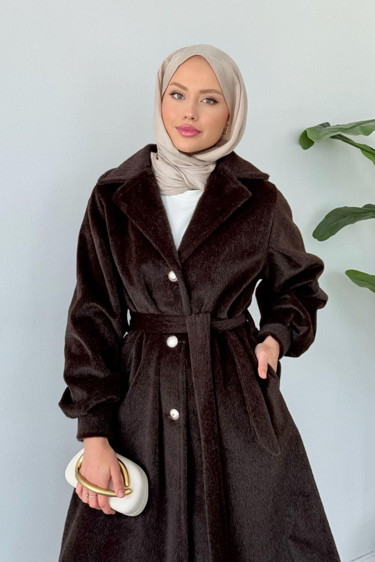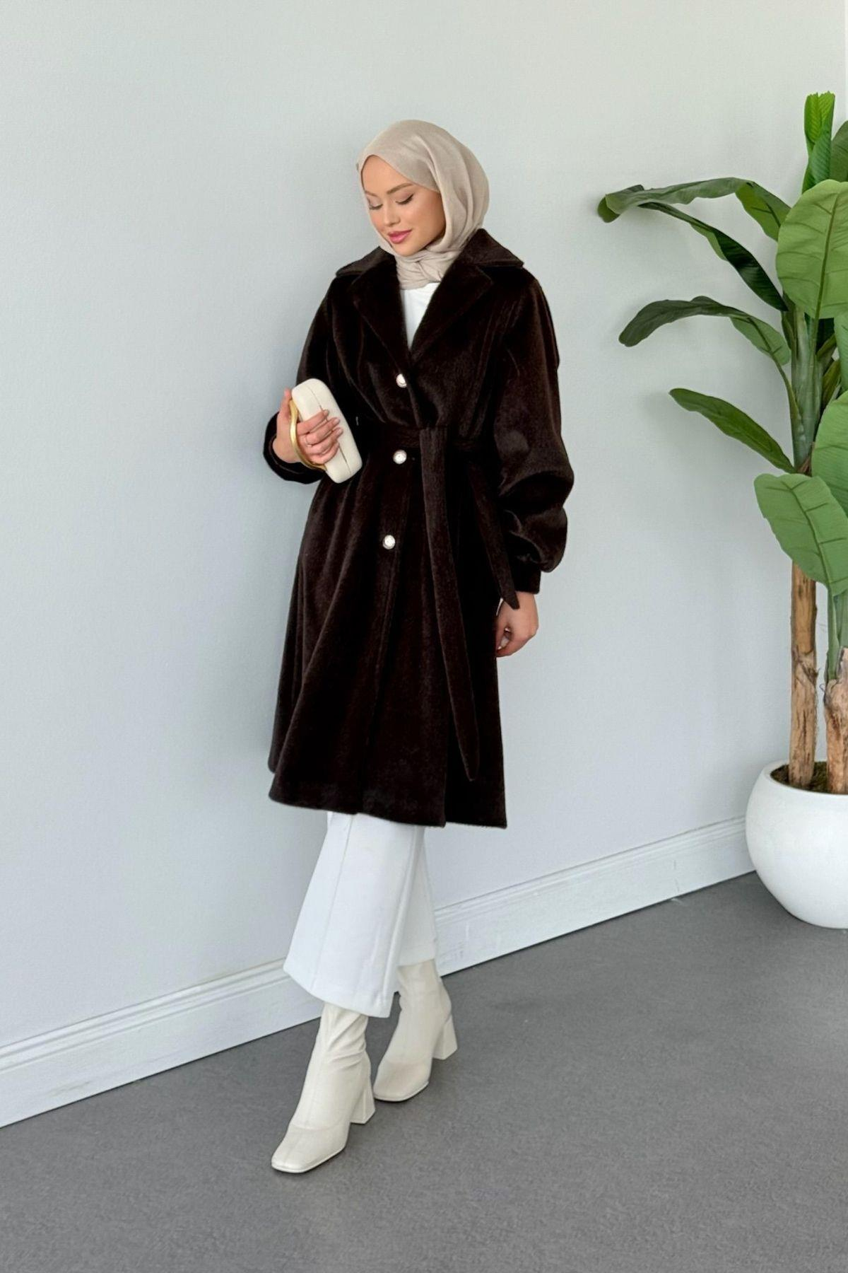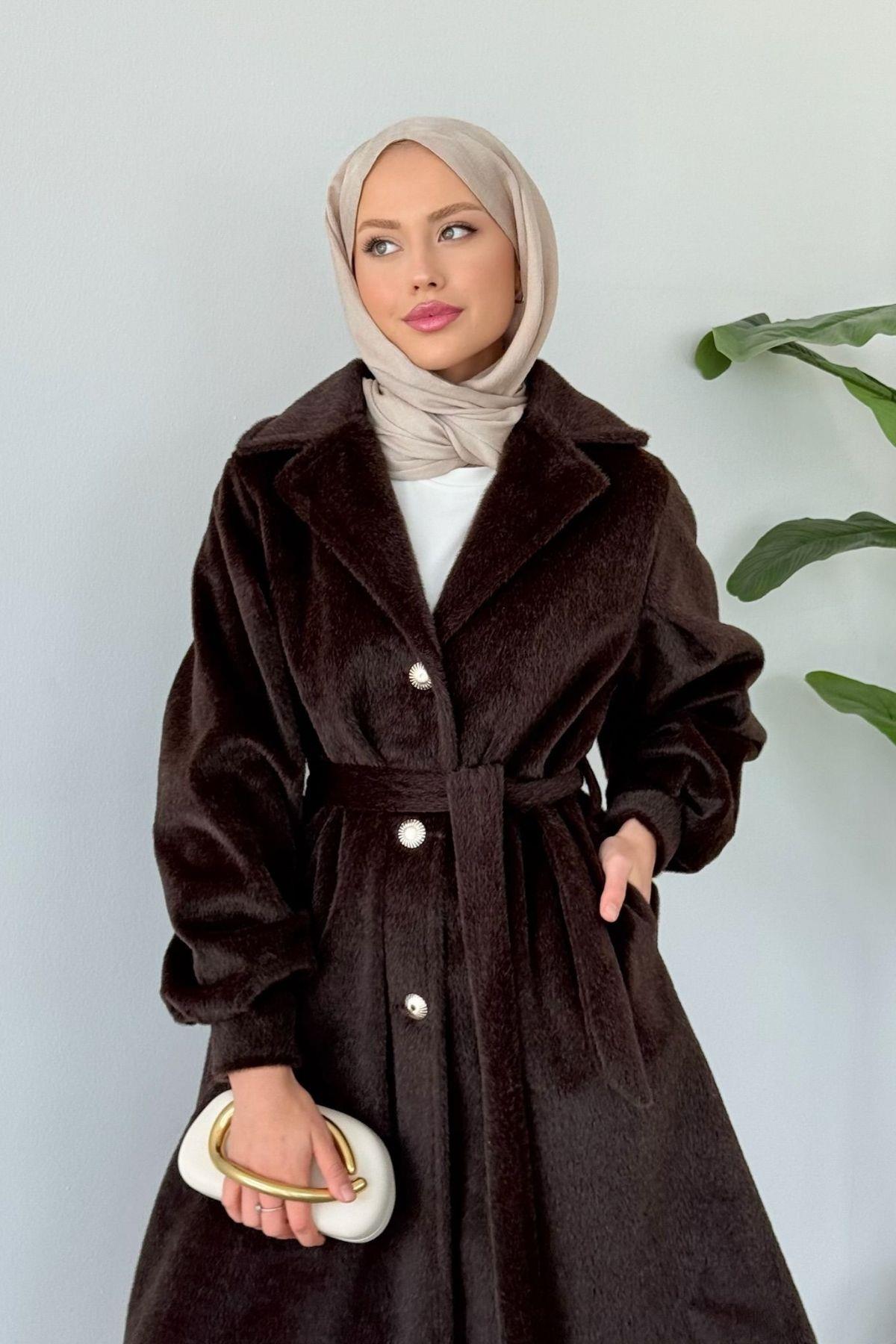 Ürün tay tüyü kumaştır. Ön formu düğme detaylıdır içi astarlıdır. Bir adet kuşağı mevcuttur kol kısmı balon formundadır.
