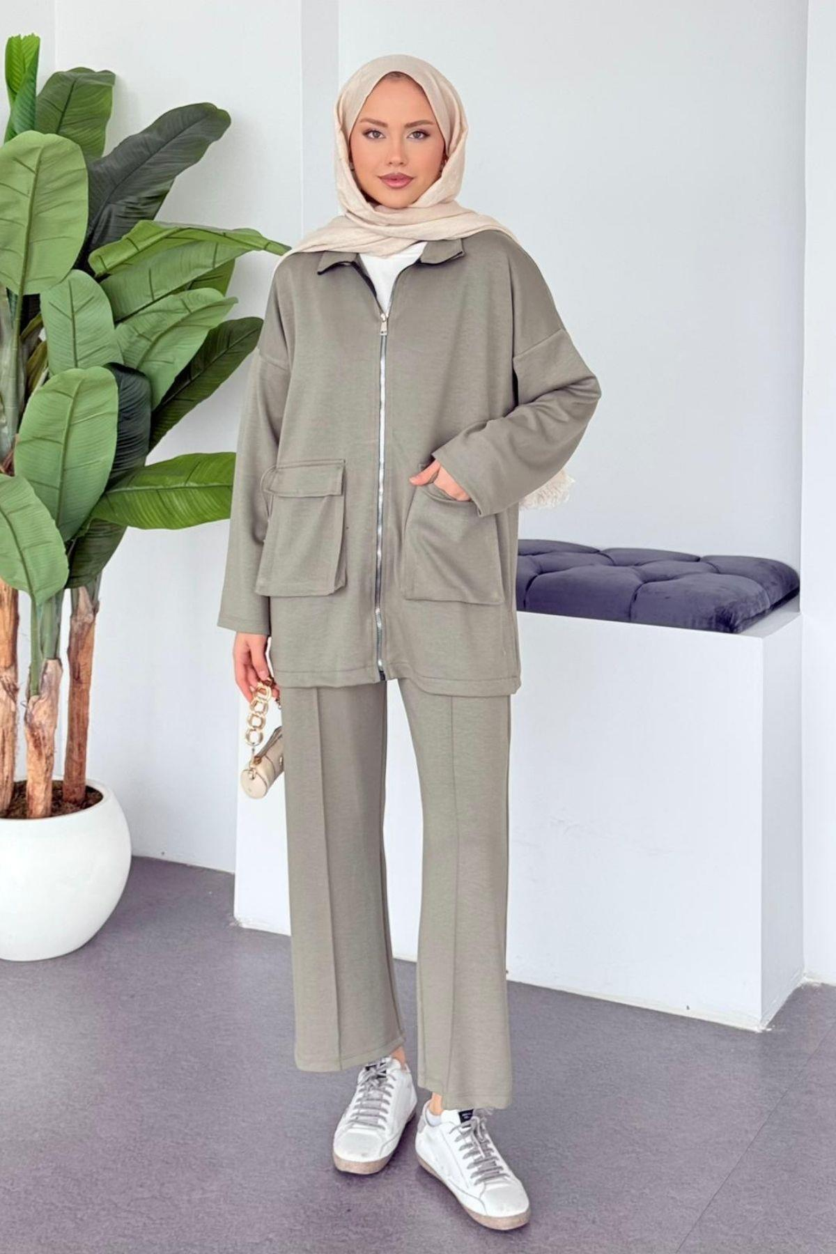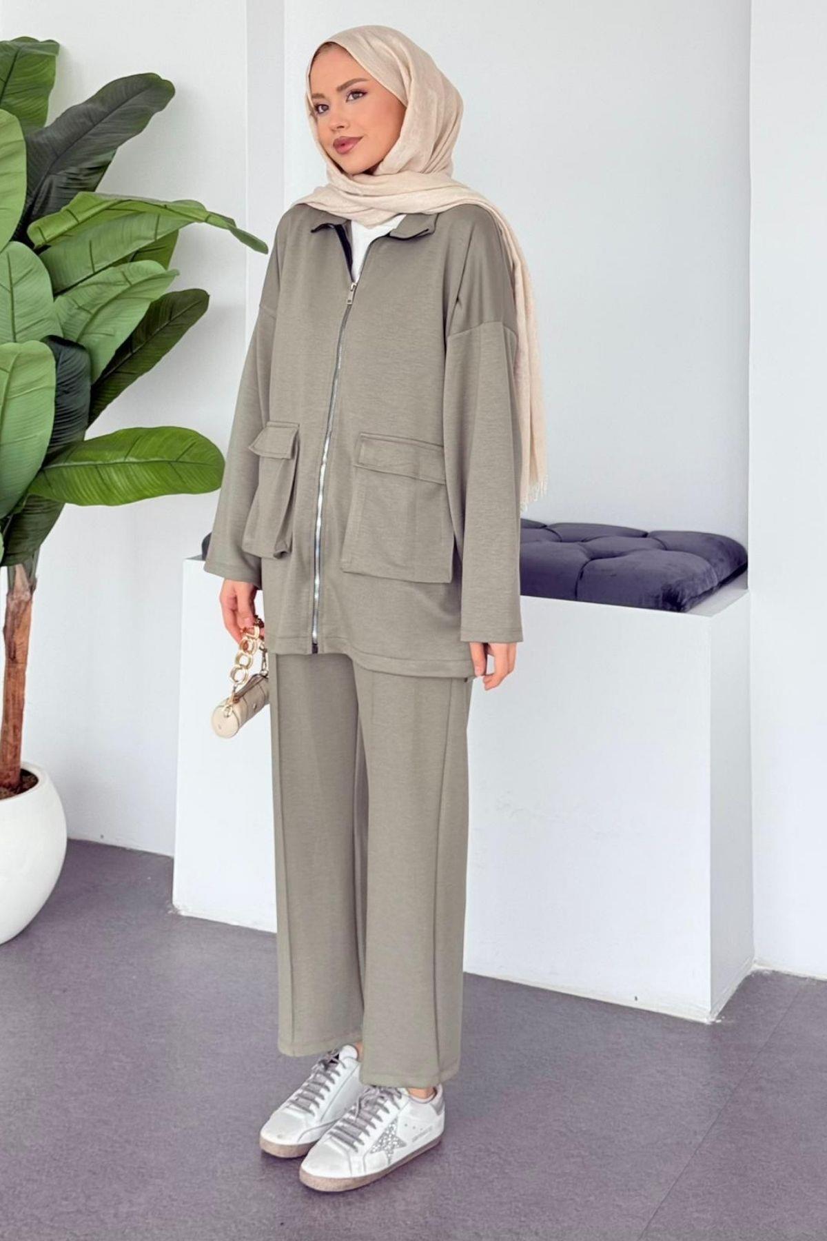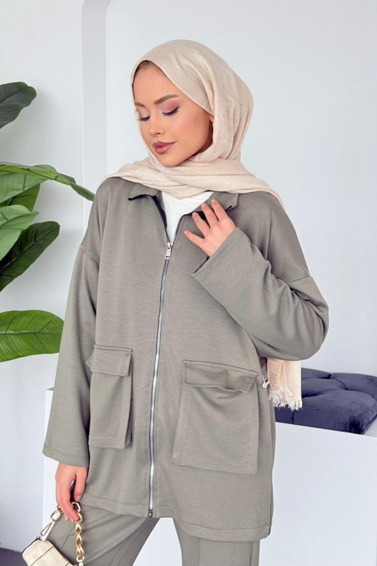 Belden lastik detayı mevcuttur. Önünde cep detayı mevcut.