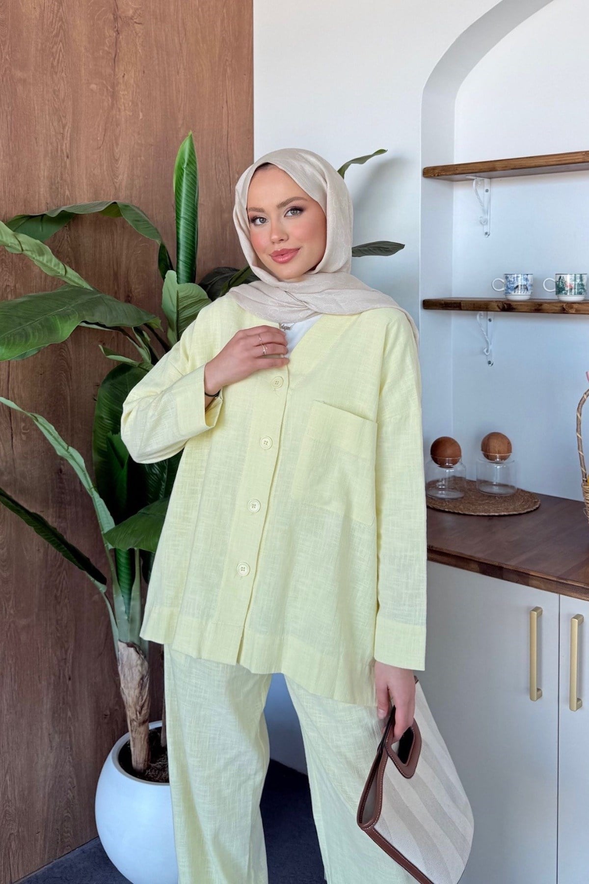 Keten Pantolon Takım Sarı (12541)