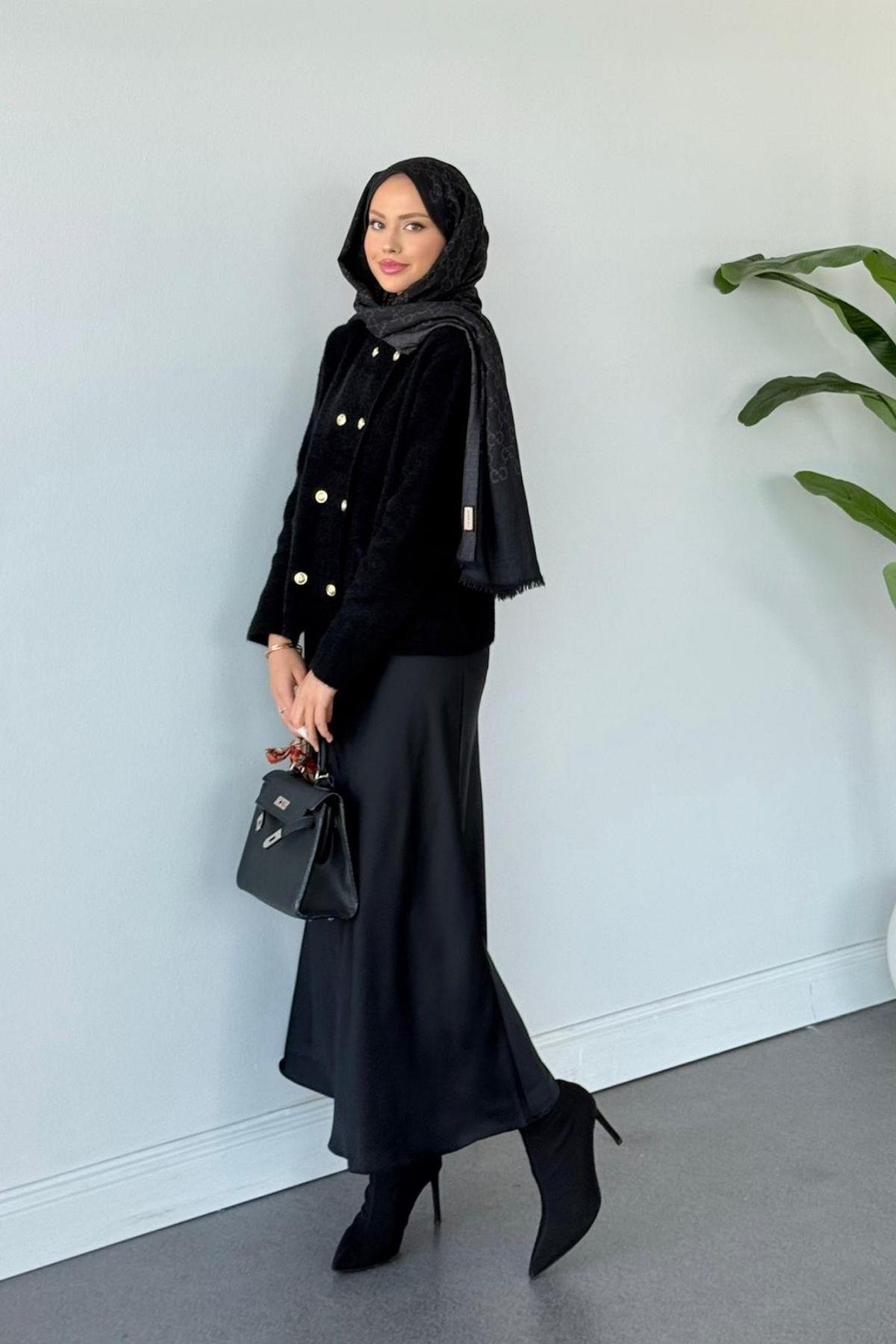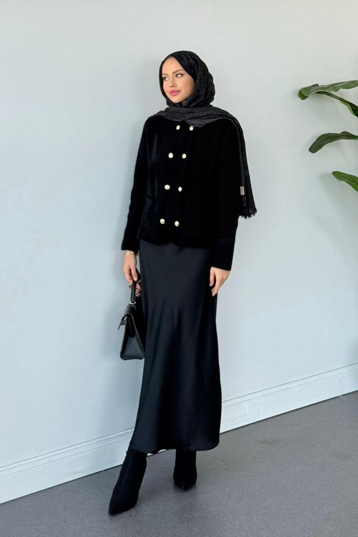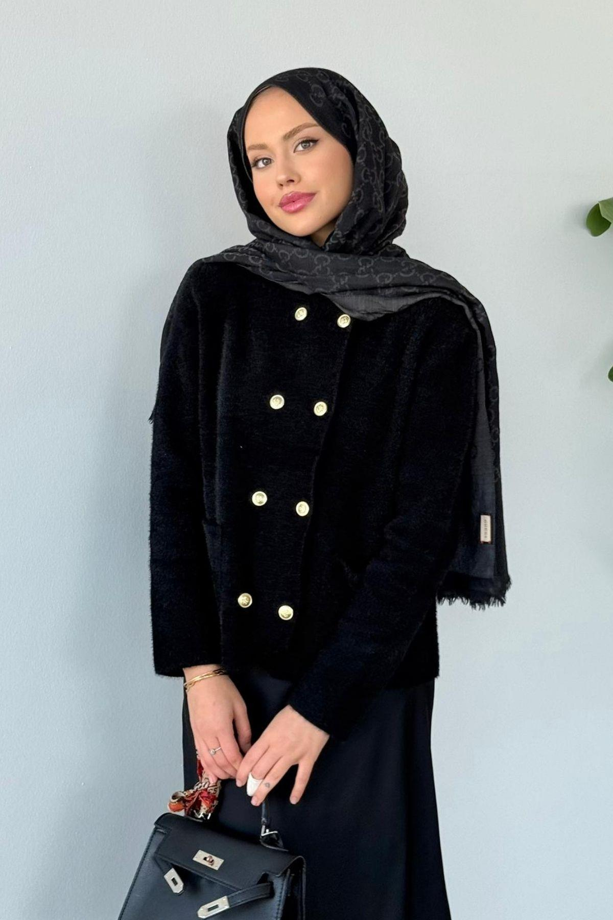 Ürün angora trikodur. Ön formunda düğme ve cep detayı mevcuttur . İç göstermez tiftiklenme yapmaz.