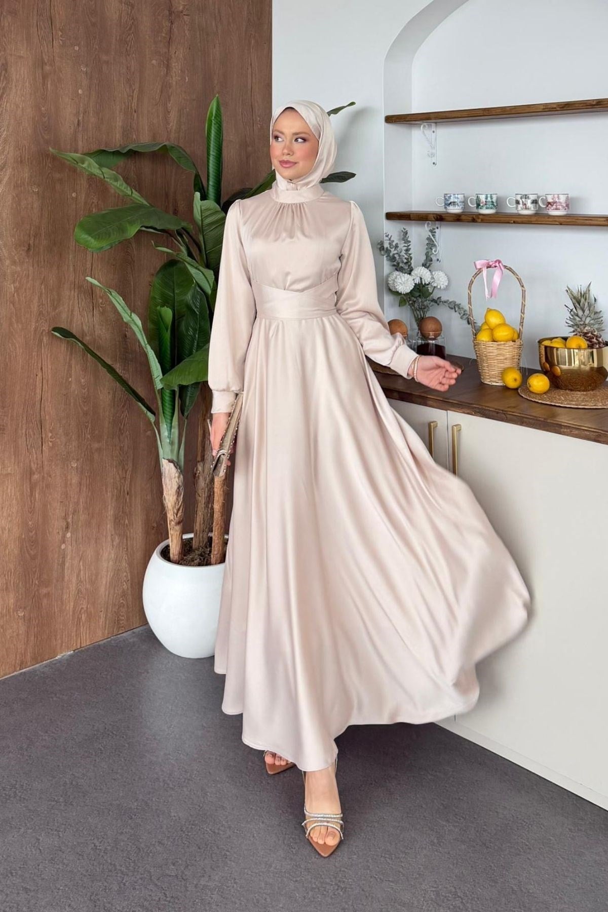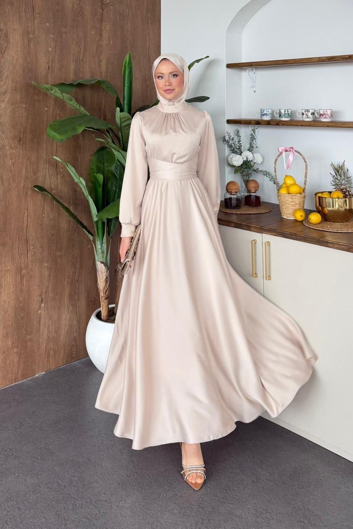 Ruby Grace Çapraz Saten Abiye Krem (6297)