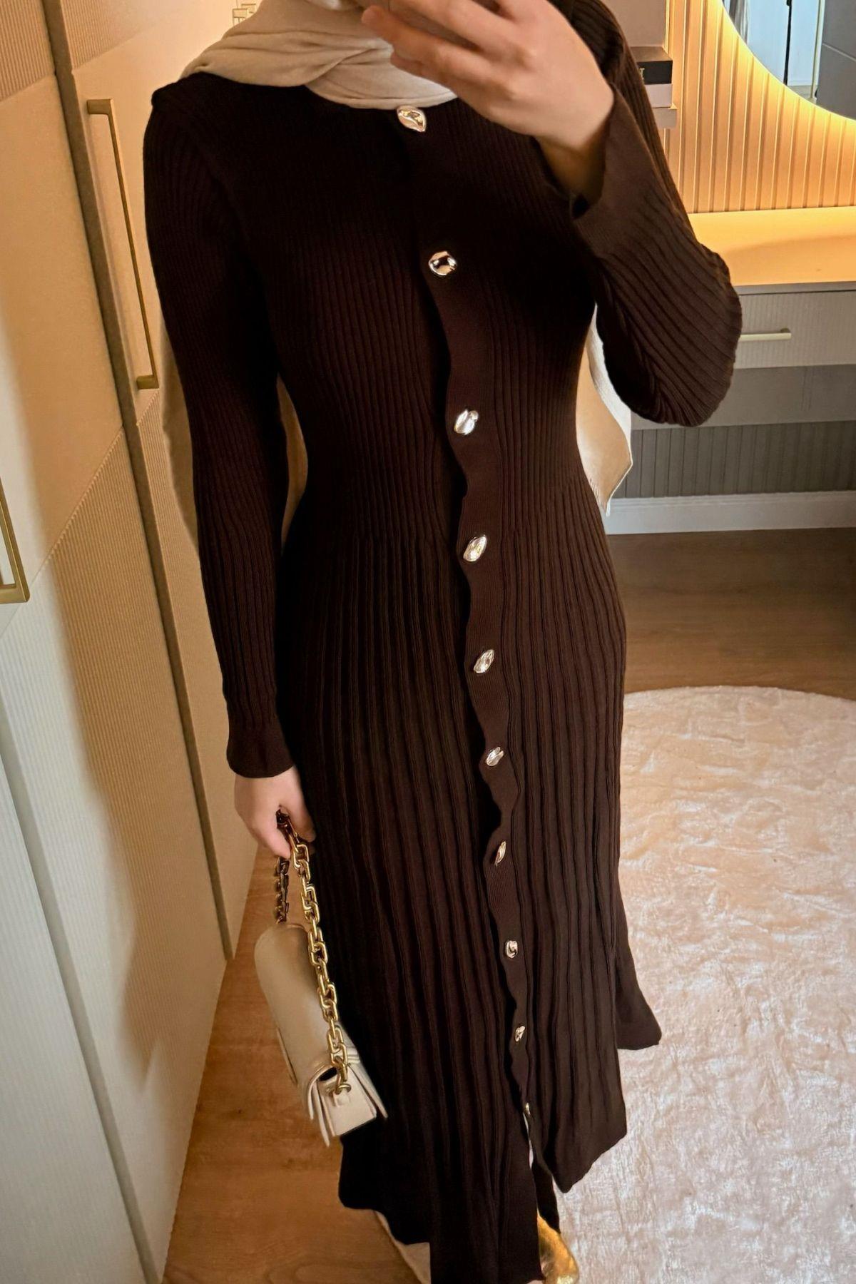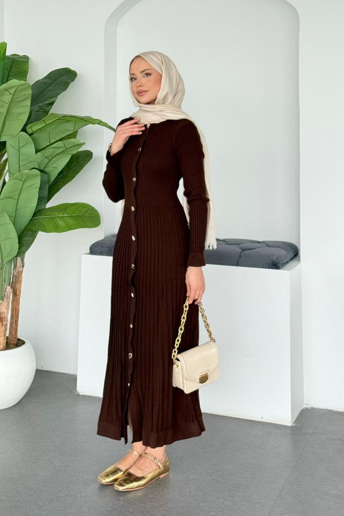 Viyana Fitili Triko Elbise Acıkahve (10201)