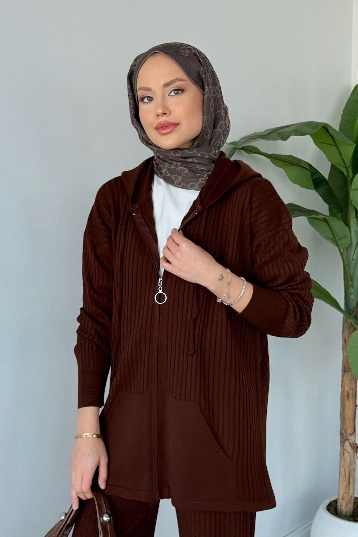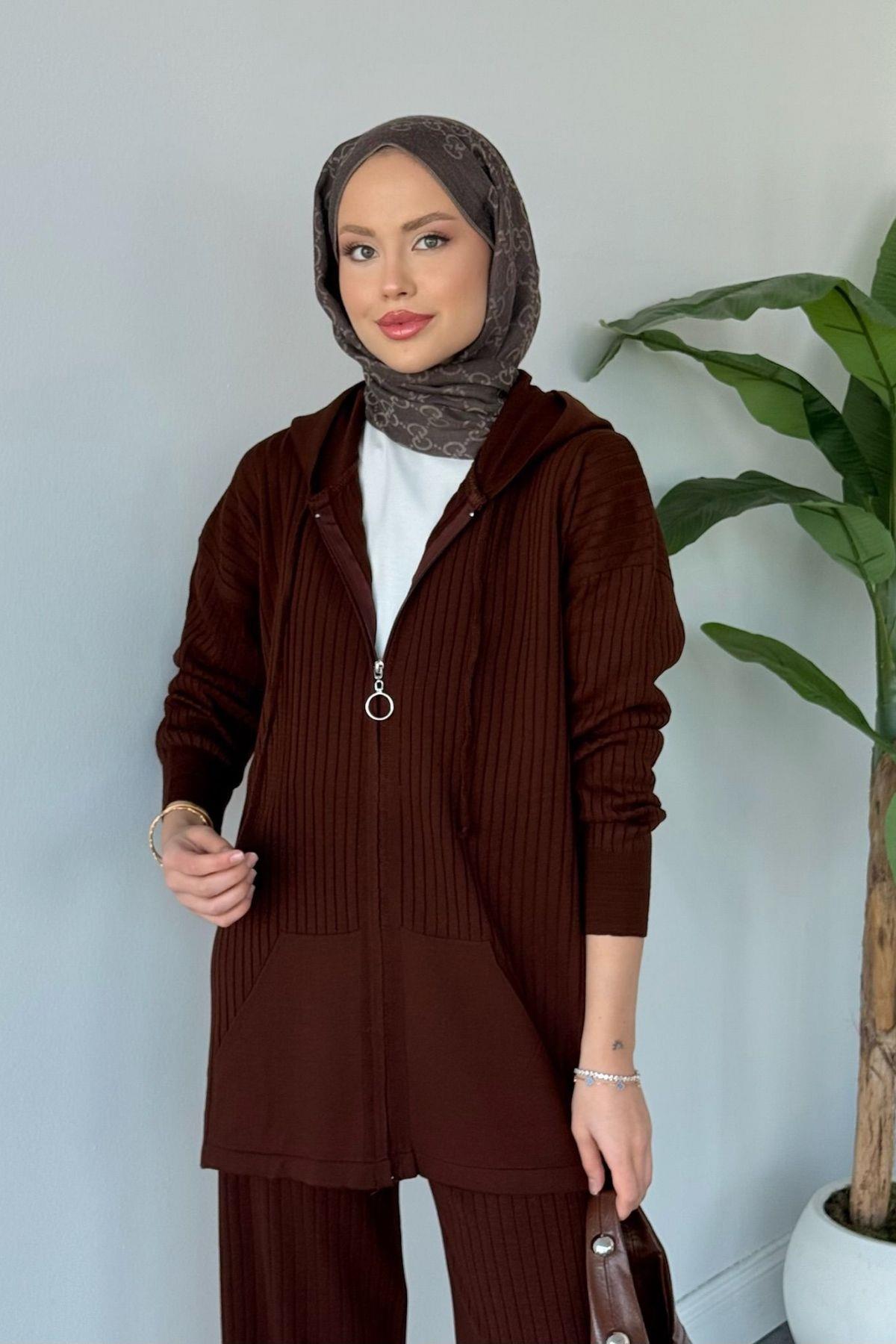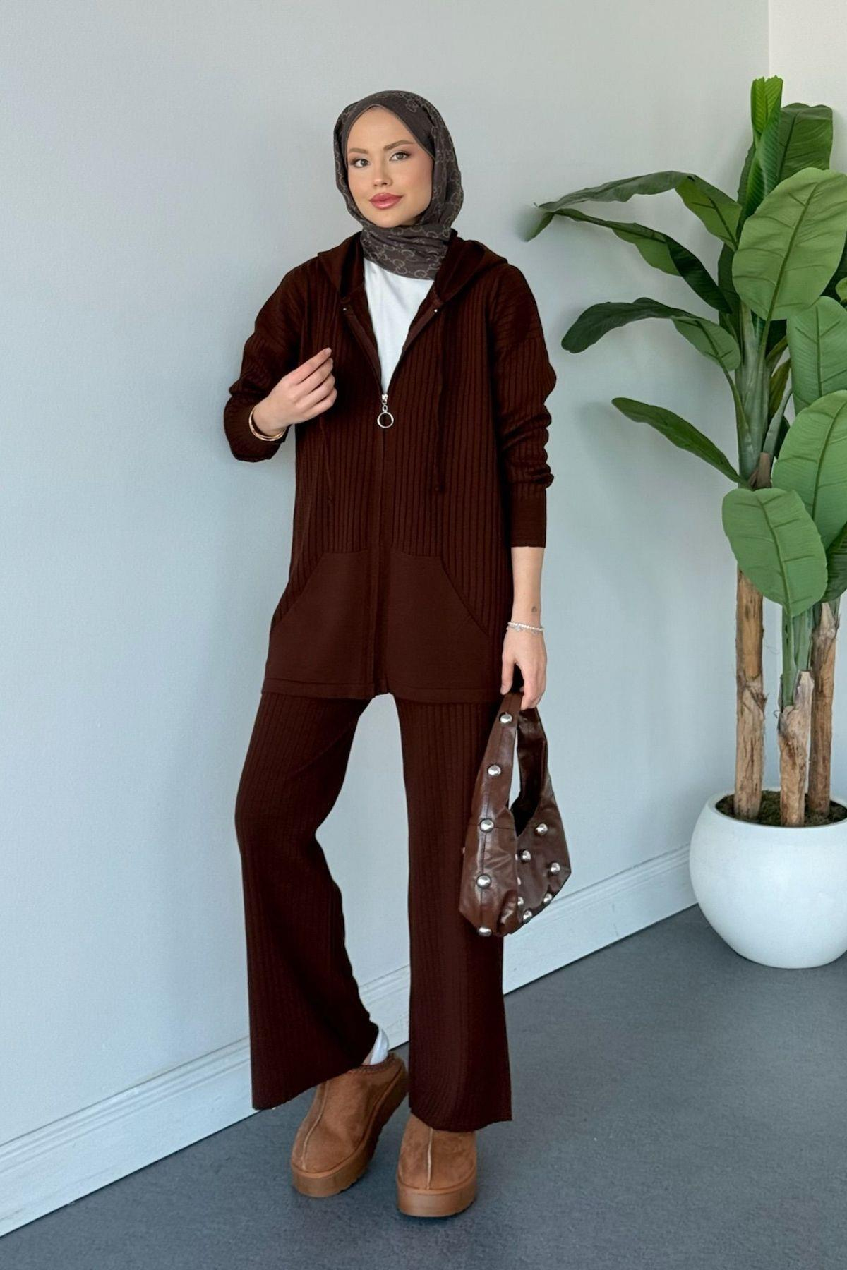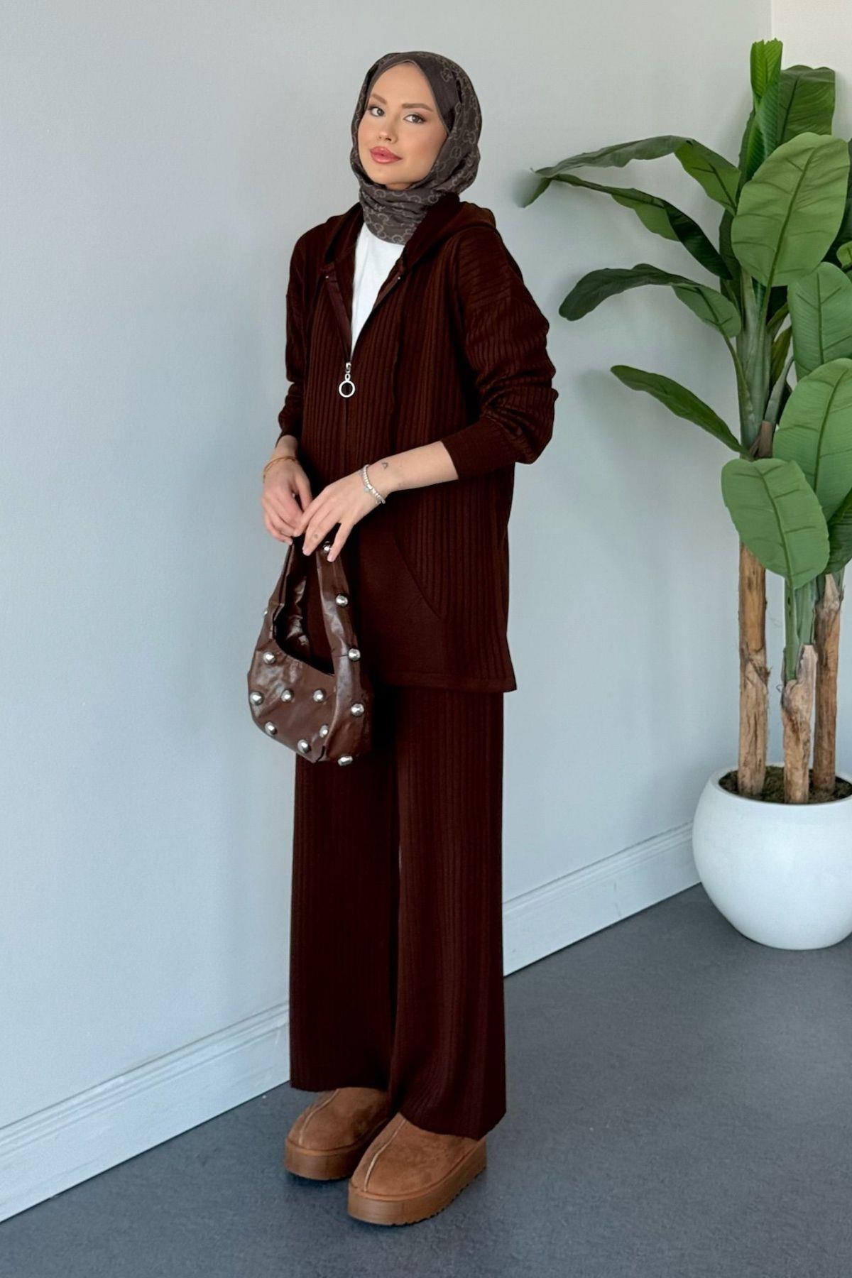 Enji Kapişonlu Fermuarlı Takım Acıkahve (25240)