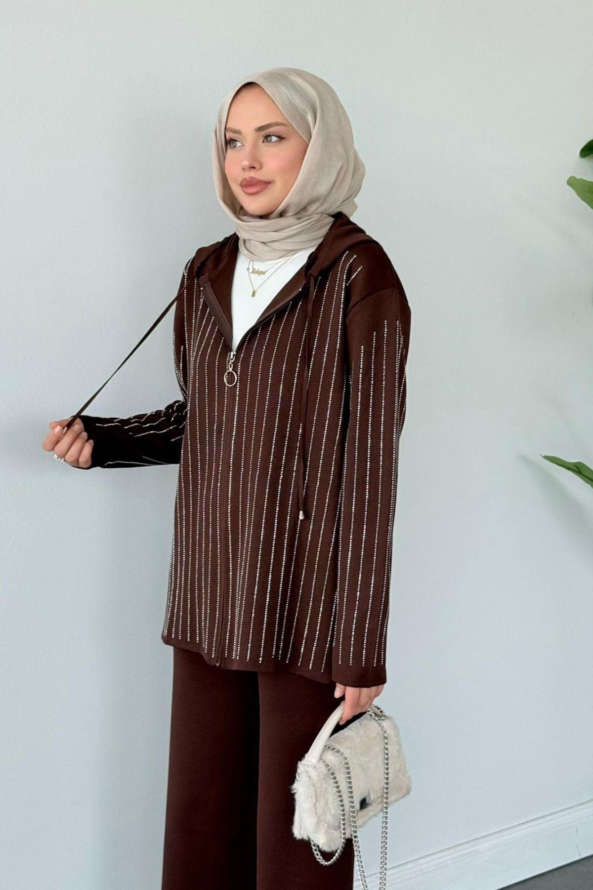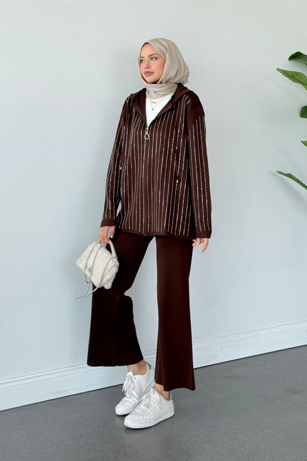ÜRÜN ADI: Eros Taşlı Pantolonu Takım Acıkahve