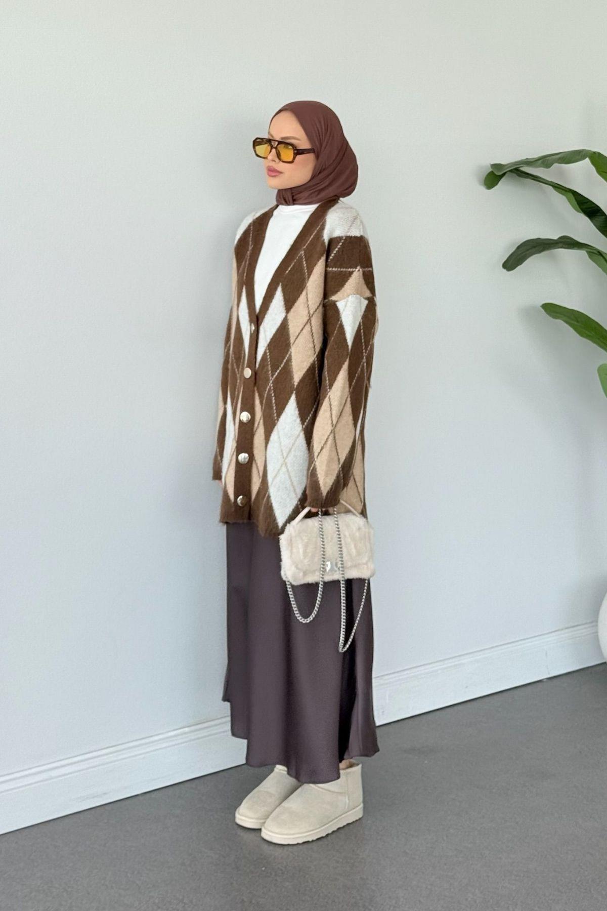 Desenli triko hırka, iç göstermeyen yapısı ve dökülme / tiftiklenme yapmayan dokusuyla uzun süre düzenli bir görünüm sunar. Standart beden yapısı günlük kombinlerde esnek kullanım sağlar. Katmanlı mevsim geçişi stilleri için pratik ve şık bir parça.