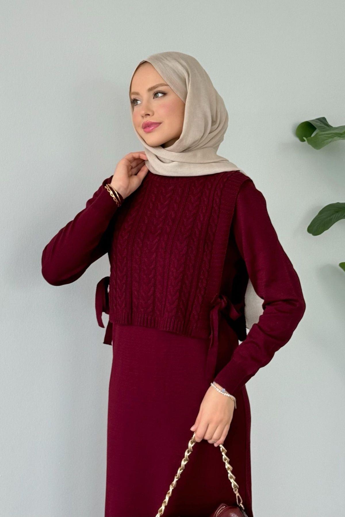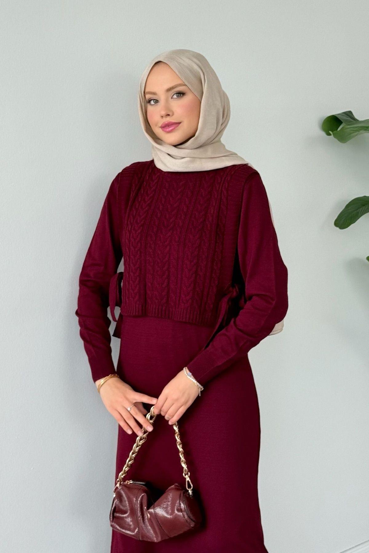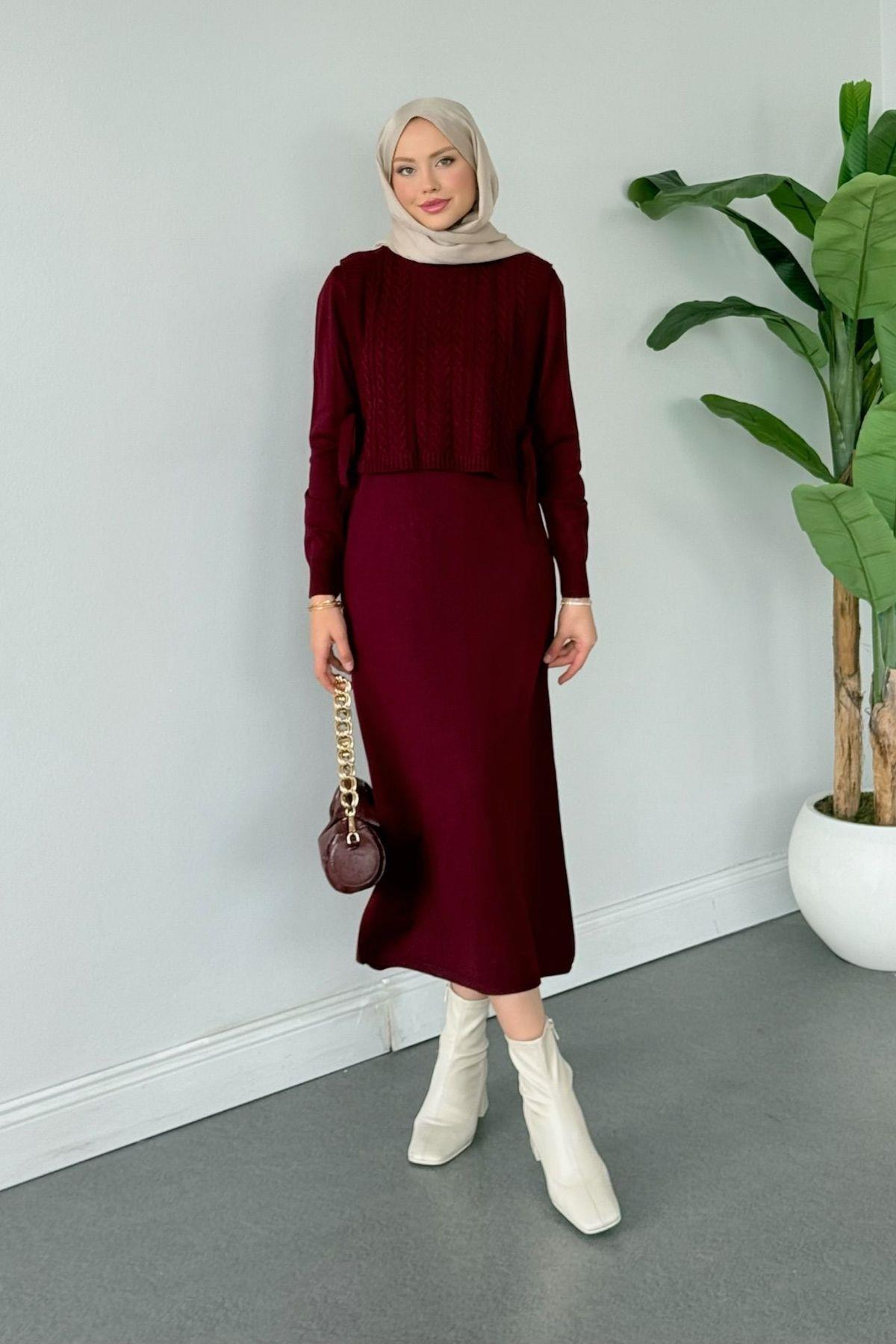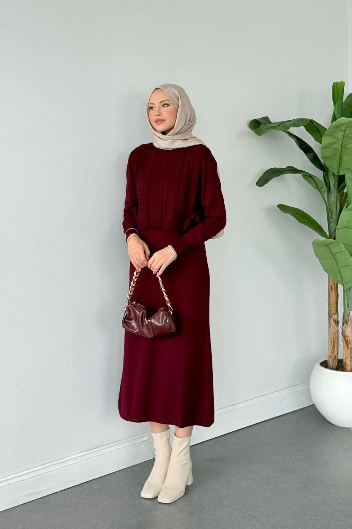 Gülben Crop Detaylı Elbise Bordo (25220)