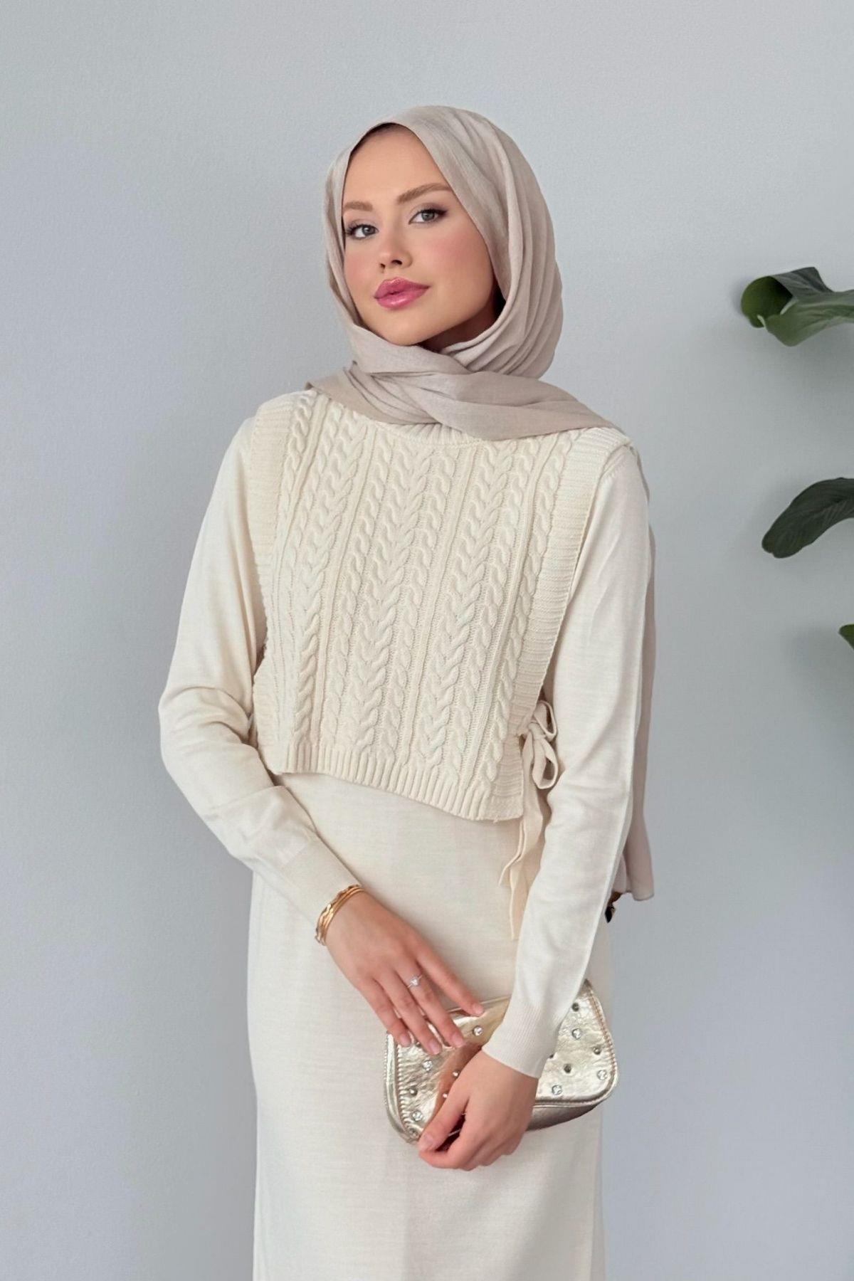 EDİTÖR YORUMU Gülben Crop Detaylı Elbise, örgü detaylı crop ve ince triko kumaşı ile modern ve zarif bir görünüm sunar. Yan kuşakları ile isteğe göre ayarlanabilir ve konforlu bir kullanım sağlar.