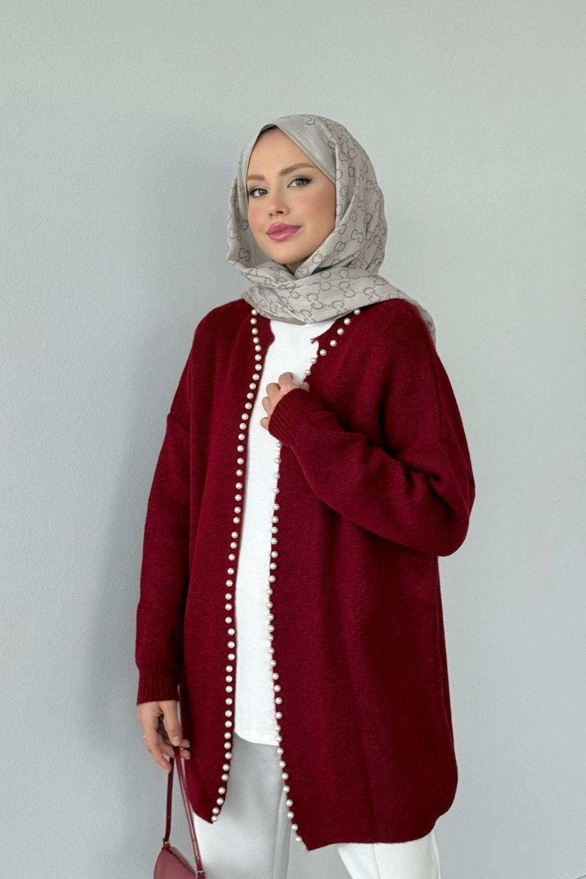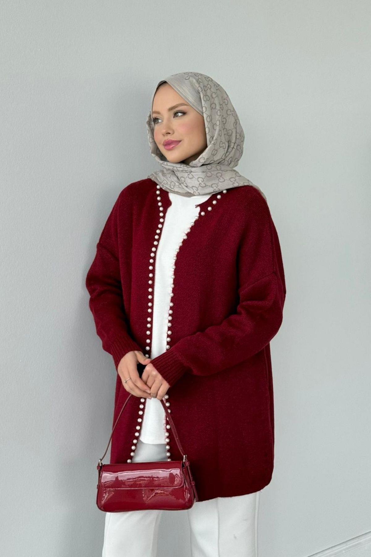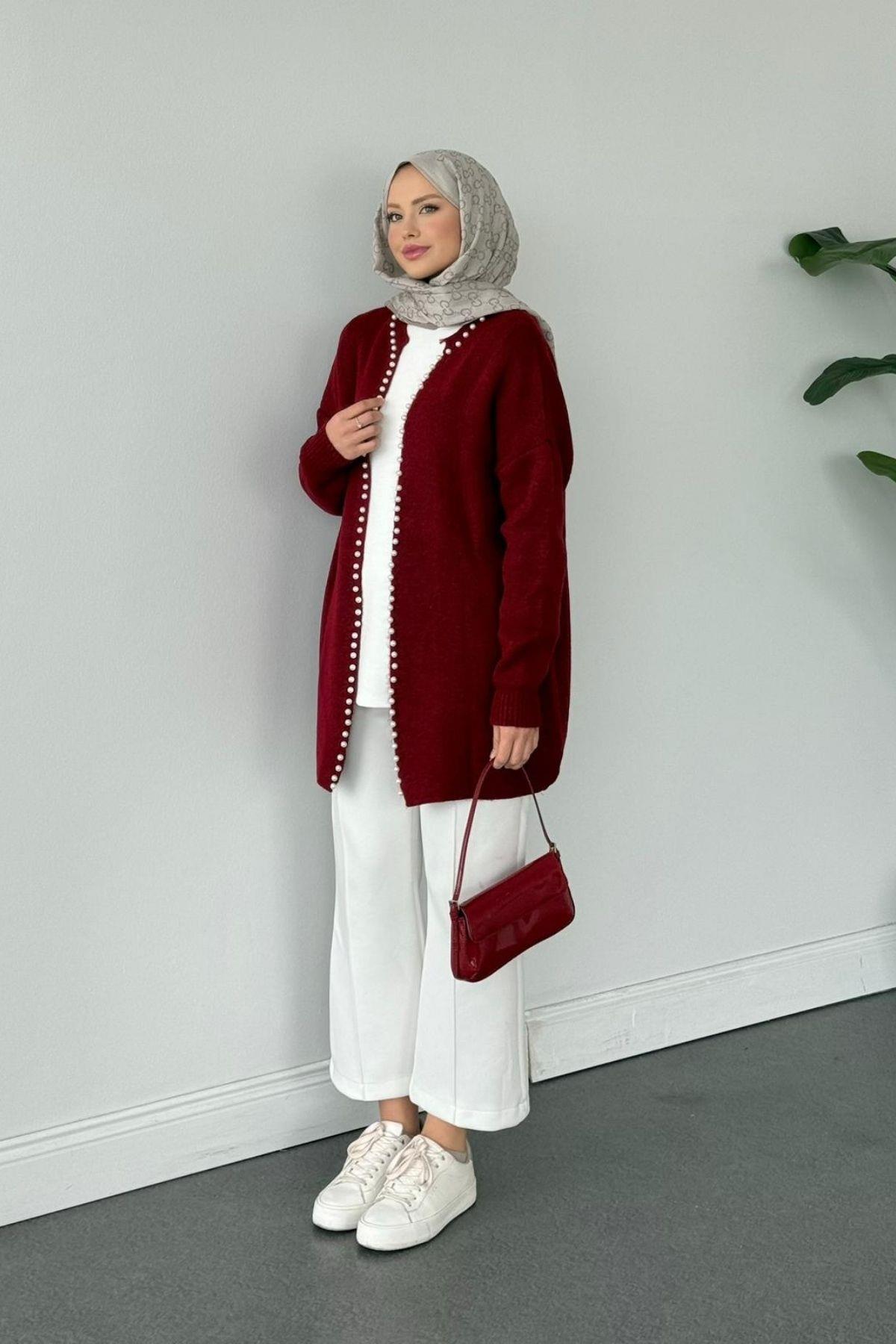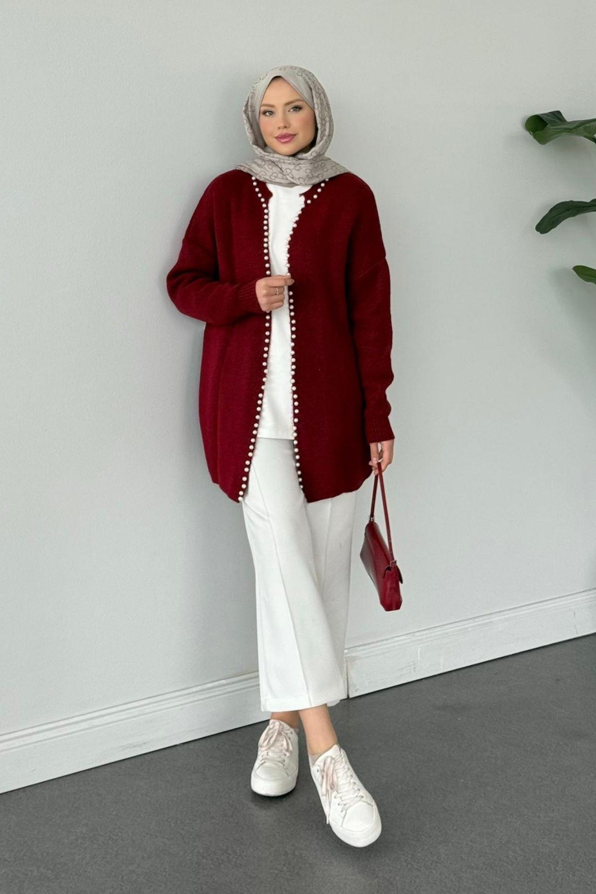 İnci Detaylı Hırka, sade triko dokusu üzerine işlenen inci detaylarıyla zarif bir şıklık sunar. Formunu kaybetmeyen yapısı ve iç göstermeyen dokusu ile dolabınızda hem işlevsel hem de stil sahibi bir tamamlayıcı parça olacaktır.
