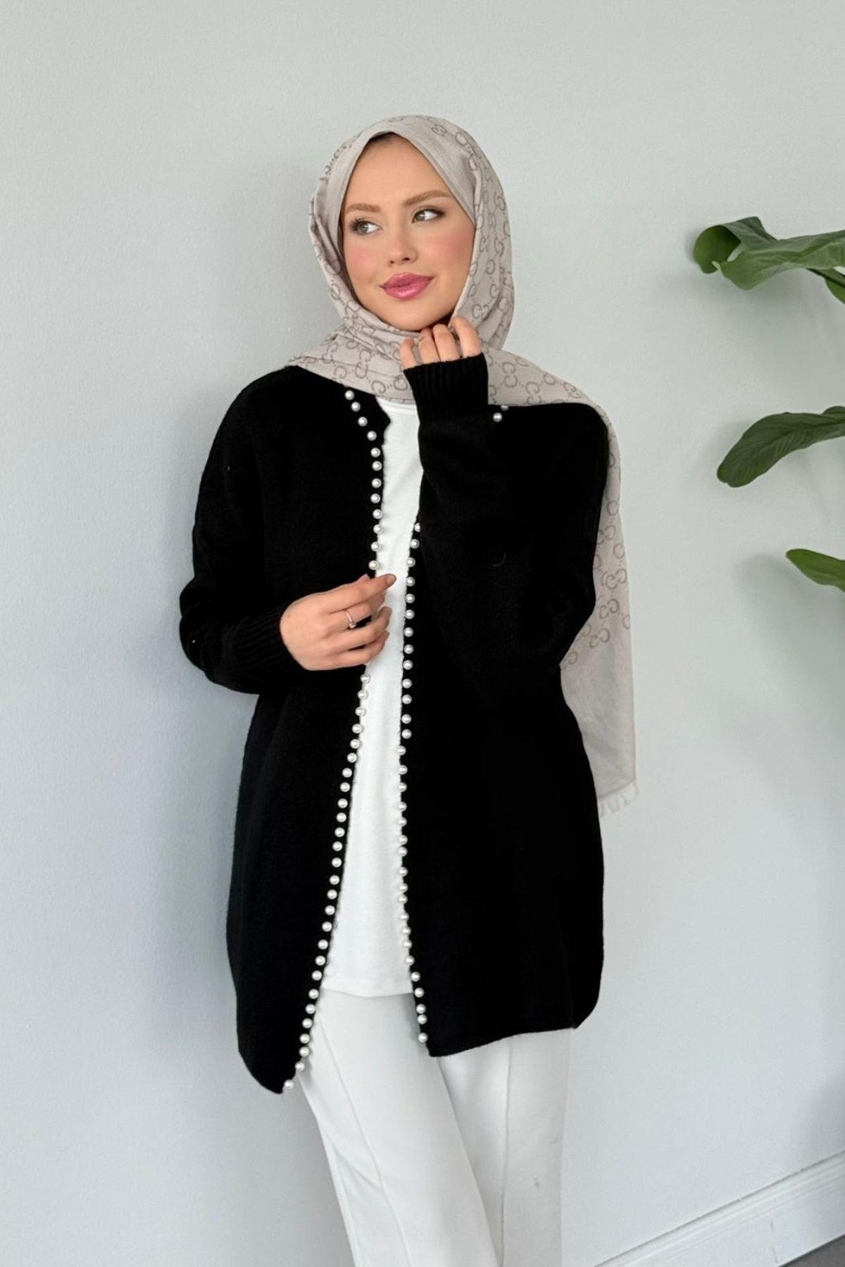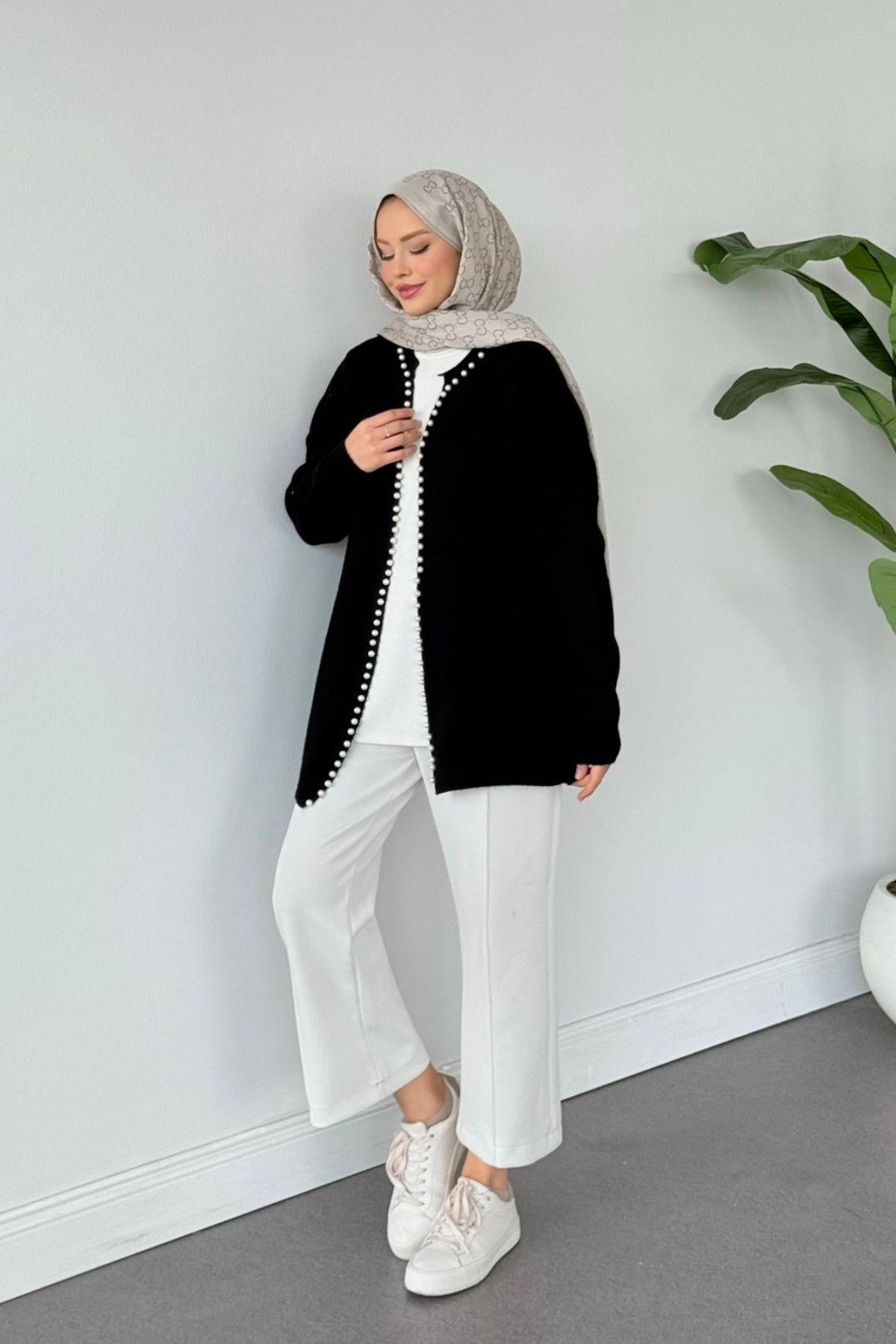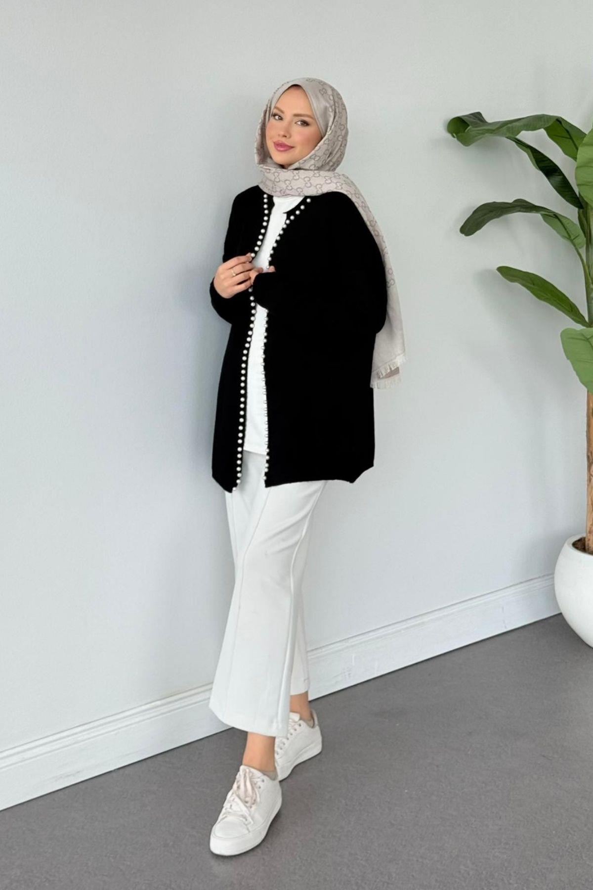 İnci Detaylı Hırka Siyah (25190)