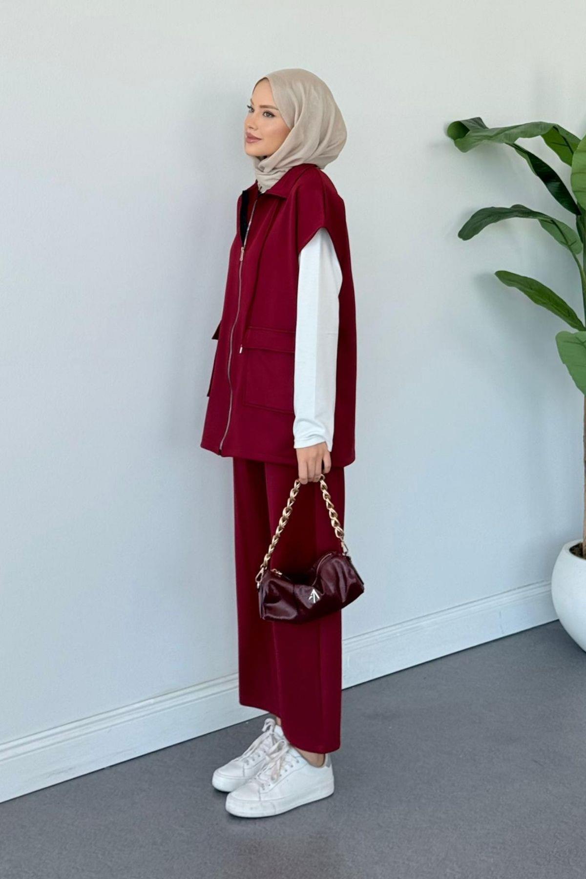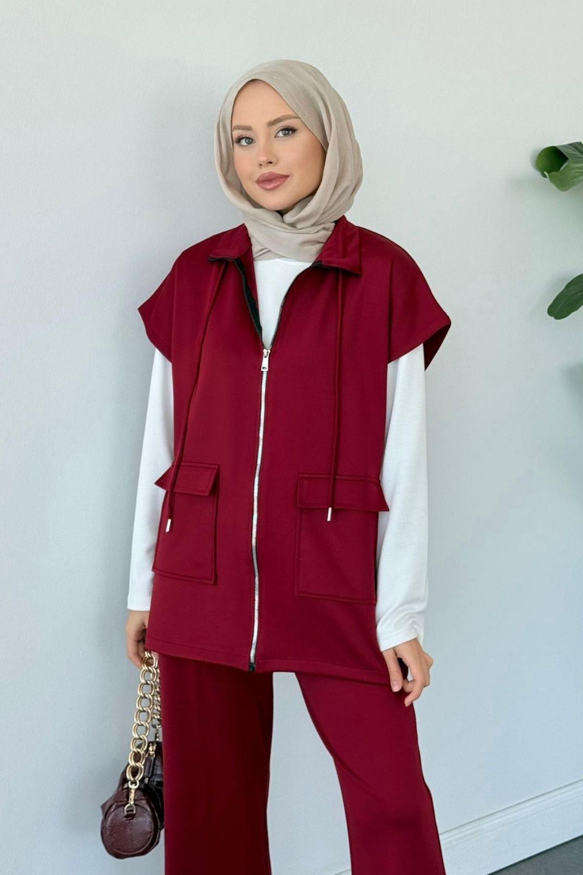 EDİTÖR YORUMU Laura Scuba Yelekli Takım, modern scuba kumaşı ile hem şık hem de konforlu bir kullanım sunar. Hem üstte hem pantolonda bulunan cep detayları fonksiyonellik kazandırır.