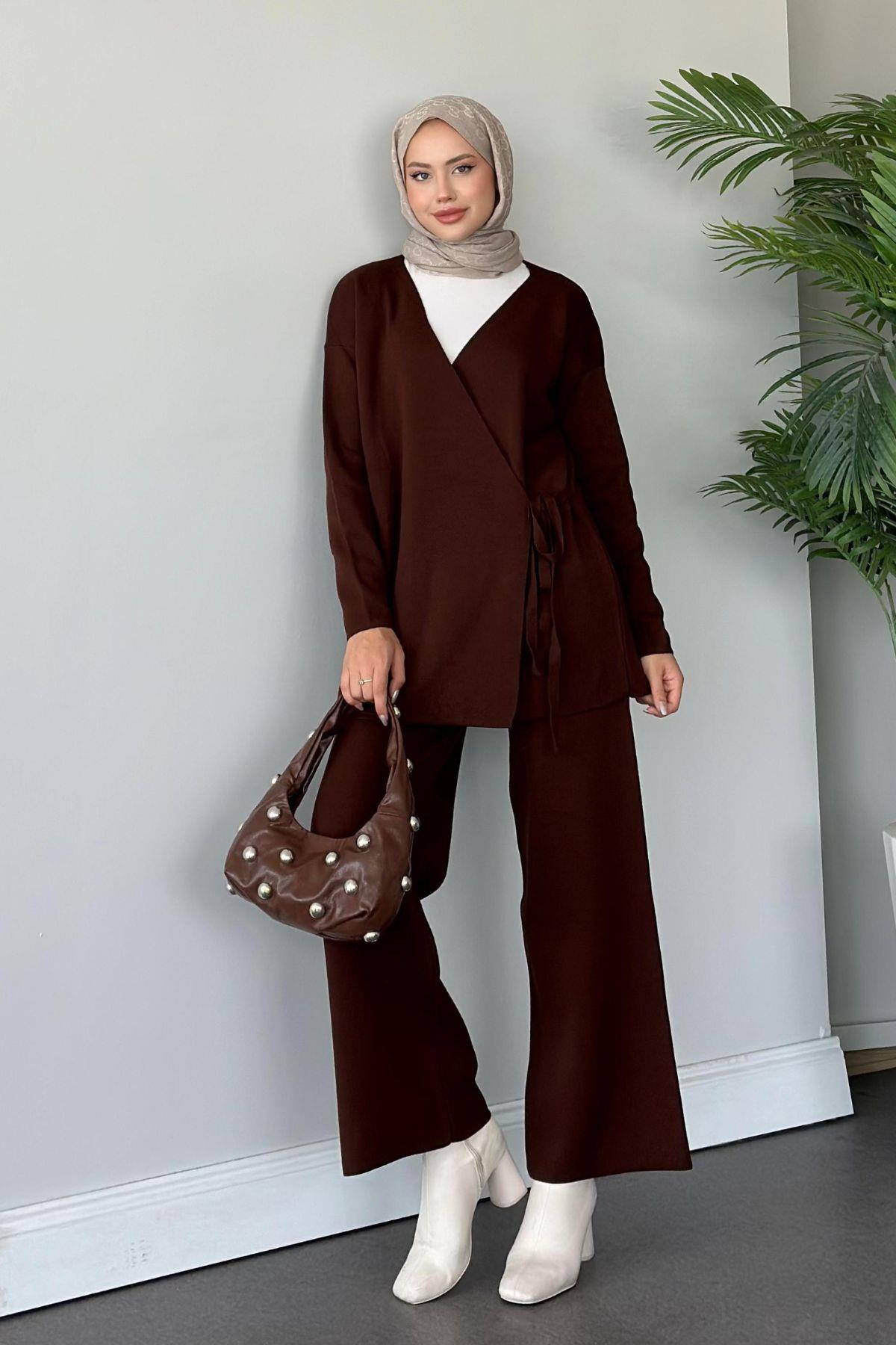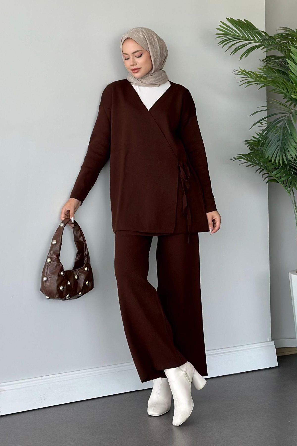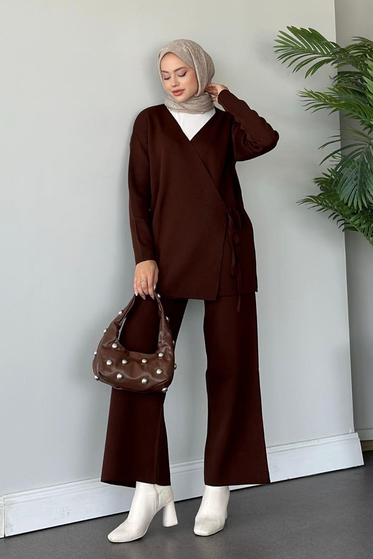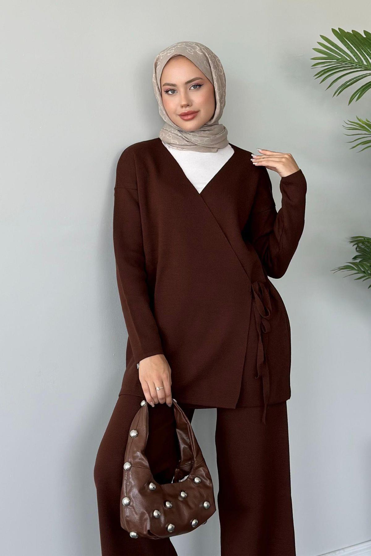 Maça İpli Triko Takım, önden bağlama detayı ve rahat kesimiyle hem günlük hem de özel davetlerde şık ve konforlu bir seçenek sunar. Yumuşak ve esnek triko kumaşı ile vücudu sarar, sıcak tutar ve her kullanımda şıklığınızı tamamlar.