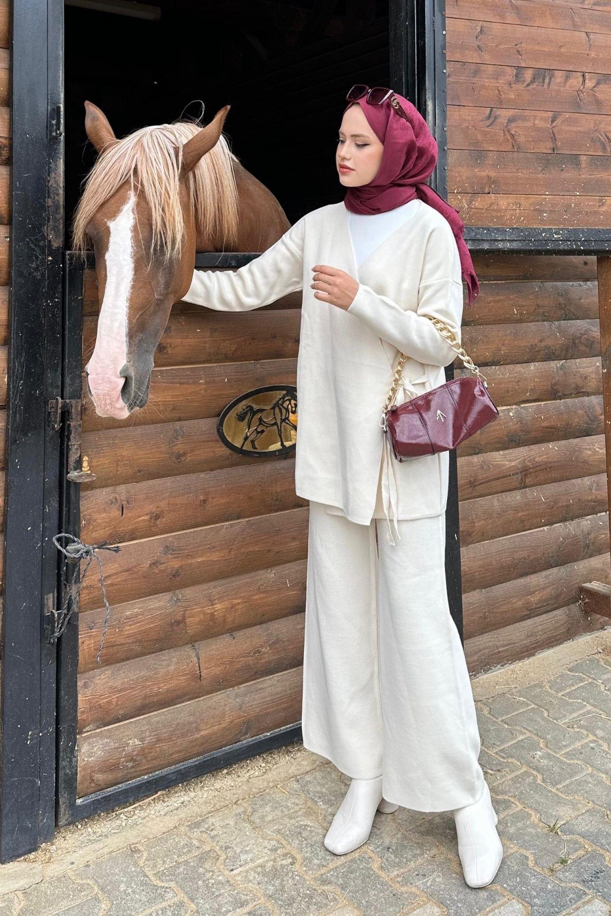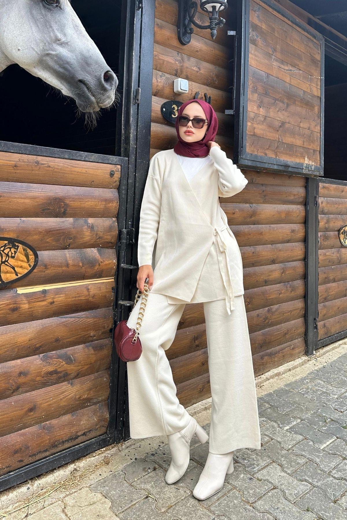 Maça İpli Triko Takım, önden bağlama detayı ve rahat kesimiyle hem günlük hem de özel davetlerde şık ve konforlu bir seçenek sunar. Yumuşak ve esnek triko kumaşı ile vücudu sarar, sıcak tutar ve her kullanımda şıklığınızı tamamlar.