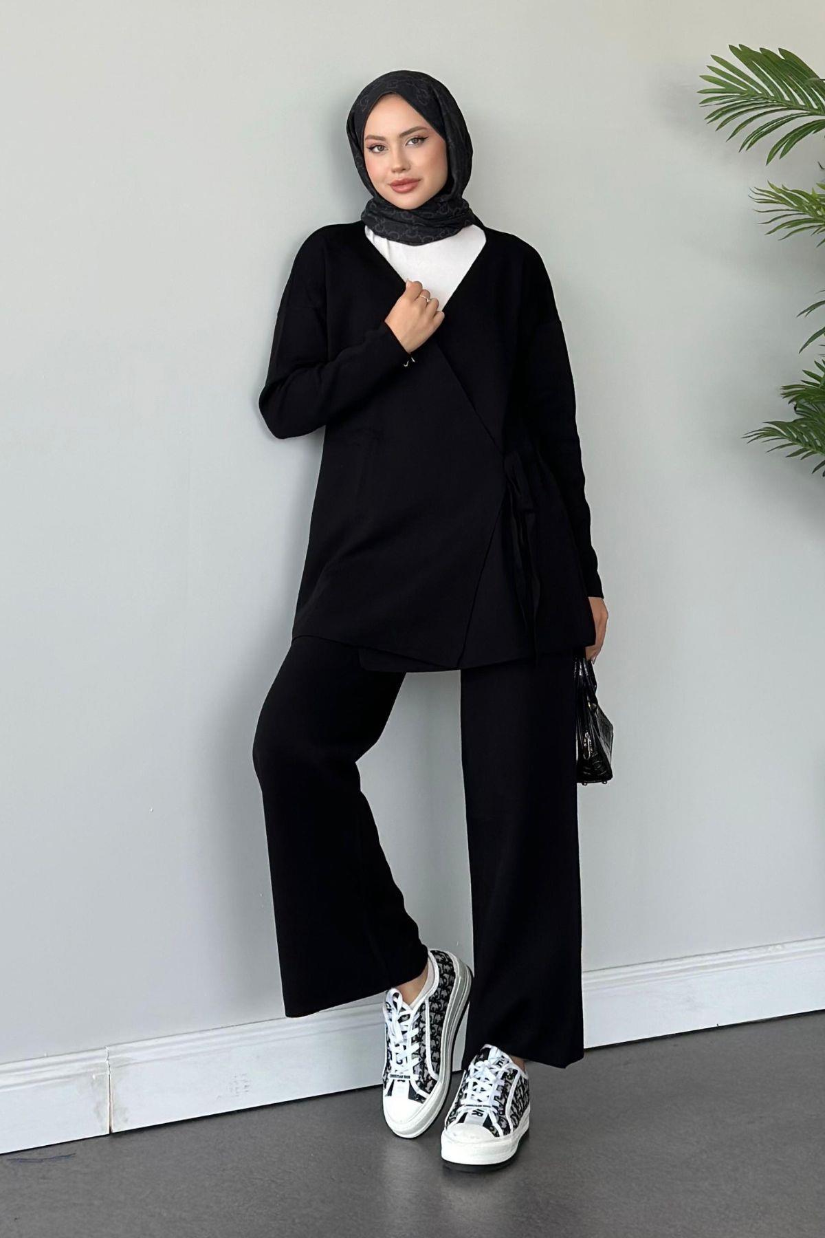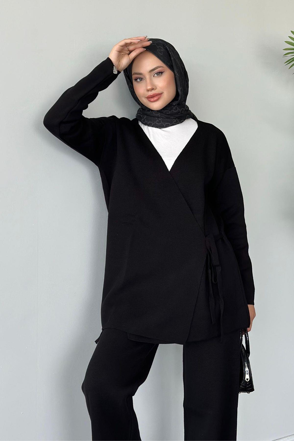 Maça İpli Triko Takım, önden bağlama detayı ve rahat kesimiyle hem günlük hem de özel davetlerde şık ve konforlu bir seçenek sunar. Yumuşak ve esnek triko kumaşı ile vücudu sarar, sıcak tutar ve her kullanımda şıklığınızı tamamlar.
